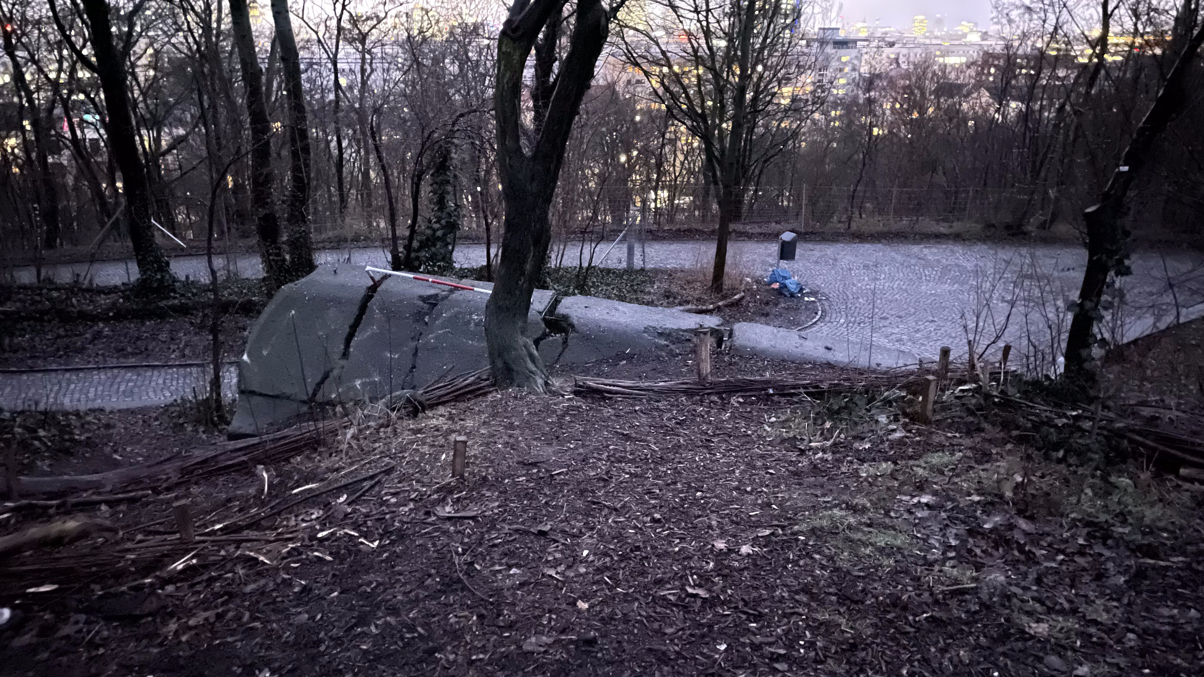 Großer Bunkerberg is the name of the Berlin ruble mountain in Volkspark Friedrichshain. It housed previously one of Berlin's air defense 'flak towers', the Flakturm II G. Only a small corner of the blown up tower is still visible on the site, at the top of a large hill.