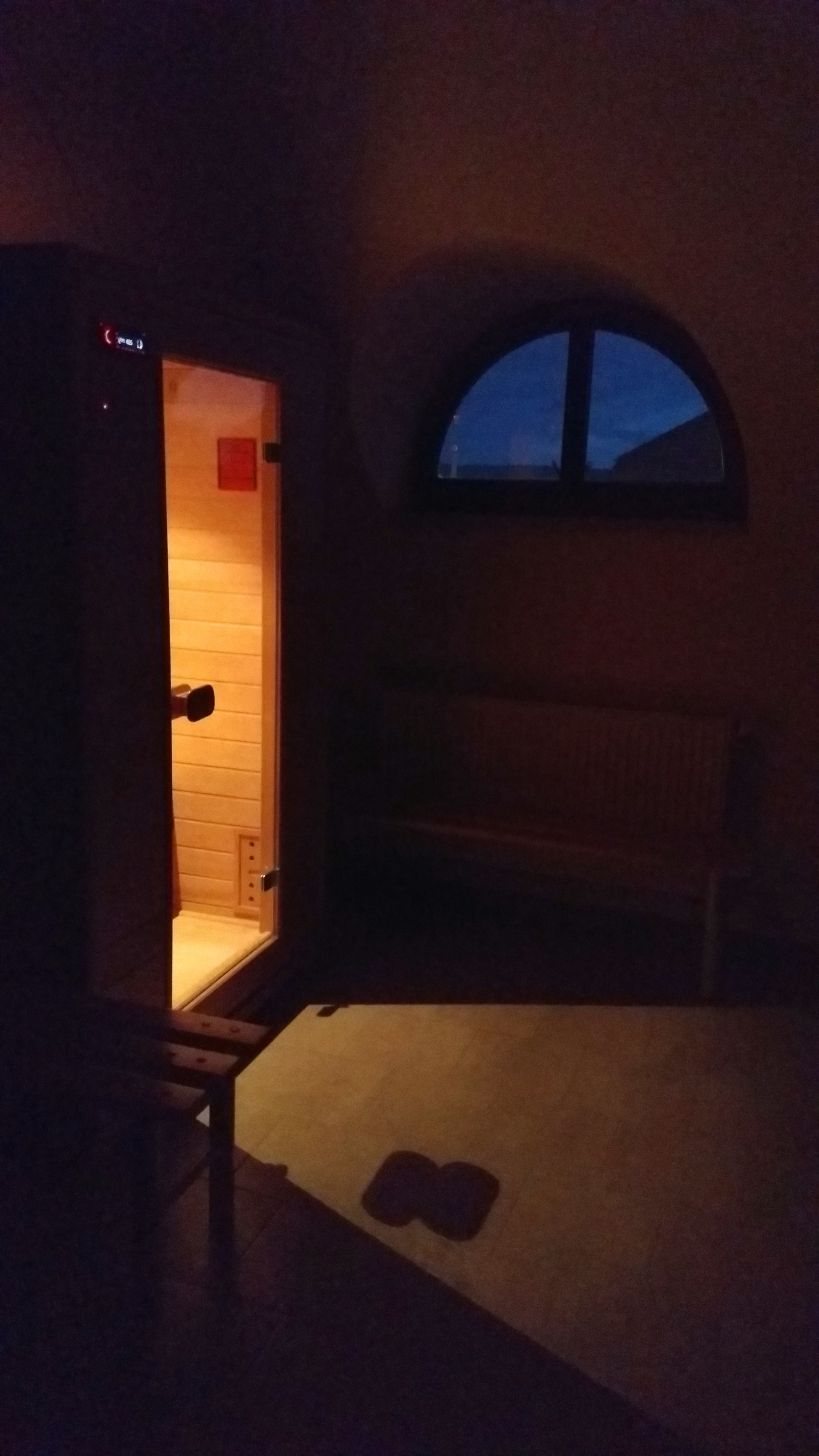 I'm between Czech Republic and Germany, on my way to a conference. Late night arrival... tired. But, the sauna at Hotel Grunt rescued me.