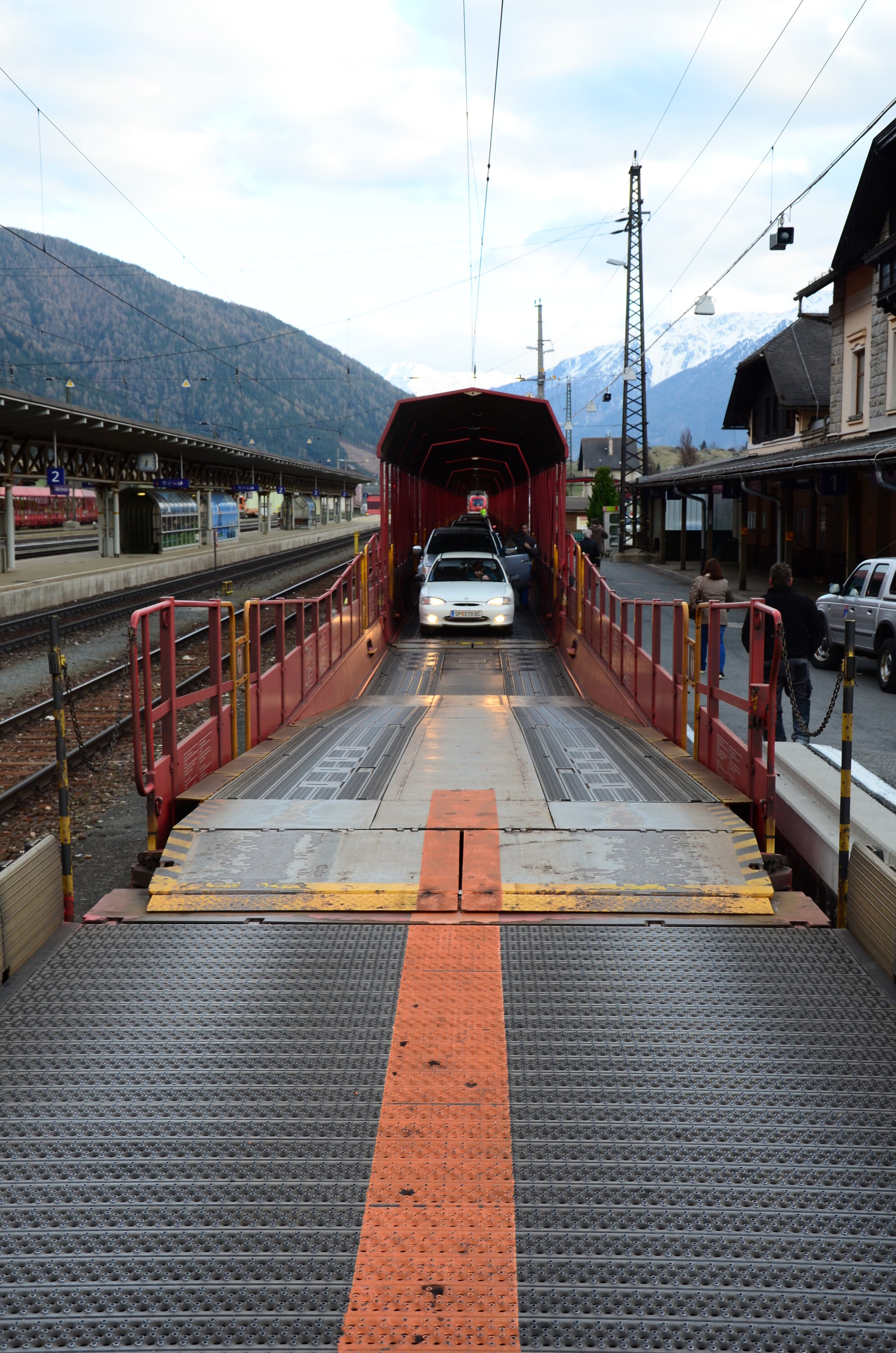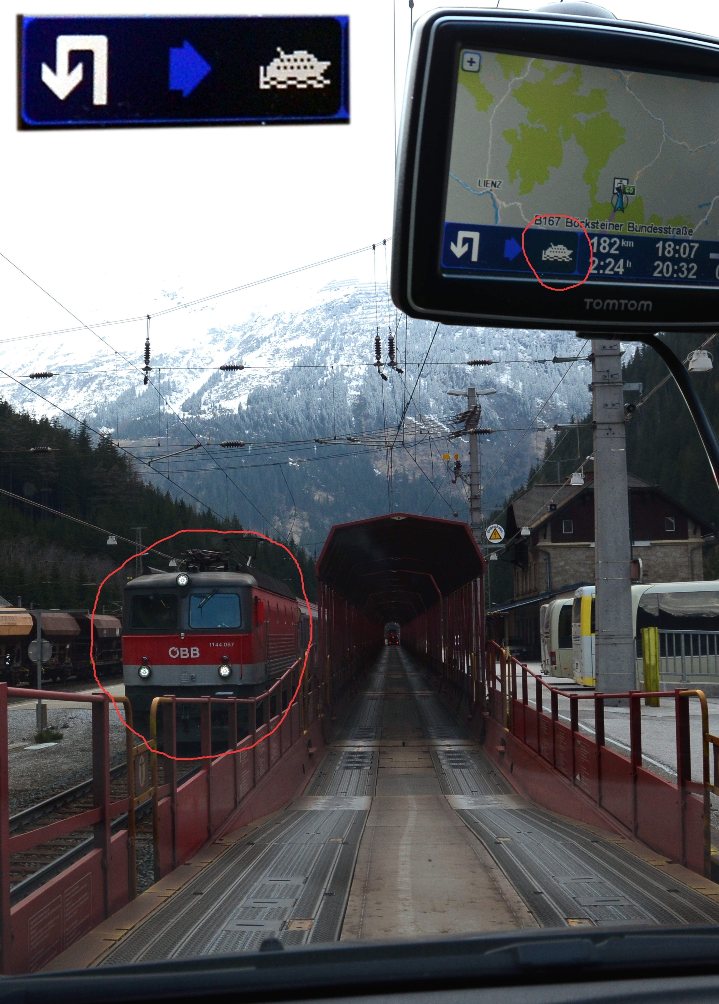 When I left Kaprun, I relied entirely on my GPS for taking me to Ljubljana. I drove for an hour, kept passing ski areas and climbing higher. I was in the mountains and in increasingly narrower valleys. Then my GPS says that I have to take a ferry! Obviously, there is no water in sight. I'm almost desperate, as going back would mean an hour's drive and even longer work night that evening. But I decide to ask the people on the nearby railway station, and it turns out that I'm at the beginning of the Tauern Railway Tunnel, an eight-kilometer section that can only be crossed by train. No problem. Drive the car to the train, and cross the mountain! I did not plan to use this route, but it turned out to be a good one. Recommended. The system works well and probably saves quite a bit of travel time.