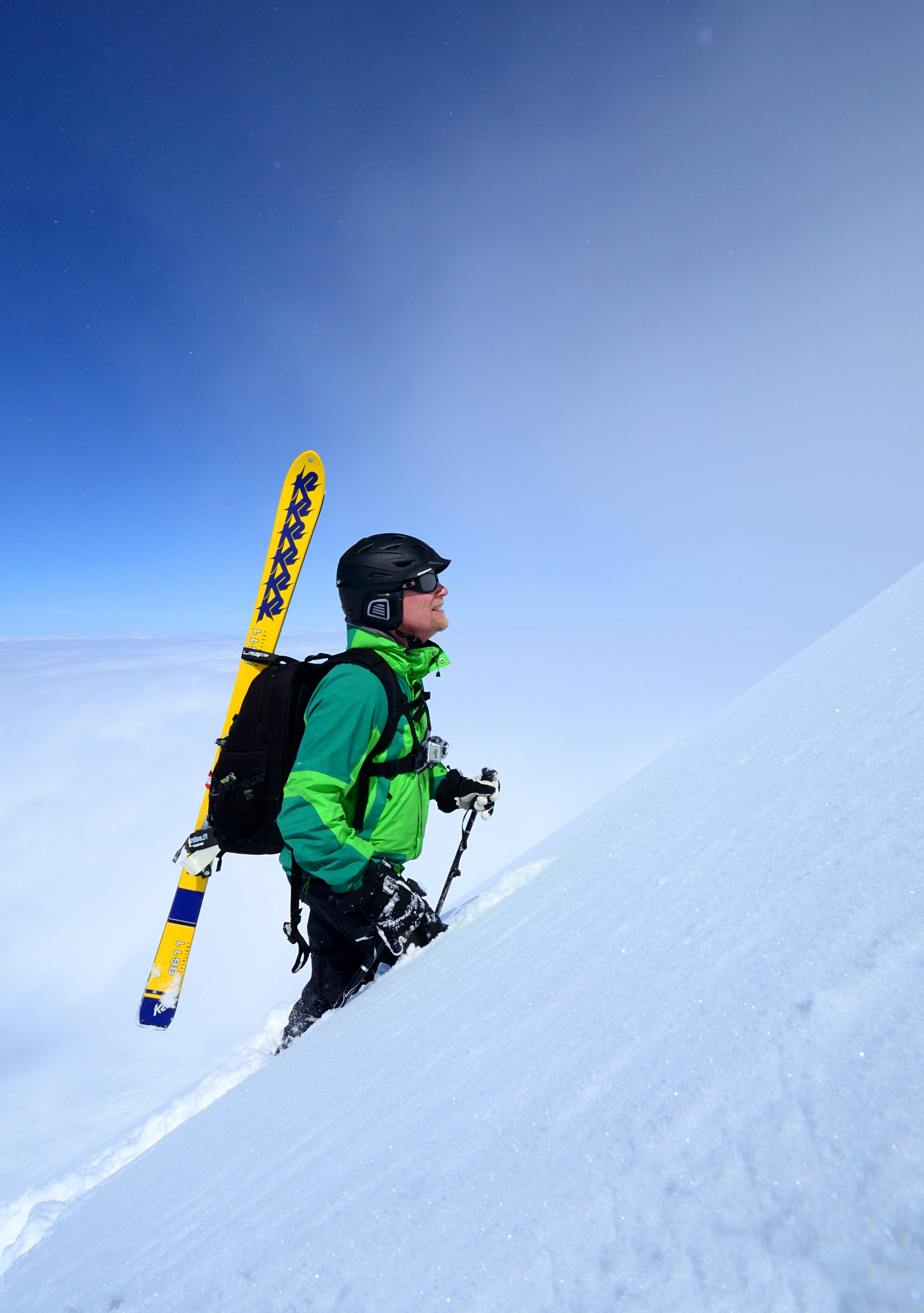 The going was otherwise easy, but my Dynafit bindings were releasing all the time, possibly due to me trying to use them on this quite steep face that required tricky switchbacks, and my inexperience in using this type of a binding before.