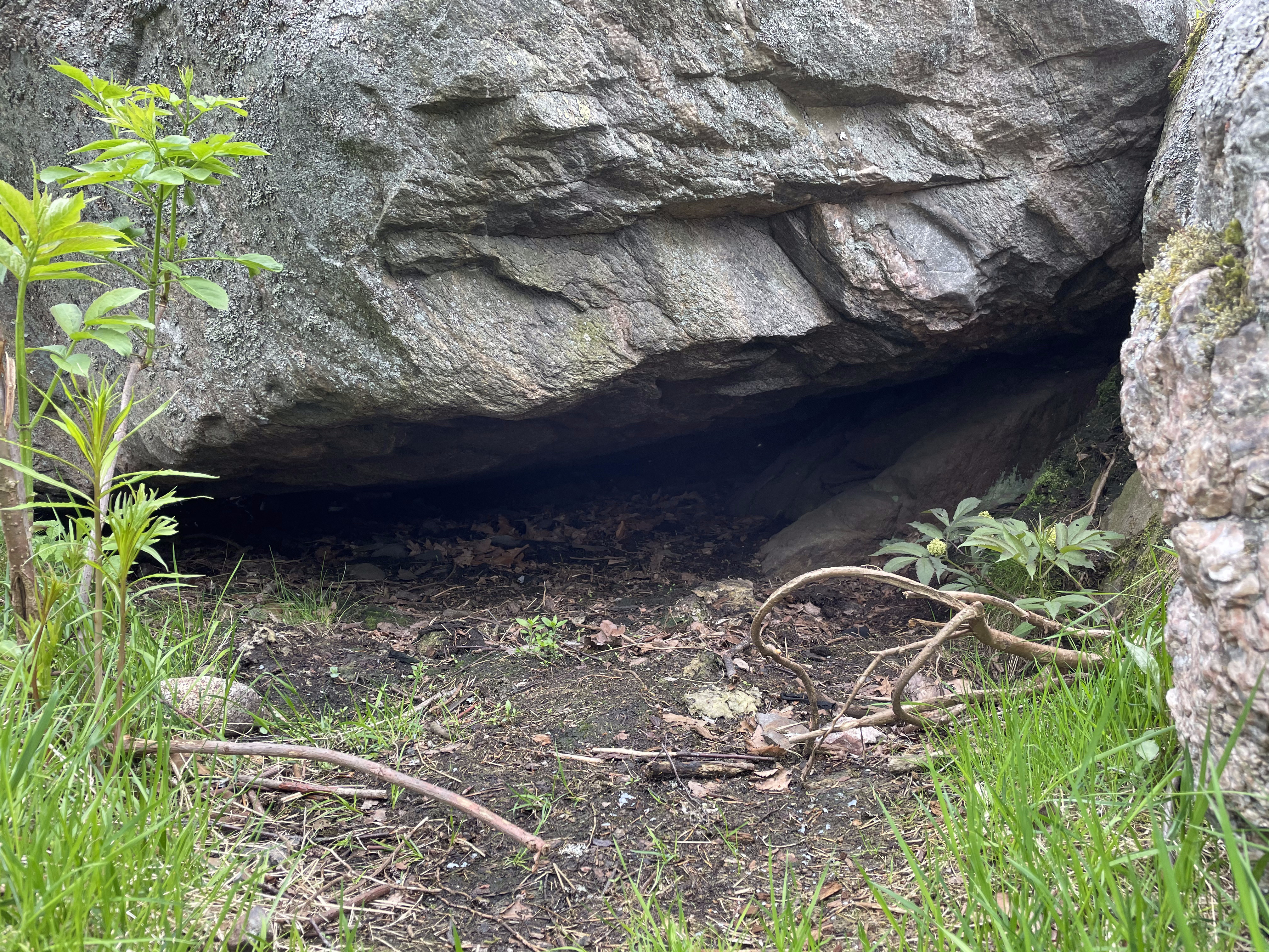 While visiting (again) the secret Margarine factory tunnel, I came across a small boulder cavelet in Herttoniemi.