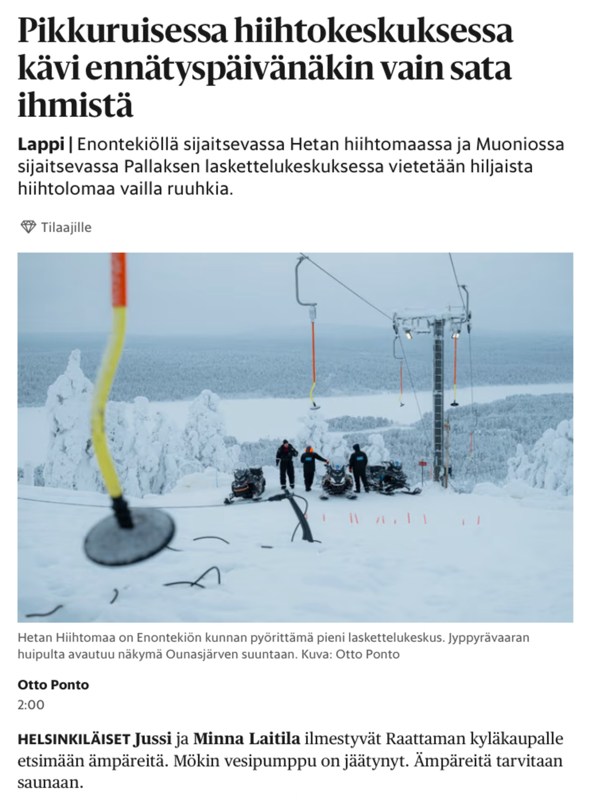 This article has also been published here. Read the full Planetskier series at planetskier.net, or all blog articles from Blogspot. Or read all swimming stories at planetswimmer.com and sauna articles at saunablogger.cool. Text (c) 2026 by Jari Arkko, photo is a screenshot of an article by Helsingin Sanomat, all rights by them.