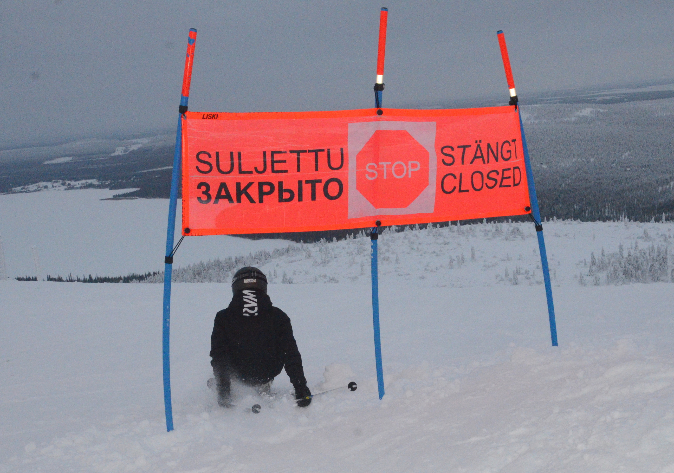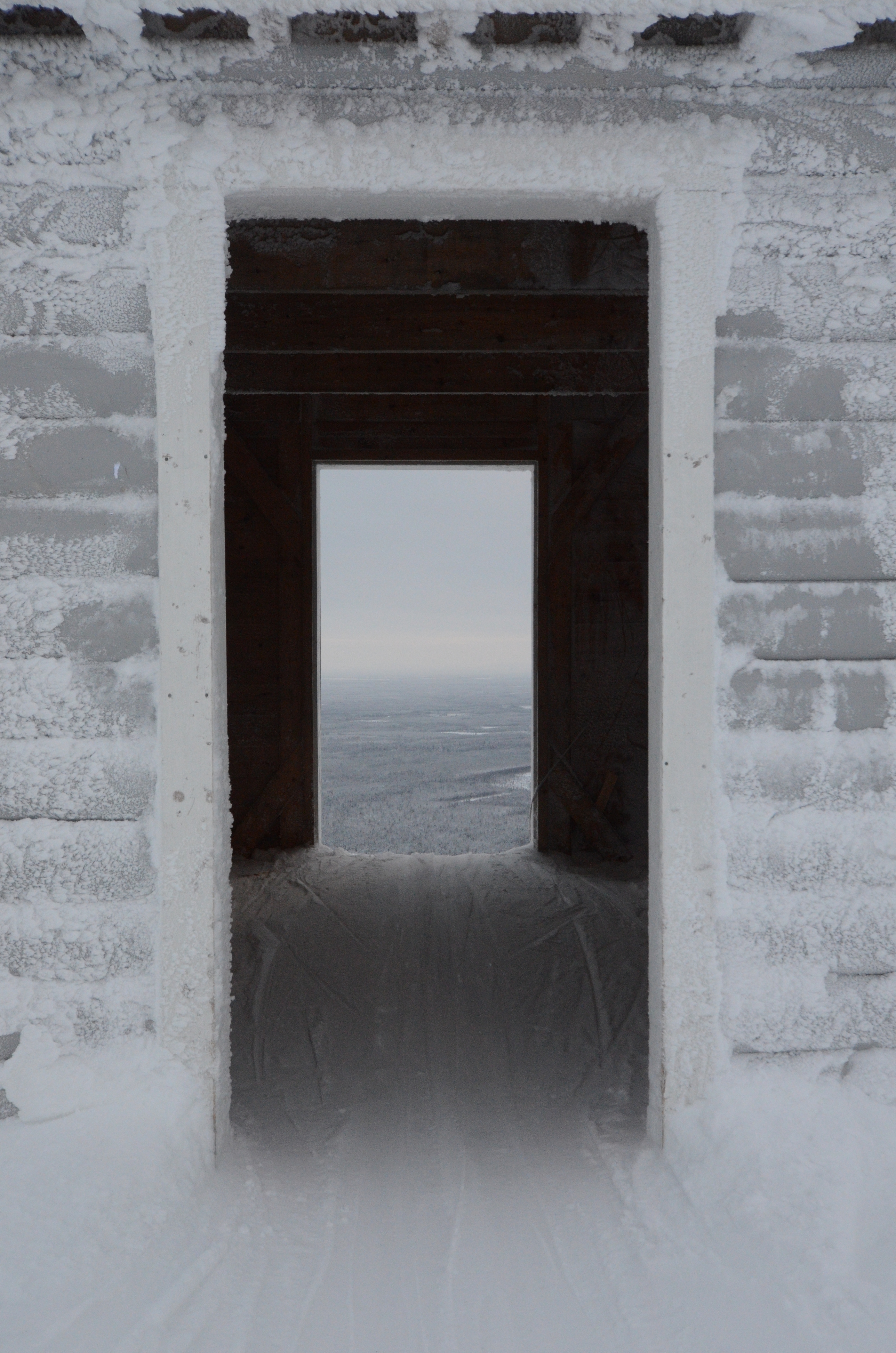 The three doors are at the race start hut, at the 540 meter top of Pyhätunturi. The white door leads to a strangely mixed world, the yin & yang domain. A icy run straight down the mountain with high-speed race tracks showing the way. But it is also lined with safety nets, it is access controlled, groomed and cared to perfection that does not exist on the other side of the safety net. The black Piste Palander. It is also the way home, to the bed in Hotel Pyhätunturi.