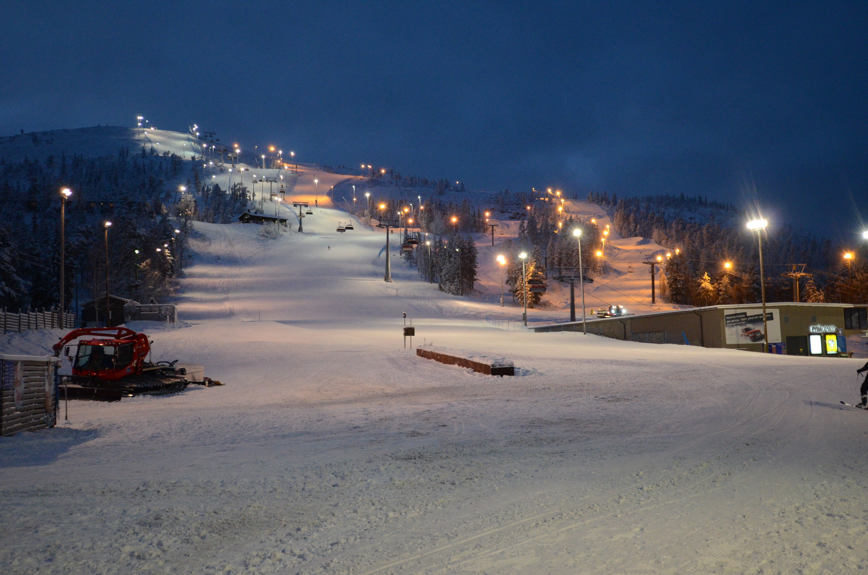 The possibilities are infinite; it was too early in the winter to enjoy all those possibilities, but there are big mountain class off-piste runs and ice climbing, for instance. Recommended! Note that Pyhä is unlike most other places in Finland, in that there are big mountain dangers as well, including falls and avalanches. Be careful out there.