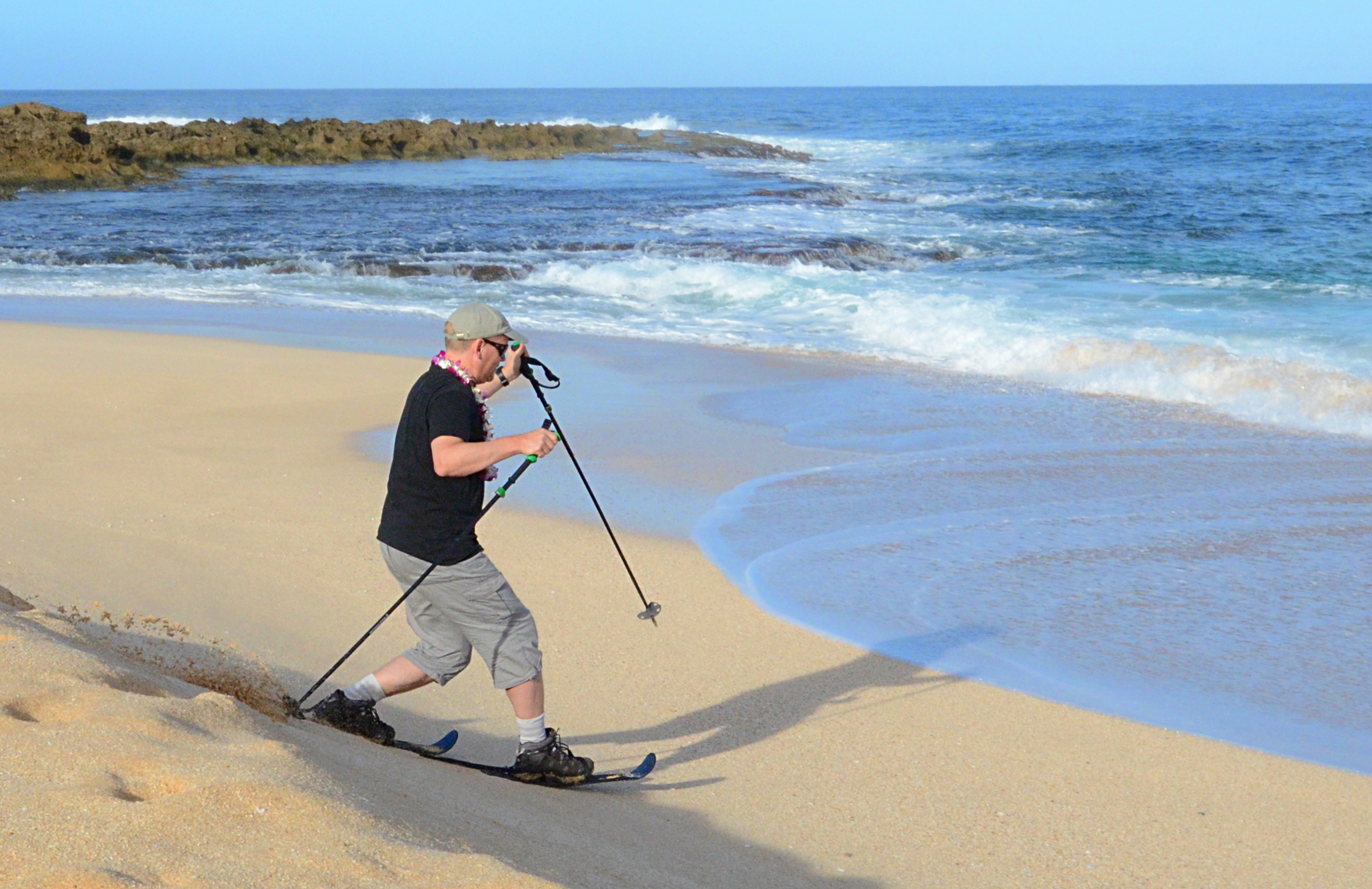 Seriously though, once I got off the black shoes and pants, what could I do? Worth taking my skis? Definitely, but since I had no time to exit the island of Oahu, my choice of slopes of somewhat limited. A bit of sand on the beach.