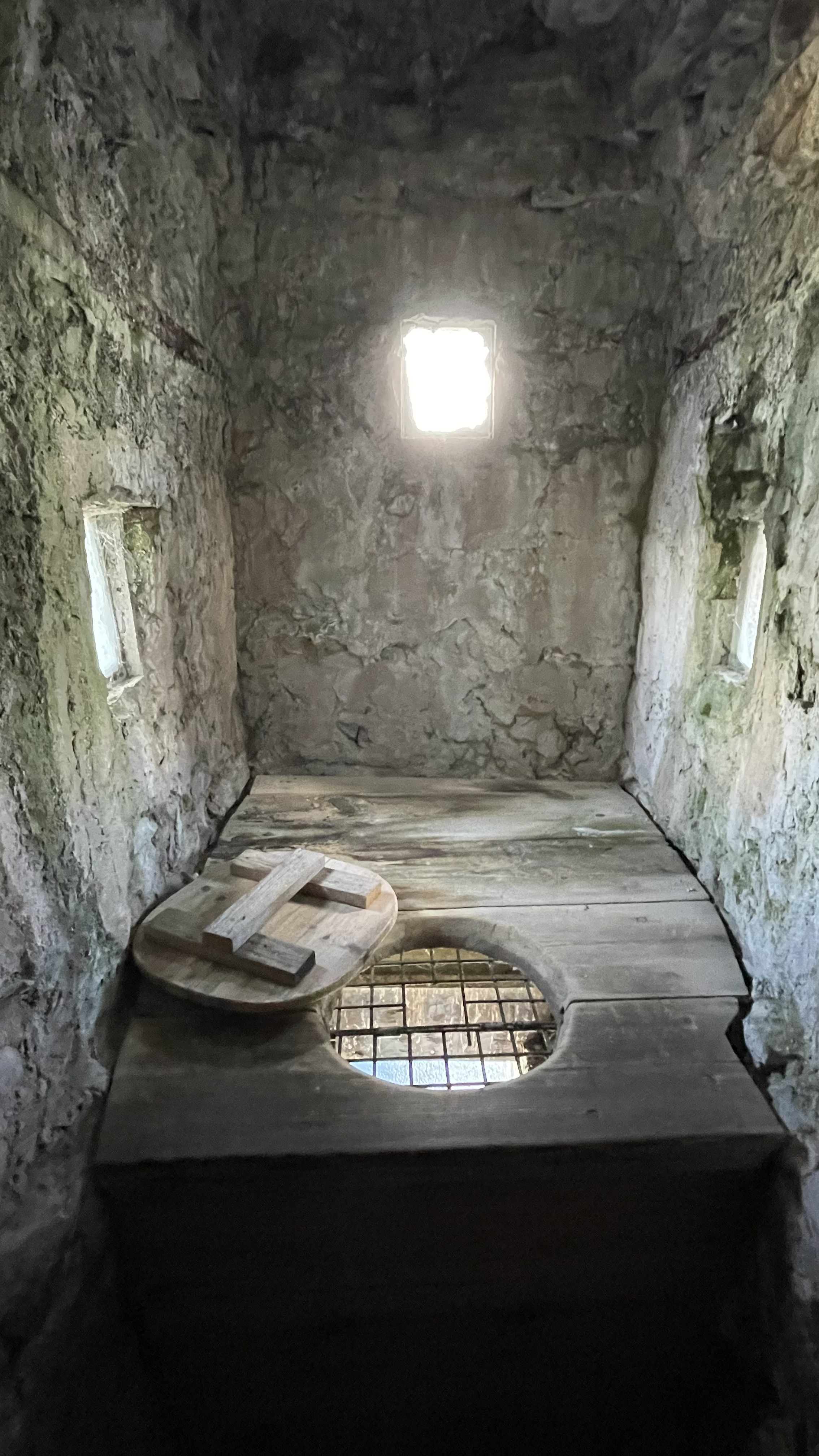 Note also one of the early designs for a water closet, high up on the tower side above the lake: