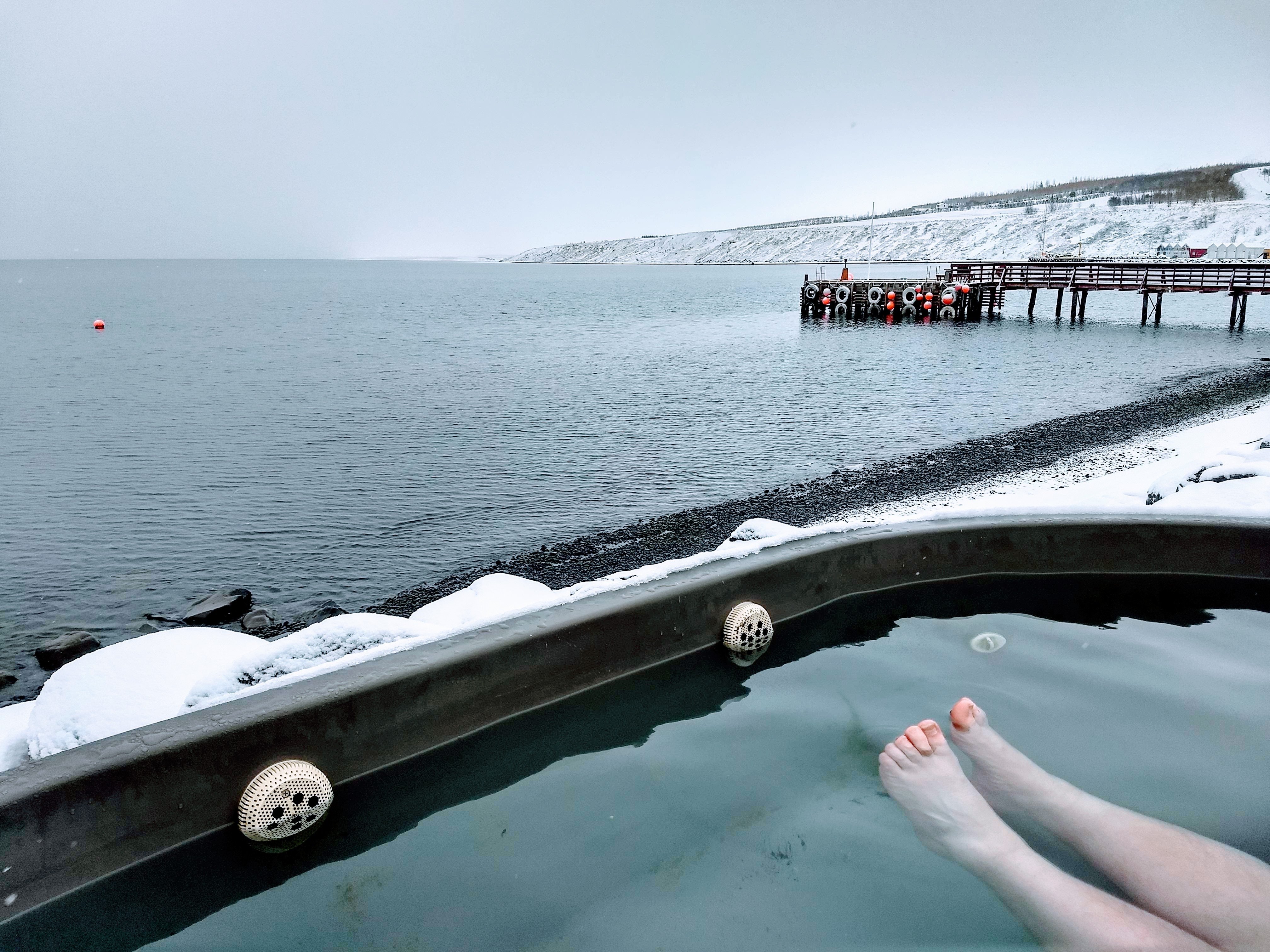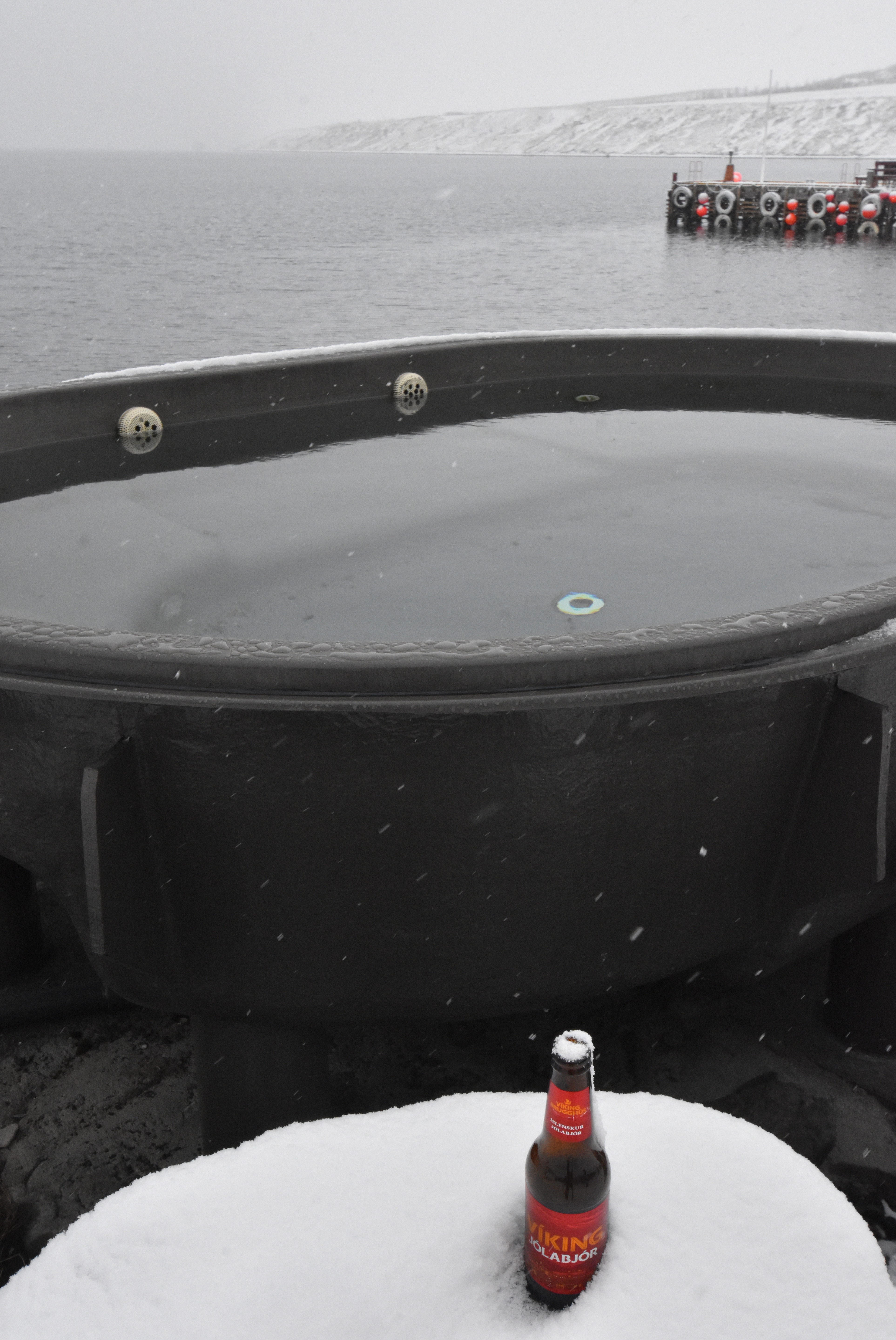 Abandoned fish factory in the cold winter of Icelandic north shores. But with a hot thermal bath! What's better than lying in the pool and trying to spot whales on the sea? For 4€...