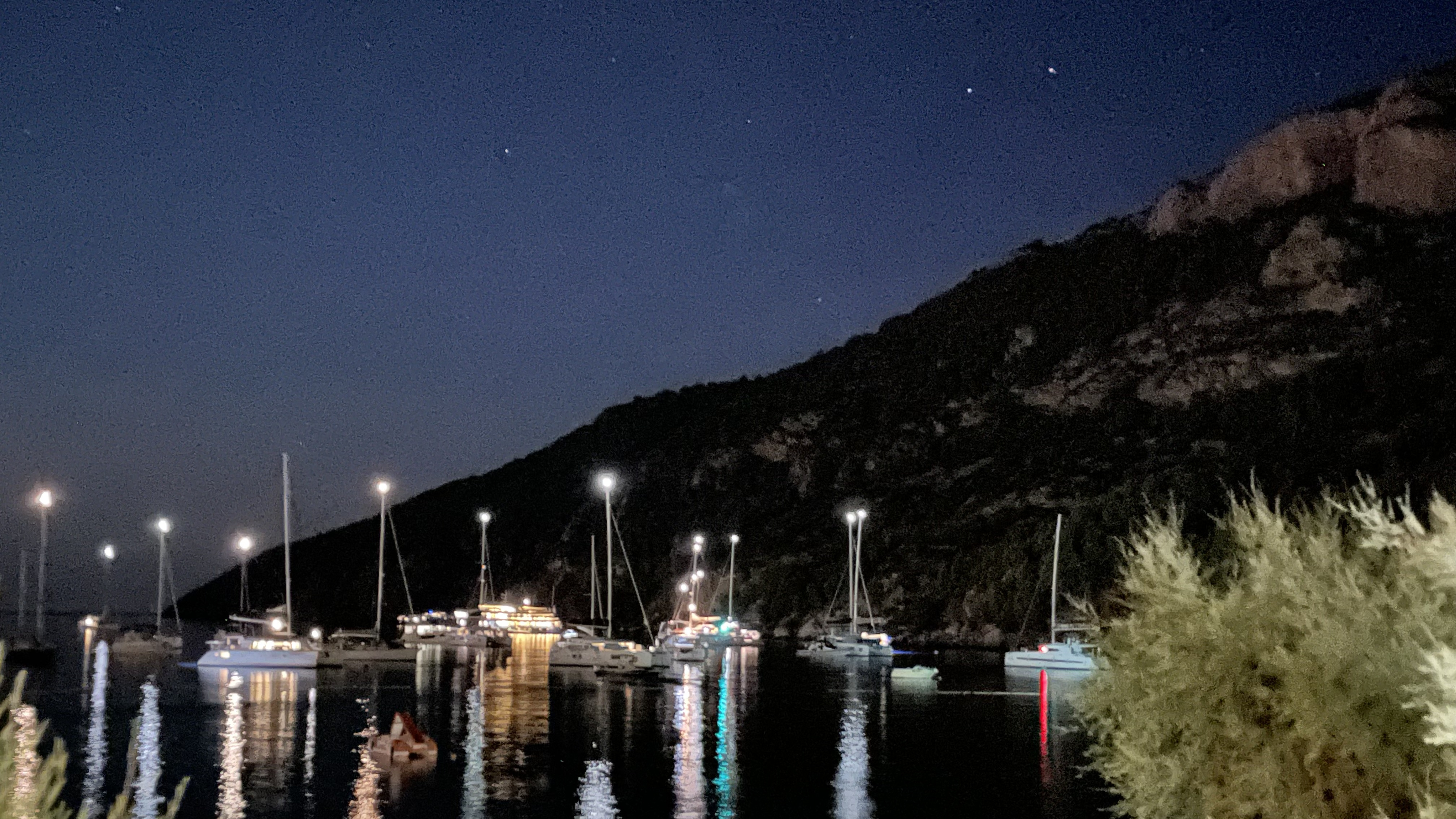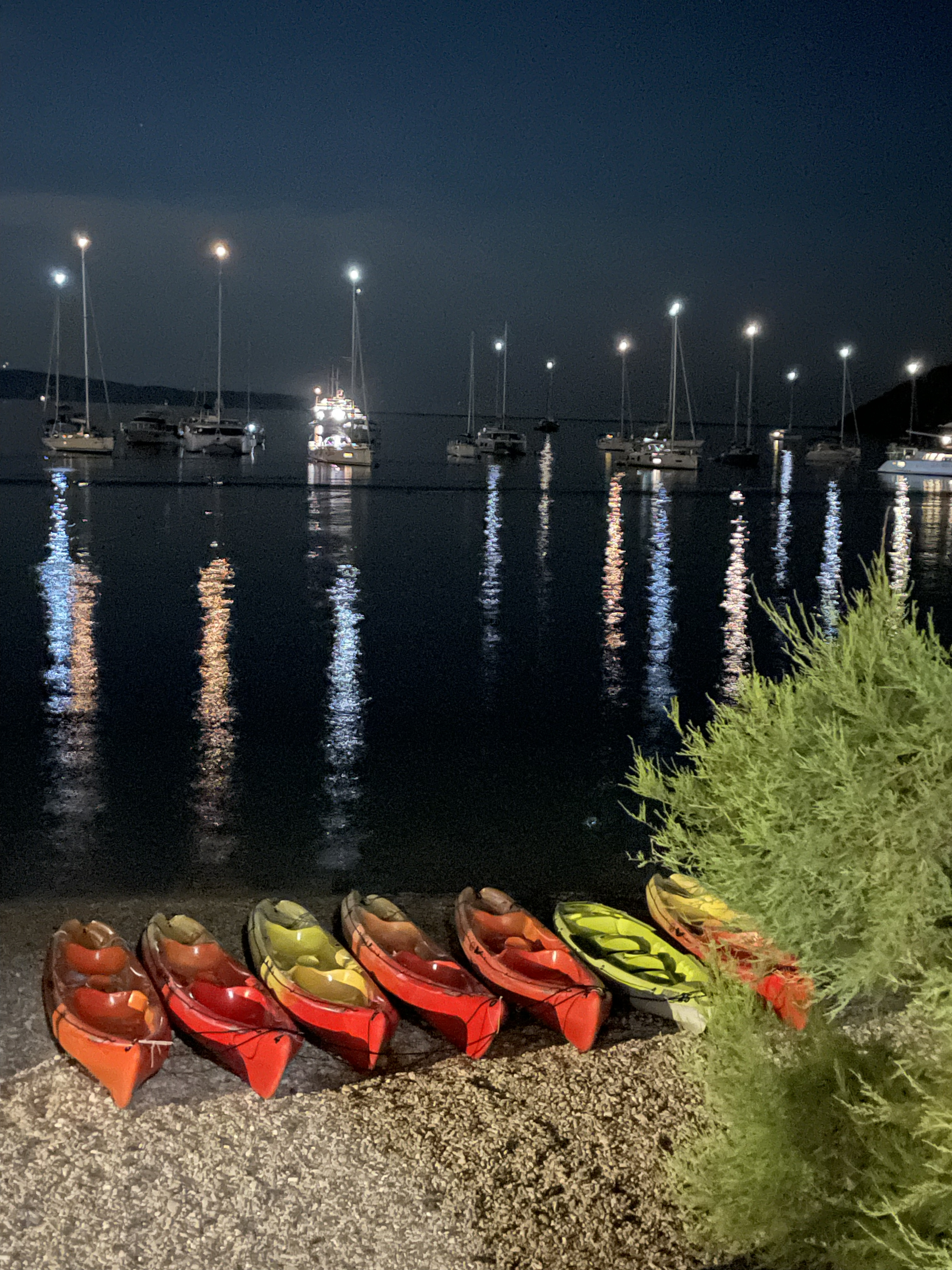 This is the harbor in front of the hotel beach, photographed in the night: