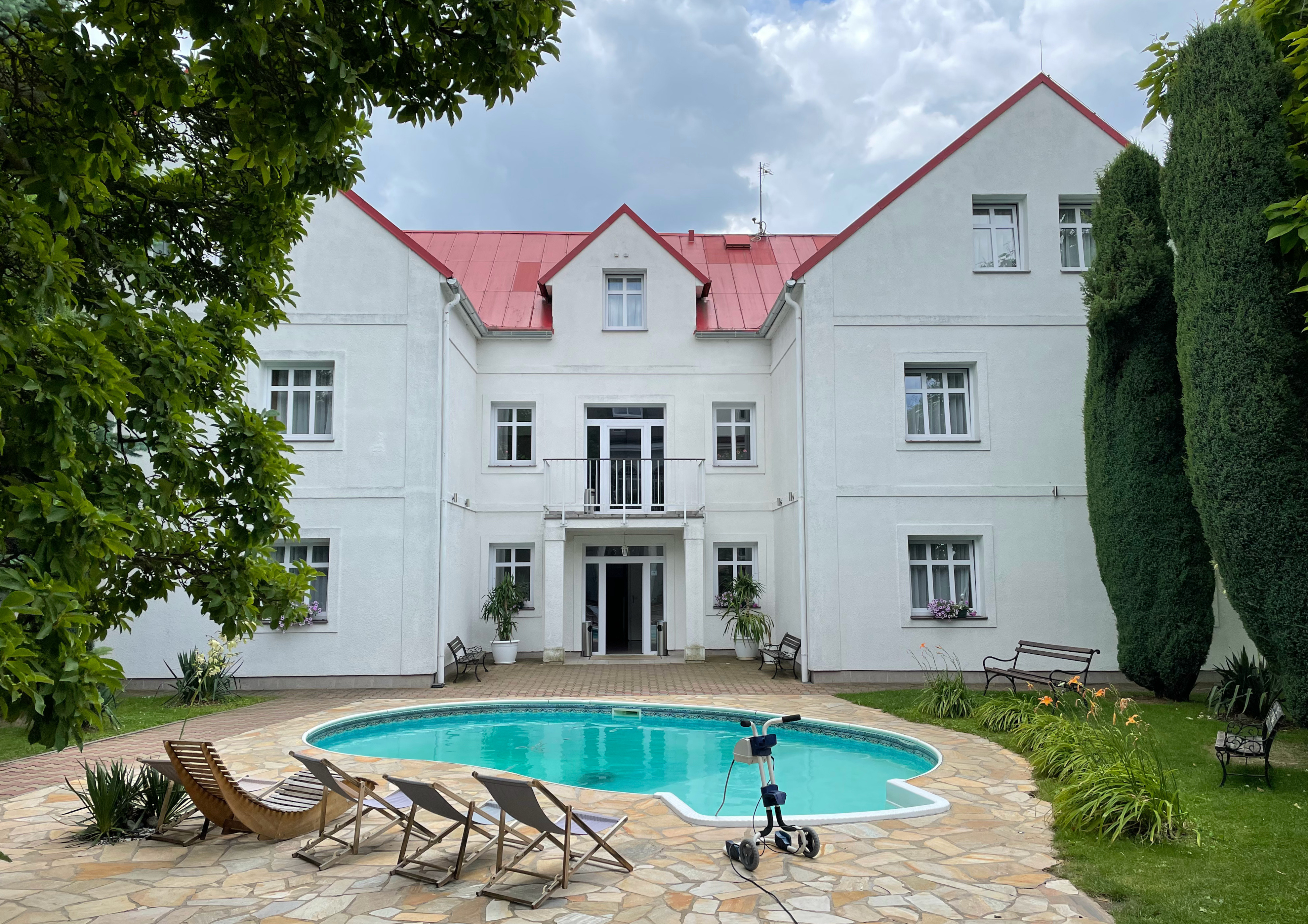 Hotel Maria-Luisa is in the suburbs of Prague, near the military / museum airport (see this article). I almost always choose hotels based on their spas, pools, and saunas. Unfortunately, this time their wellness area turned out to be closed for renovation. Oh well, we were probably too busy anyway to get to the saunas during their opening hours. But the pool was open, and looked nice!