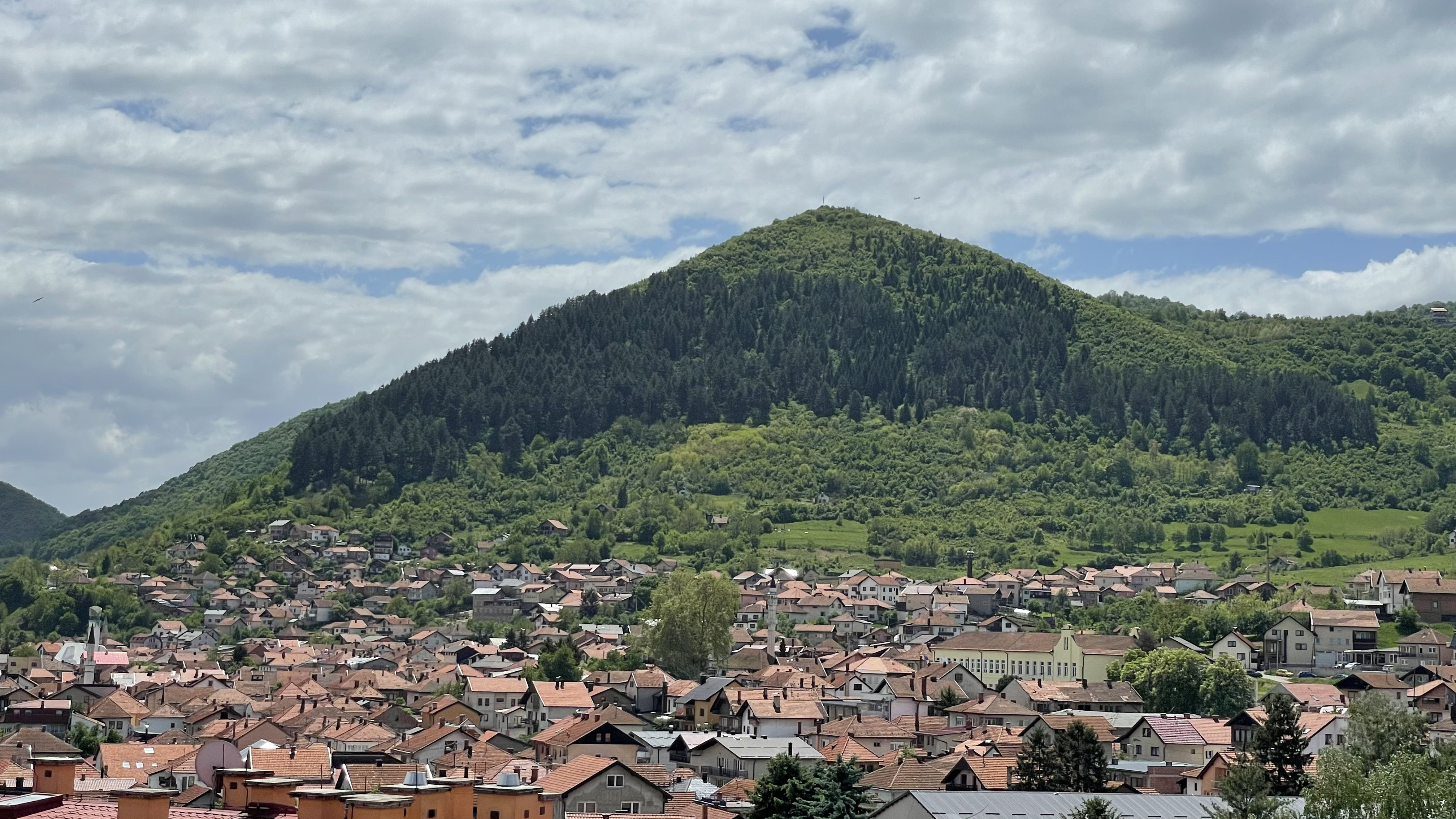 Here's a view from the hotel's top floor towards the Bosnian Pyramid of the Sun. Is it a pyramid, thoughts? :-)