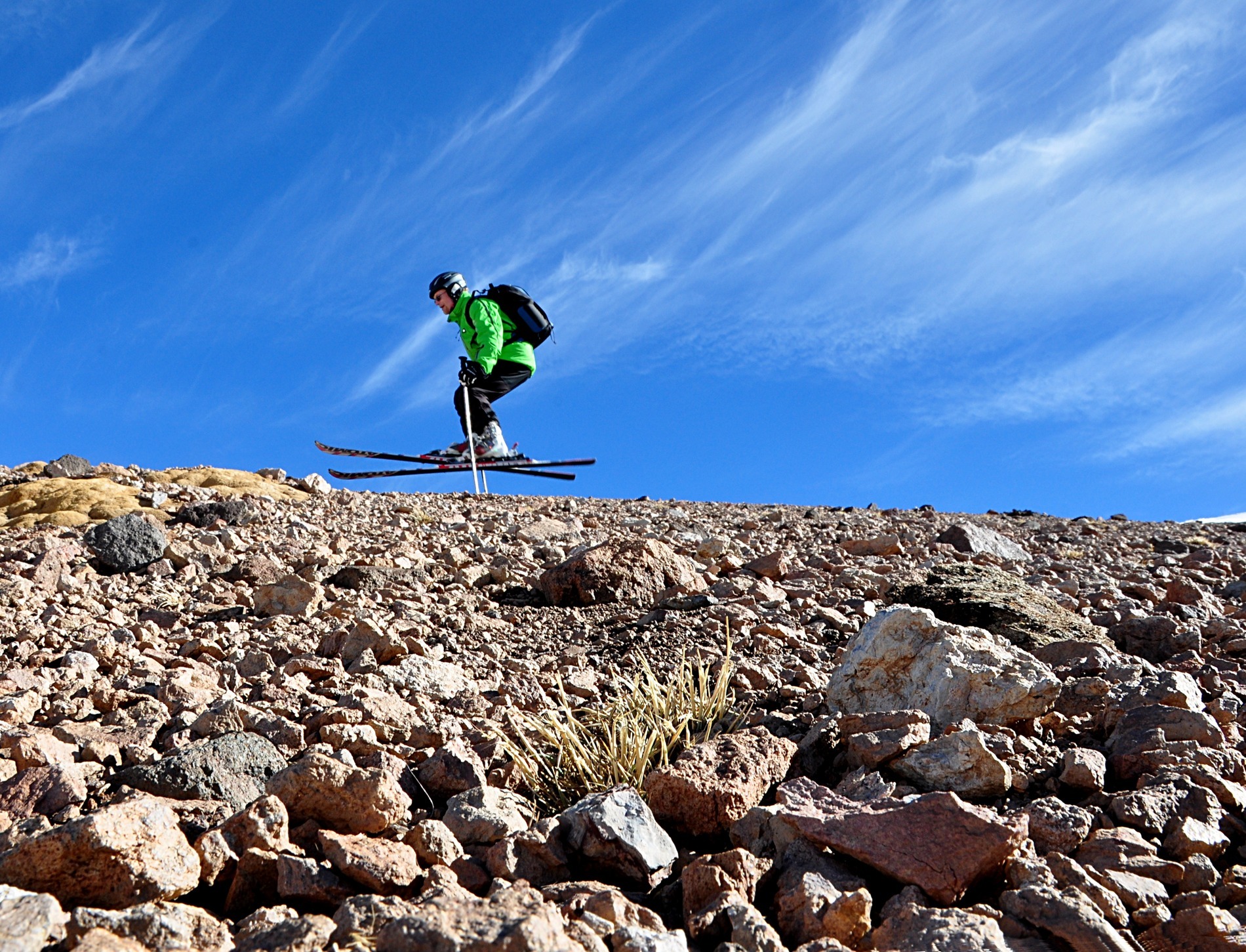 Hitting a rocky patch, CLThe mission is to ski in as many places in the world as you can. All countries where there's natural or man-made snow. In every major ski destination in the world. In at least some of the smaller places. On mountains, on hills, indoor, in winter and summer, on piste and off piste, on powder, slush, crust, and, occasionally - frequently, as my ski repair shop would say - on rocks. Going up by ski lift, on foot, on skins, crampons, cats, cars, or helicopters.