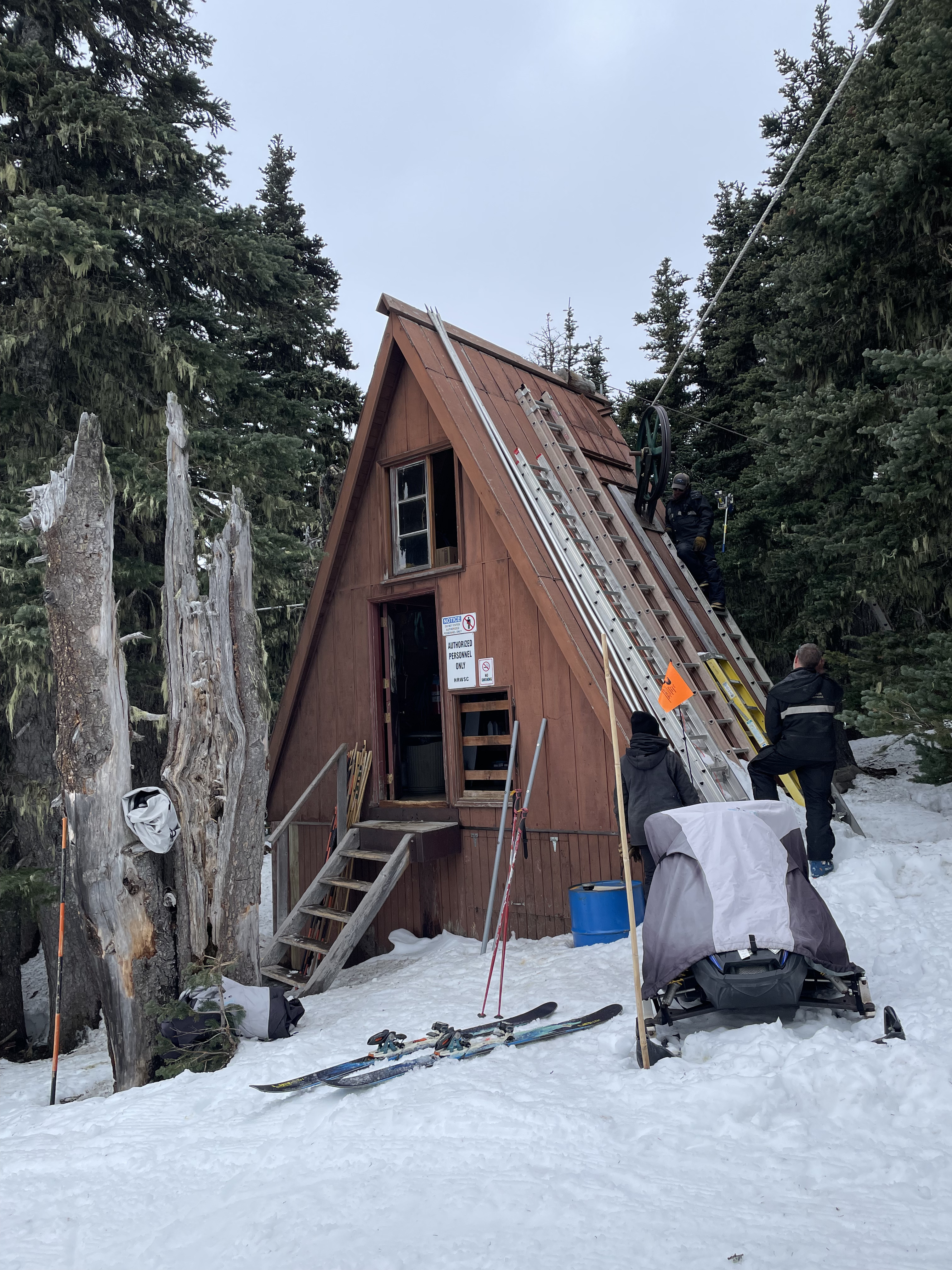 Facilities - the patrol hut, the ski lift engine hut, and the ticket sales container: