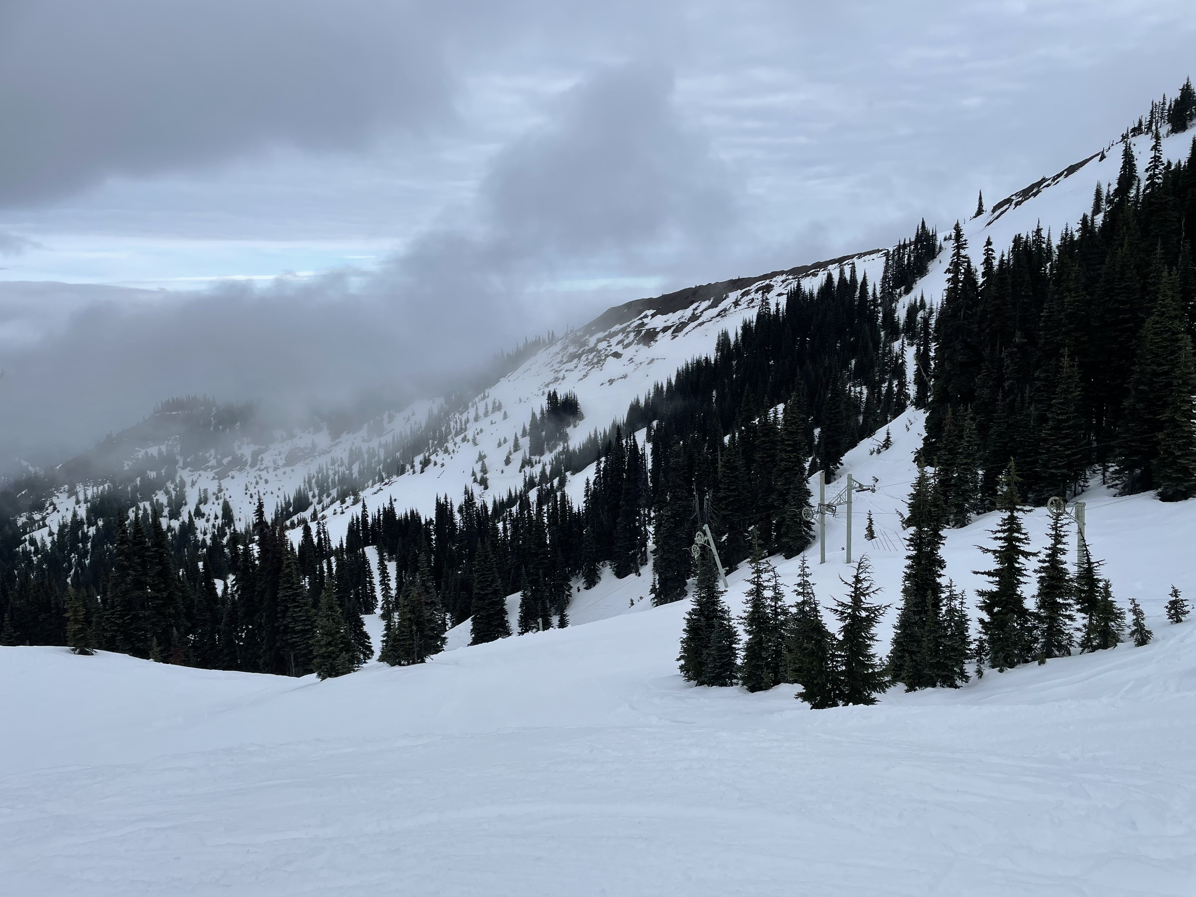 It isn't easy to get to ski in the olympics. There's only one, of course. It isn't clear if you'll succeed even if you get there, because the conditions are difficult and your vision about how your run should go may be foggy. And the road there is difficult. So difficult, that unlike all the other Washington State ski resorts, you need to have chains. And the rental agencies did not rent them ... Oreilly Auto Parts to the rescue (with free returns :-) ). I am or course talking about the Hurricane Ridge ski resort in the Olympic National Park. A historic ski resort opened in 1958, operated by a non-profit association for enabling skiing in the mountains of the park.