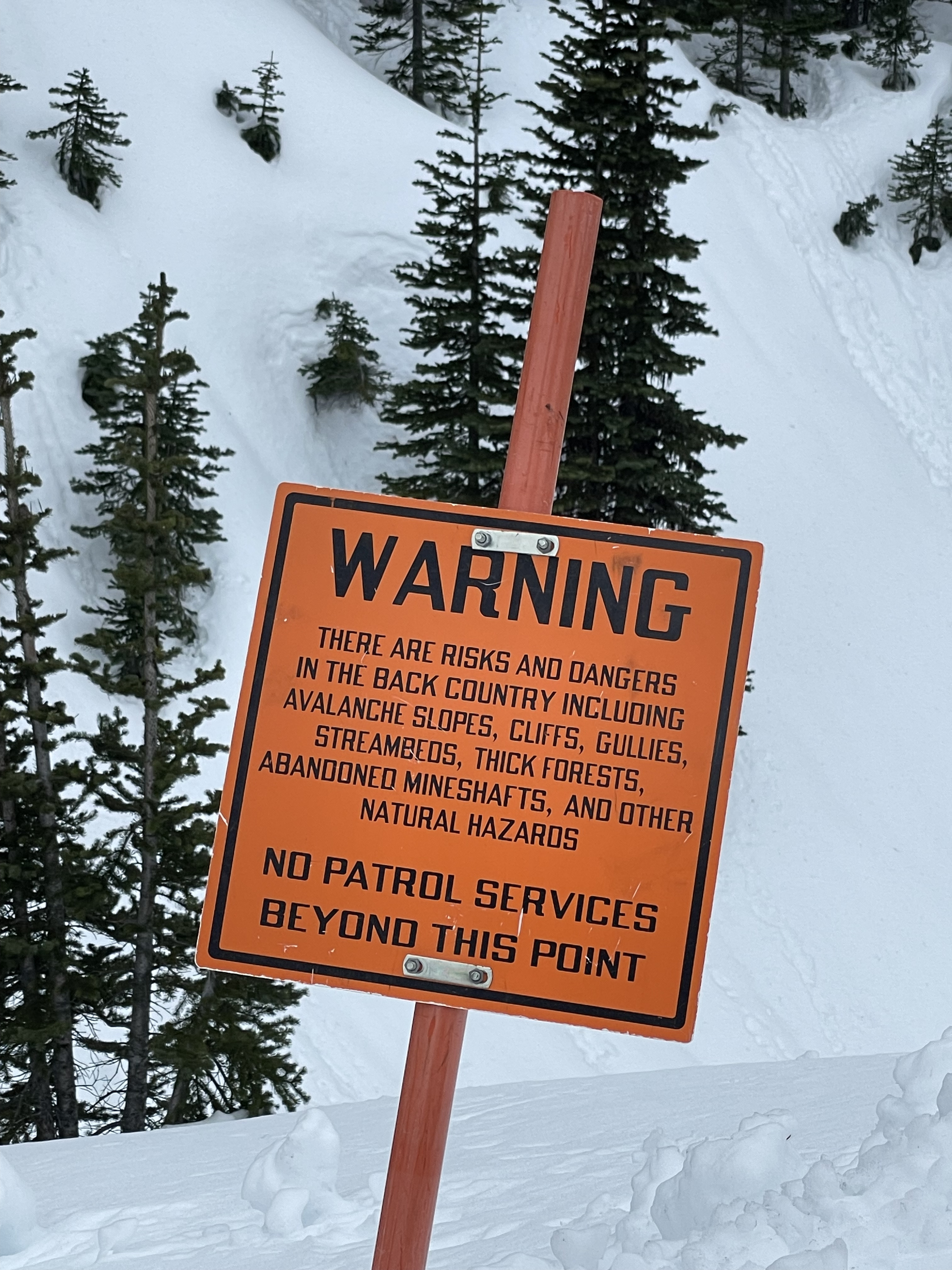 The Poma lift is pretty short, however, so the runs aren't that long. You could continue the off-piste runs further down, the terrain looks inviting ... however, you'd have to hike back up. And there's a warning about "abandoned mines and other natural dangers":