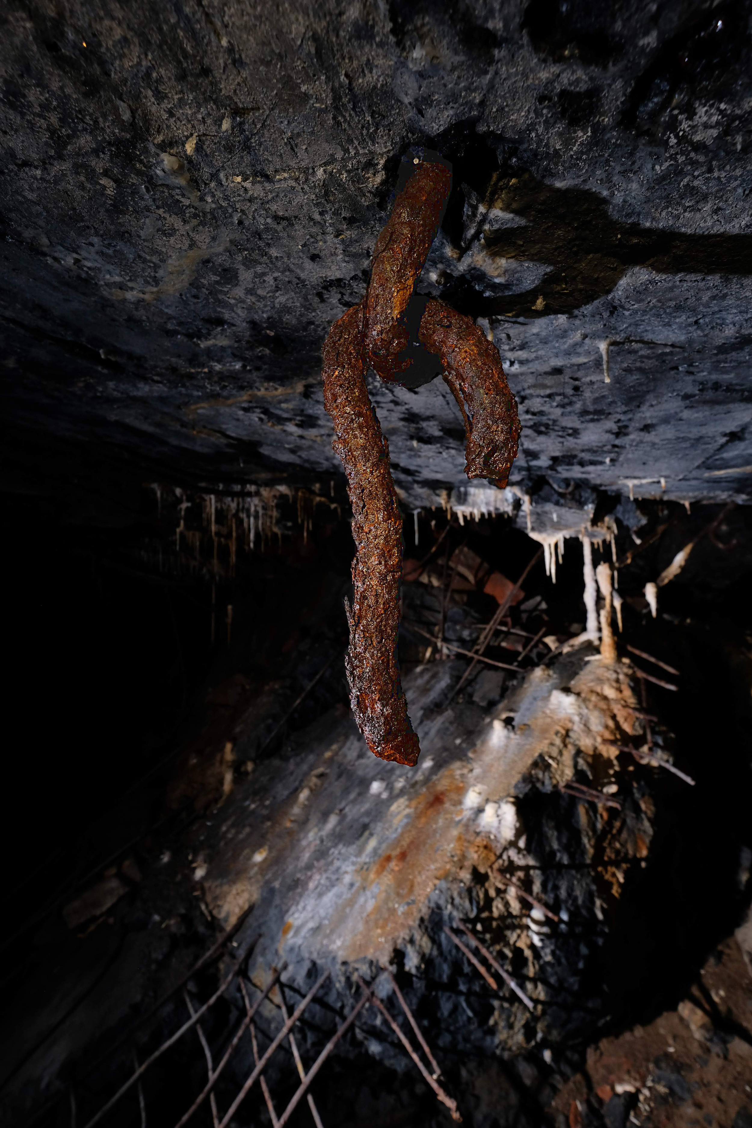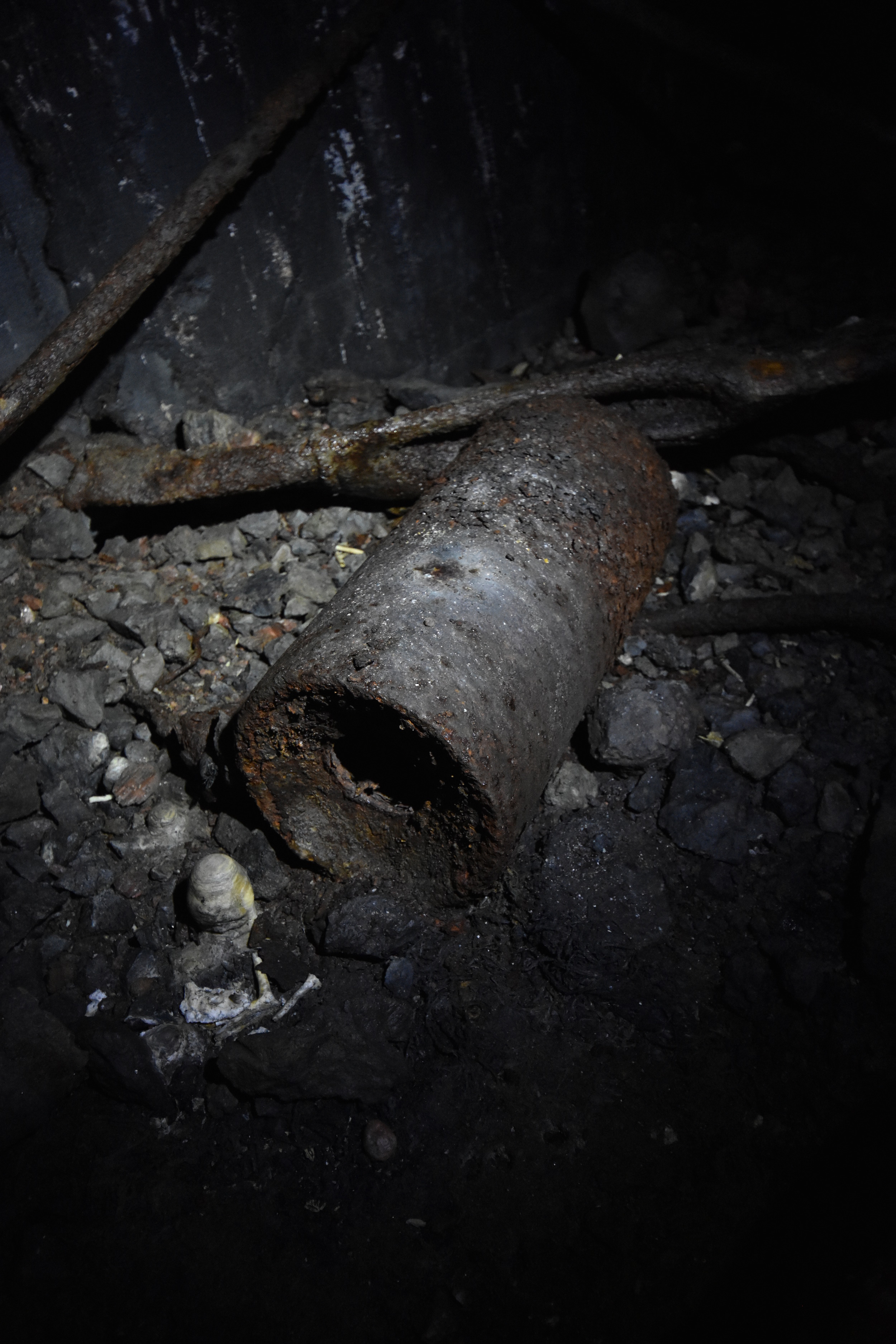 And then some worrisome details. What is this? An unexploded, corroded shell? Or a part of the ventilation piping? We were careful to not touch it...