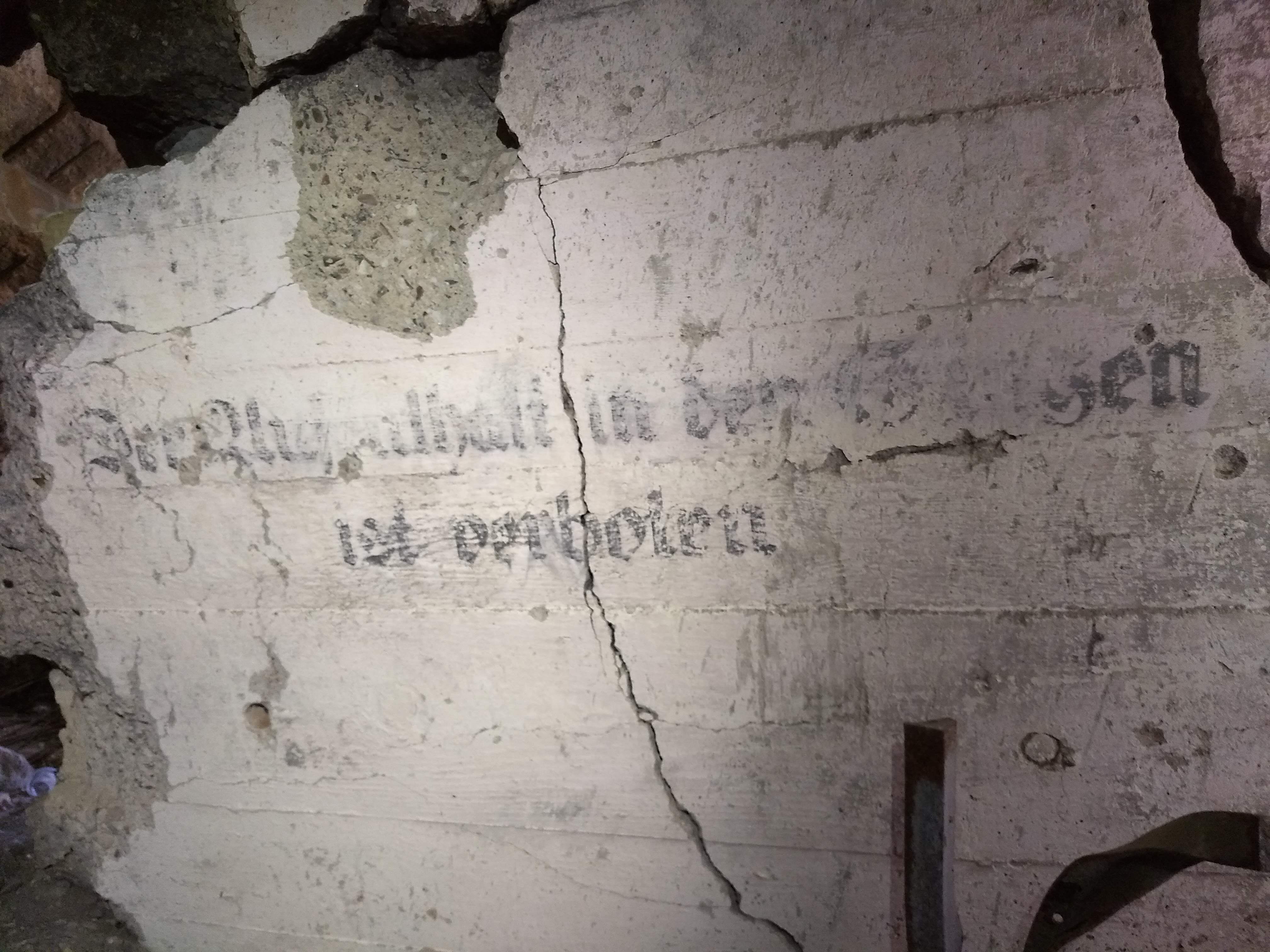 After the war, the Soviet troops blew up most of the bunkers and structures in the camp, but the underground command bunker and Döniz's house still remain. The blown up parts of the camp still lie in massive piles of concrete blocks. The highest pieces are used by climbers for practice.