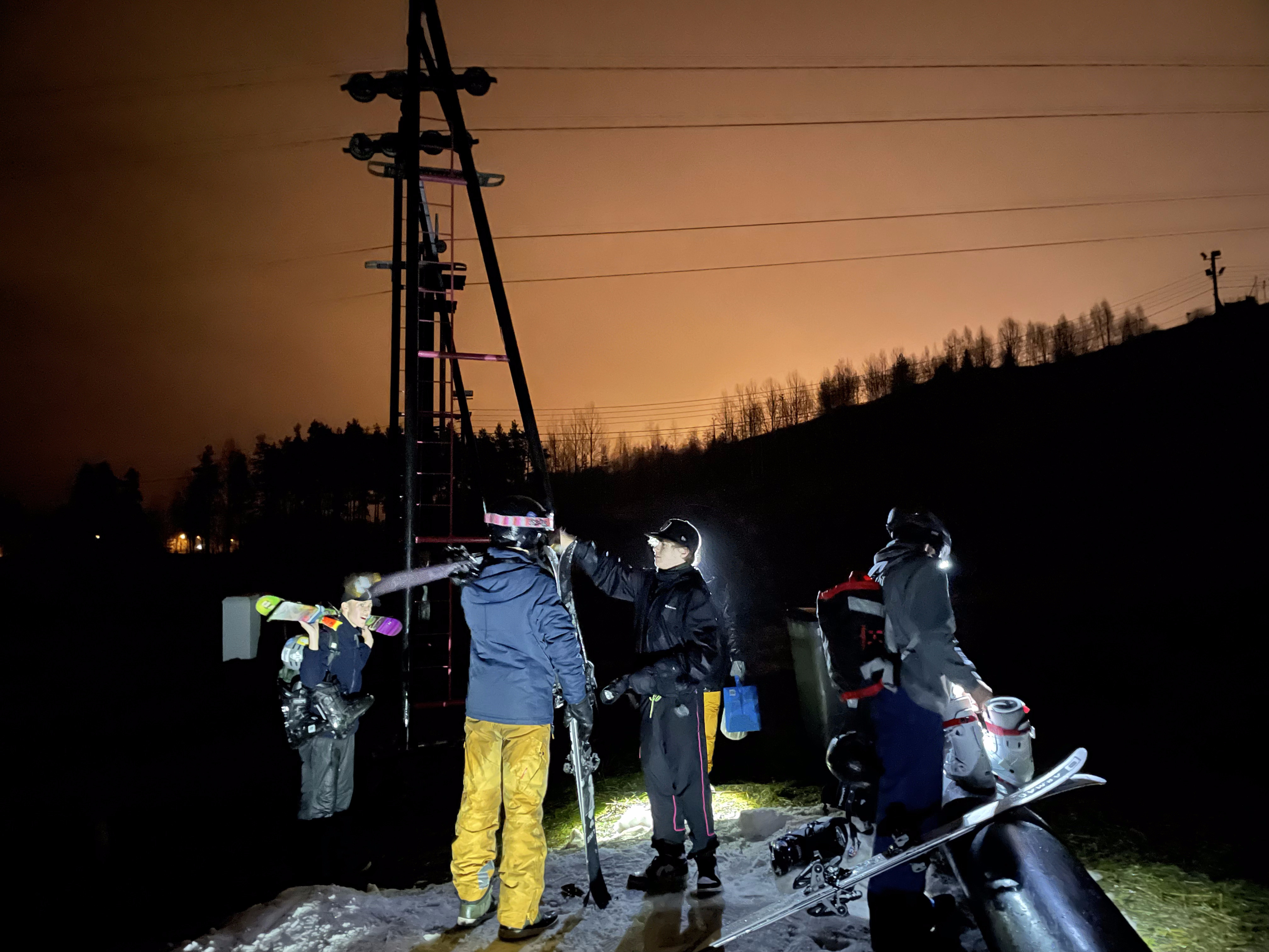 It is pitch dark. Raining heavily. The whole place is closed. But I'm on a mission, so I grab my skis and walk to the bottom of the hill in my boots, as there's a rumour that there's some snow in the hill. And when I get to the bottom, what I find is a group of teenagers with just a couple of flashlights -- skiing, jumping the jumps, riding the pipes and rails. Wonderful!