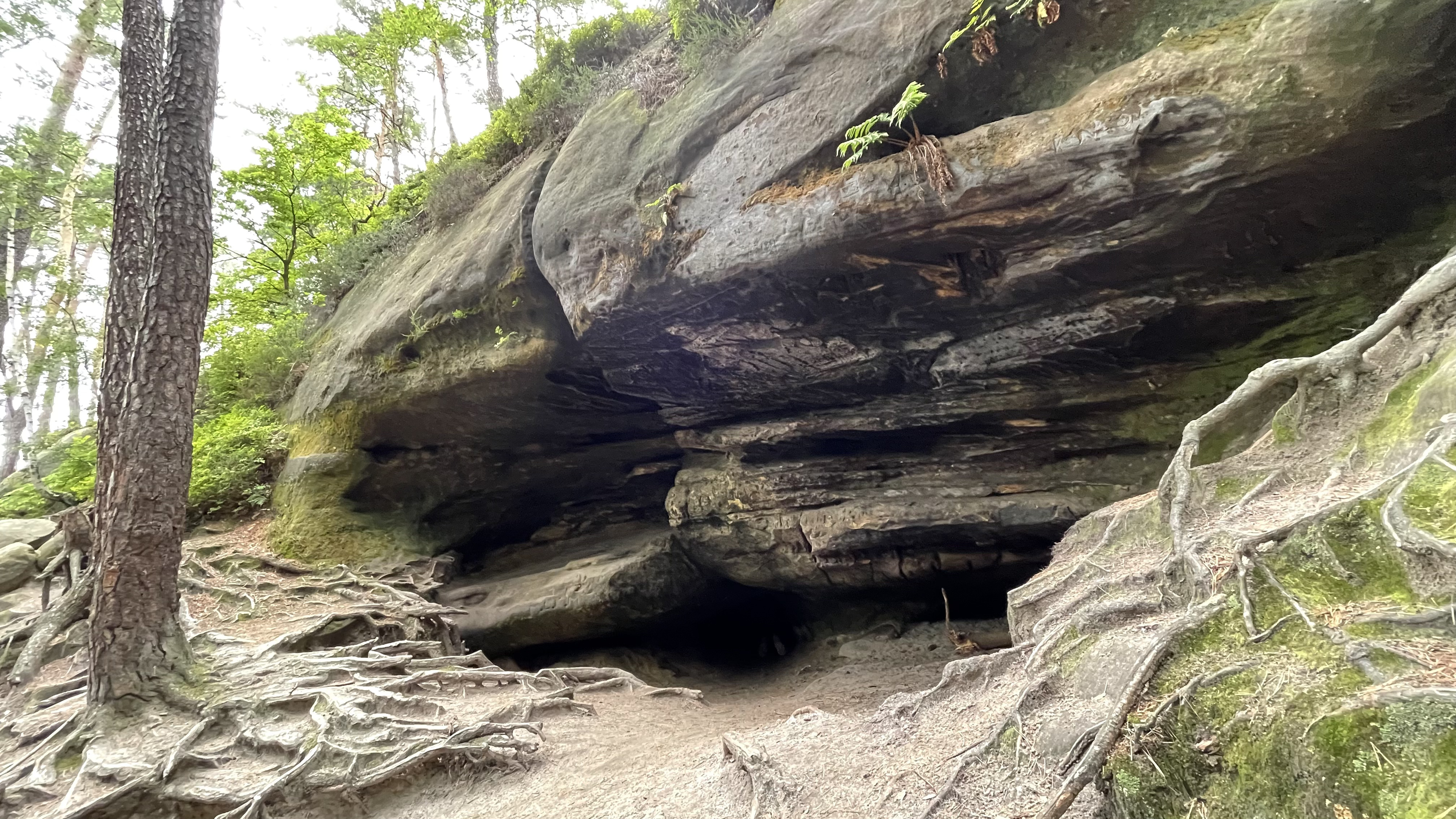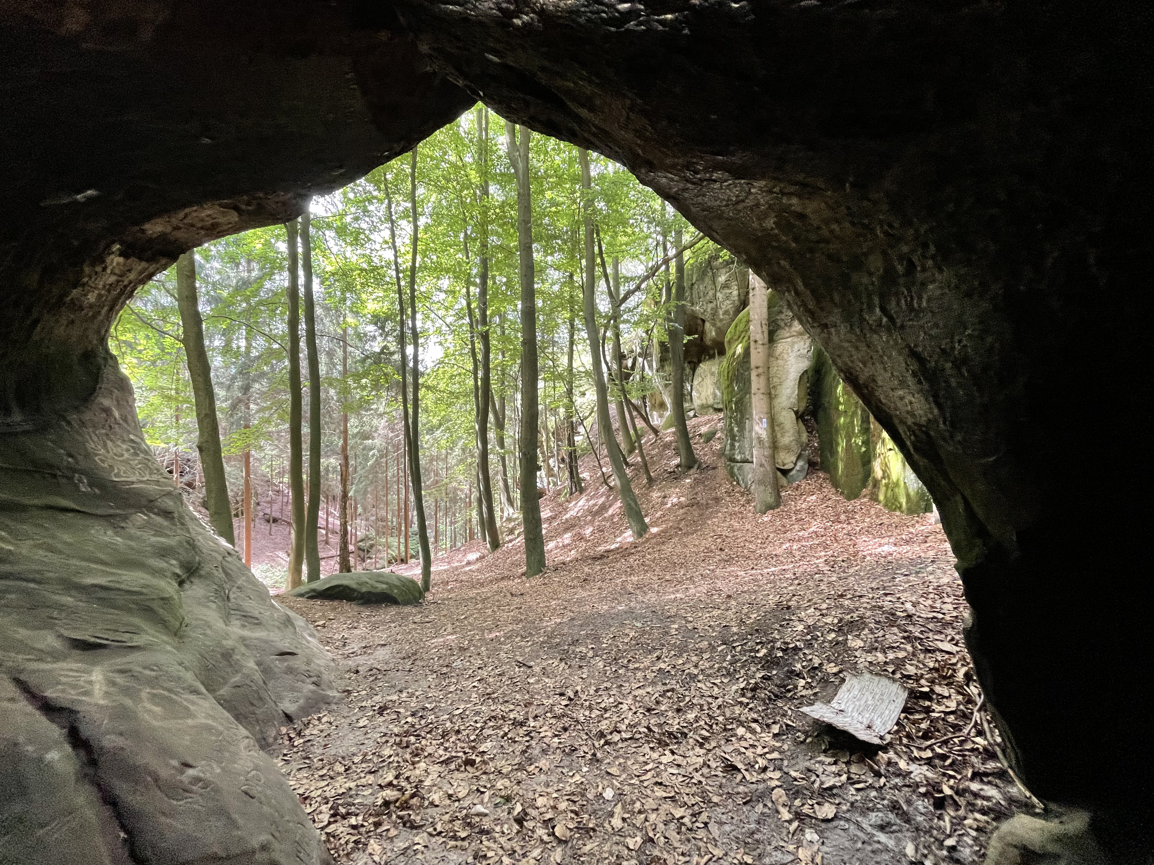 Jeskyně Postojna famous, massive cave in Slovenia. We are on our way to a Jeskyně Postojna. But not the one in Slovenia... a smaller one in northern Czech Republic. This cave, Postonja cave, was named after farmers' shouts as they kept shouting for their sheep "wait little one" ("postüj malá"). While the cave is not huge, it was a very nice cave to crawl through. Soft, dry sand at the bottom... smooth, round surfaces, tiny holes to squeeze through. A great exploration, with also countless other smaller caves around in the so called Klokočské Rocks natural park. There must be thousands and thousands of holes here, wondering if everything's been researched and looked into?