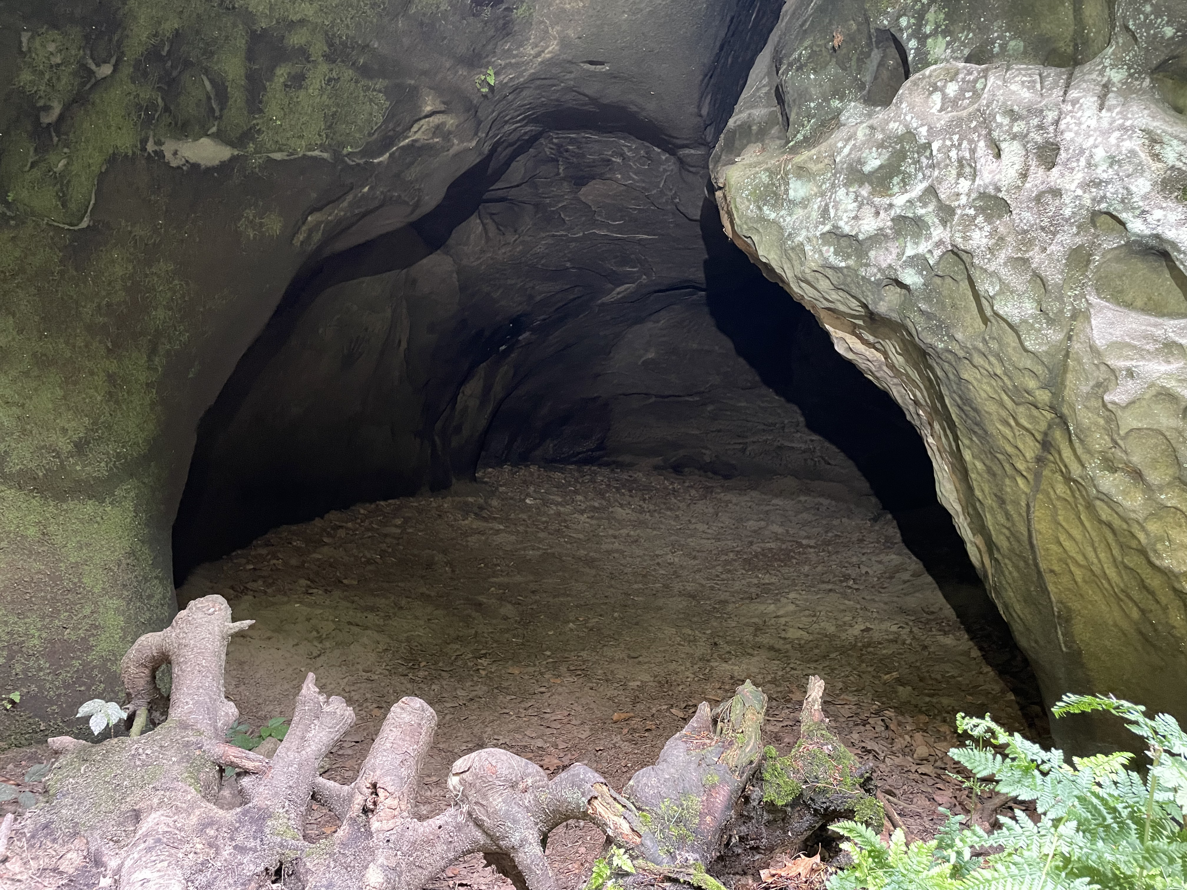 Access. The main cave was difficult to find, by the way, among the many holes and a major cliff that we couldn't find an easy way to descend from. It turned out that the right path was to follow the big walking path, basically until you hit the main cave. There's side paths where you can explore the side caves, but the big path takes you to a gully that leads safely down the cliffs and also to the main cave.