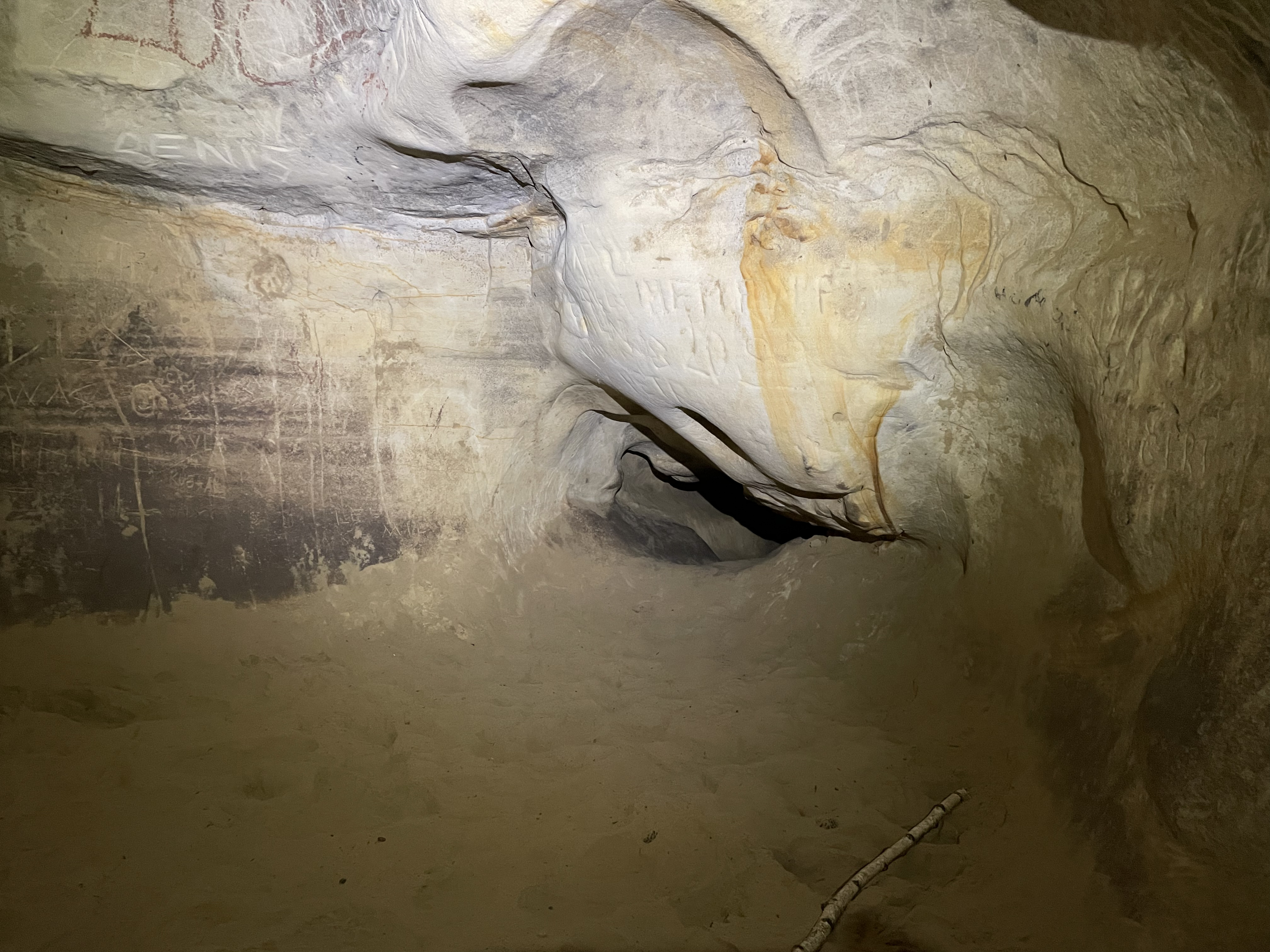The second side cave in particular was a lot of fun. A straight and very tight on-your-stomach-pull-forward tunnel leads to a single round chamber. Nice!