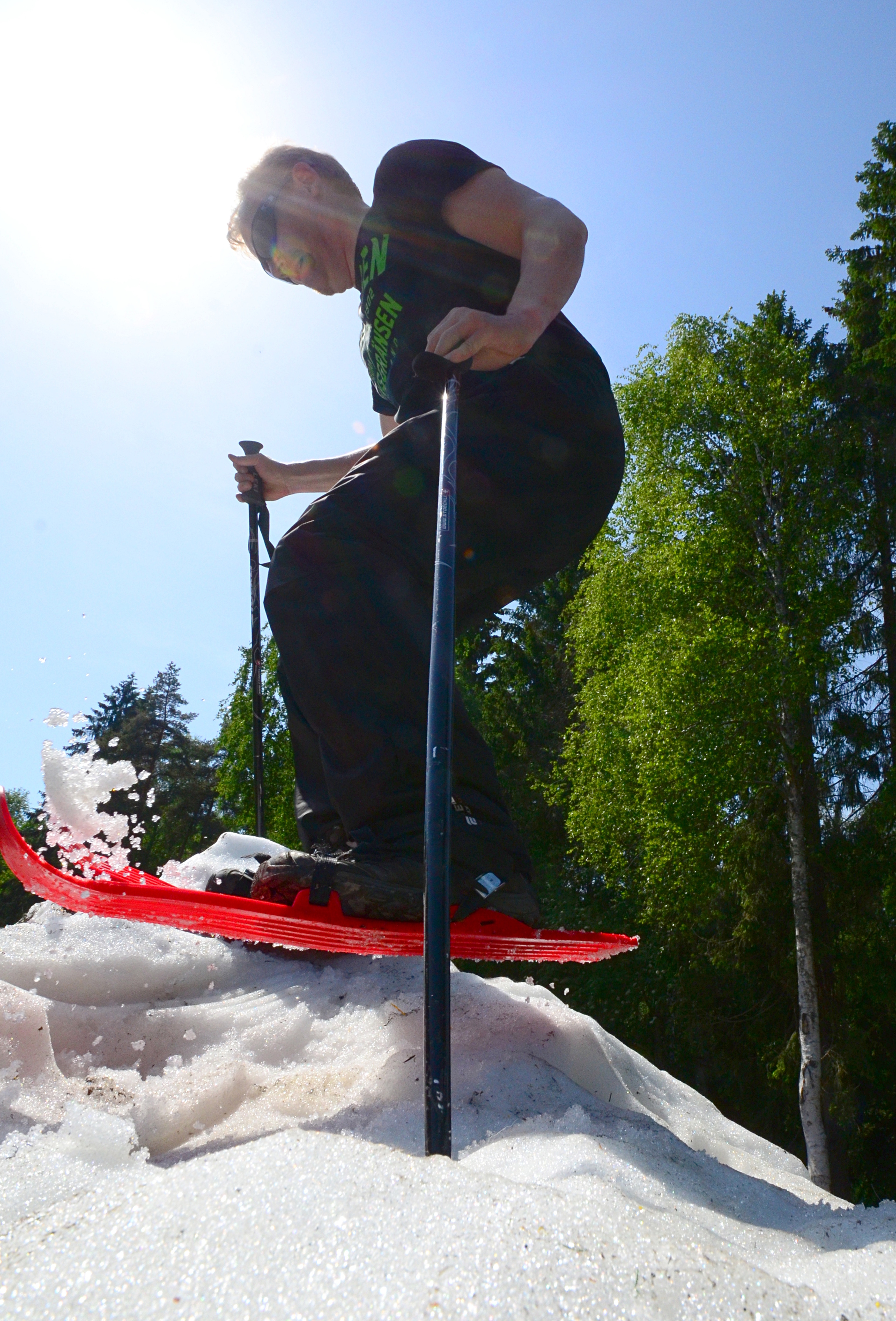 June 2nd. Sunny, temperature 25 degrees Celsius. I should be able to find some skiing, right? But the Grani slope seems all too green. Perhaps I should try skiing in Sahara? But I find only sand. But then my luck turned...
