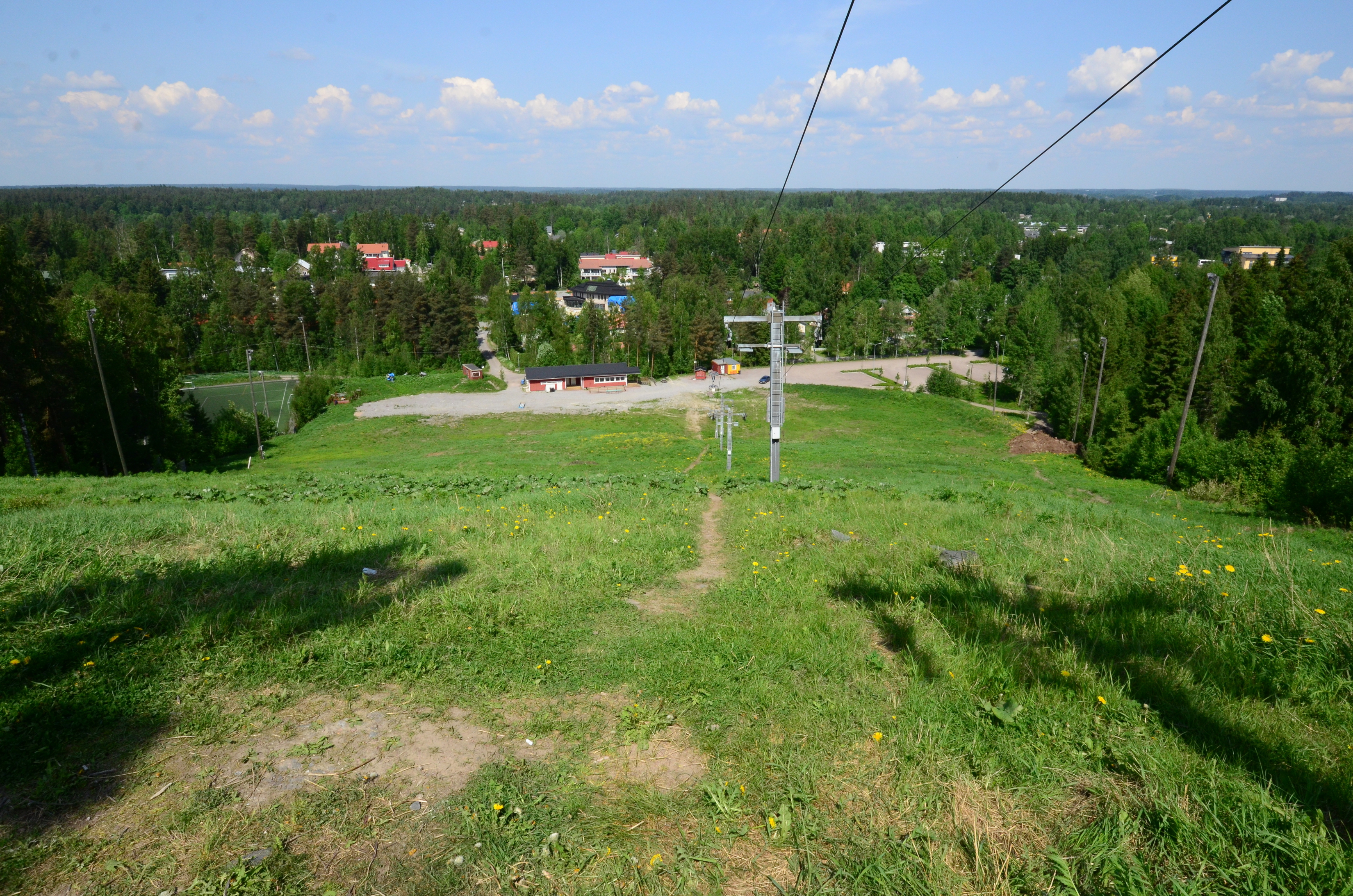 The winter season was the longest in living memory. So I was hoping that there might be some snow left even in June. But no. The Grani slope is all grass, not even the tiniest spot of snow left. Oh well. It doesn't stop me from skiing it. Although I should have come earlier, the long, fresh grass is not slippery enough to be skied. Dead, dry grass from last year would be better.