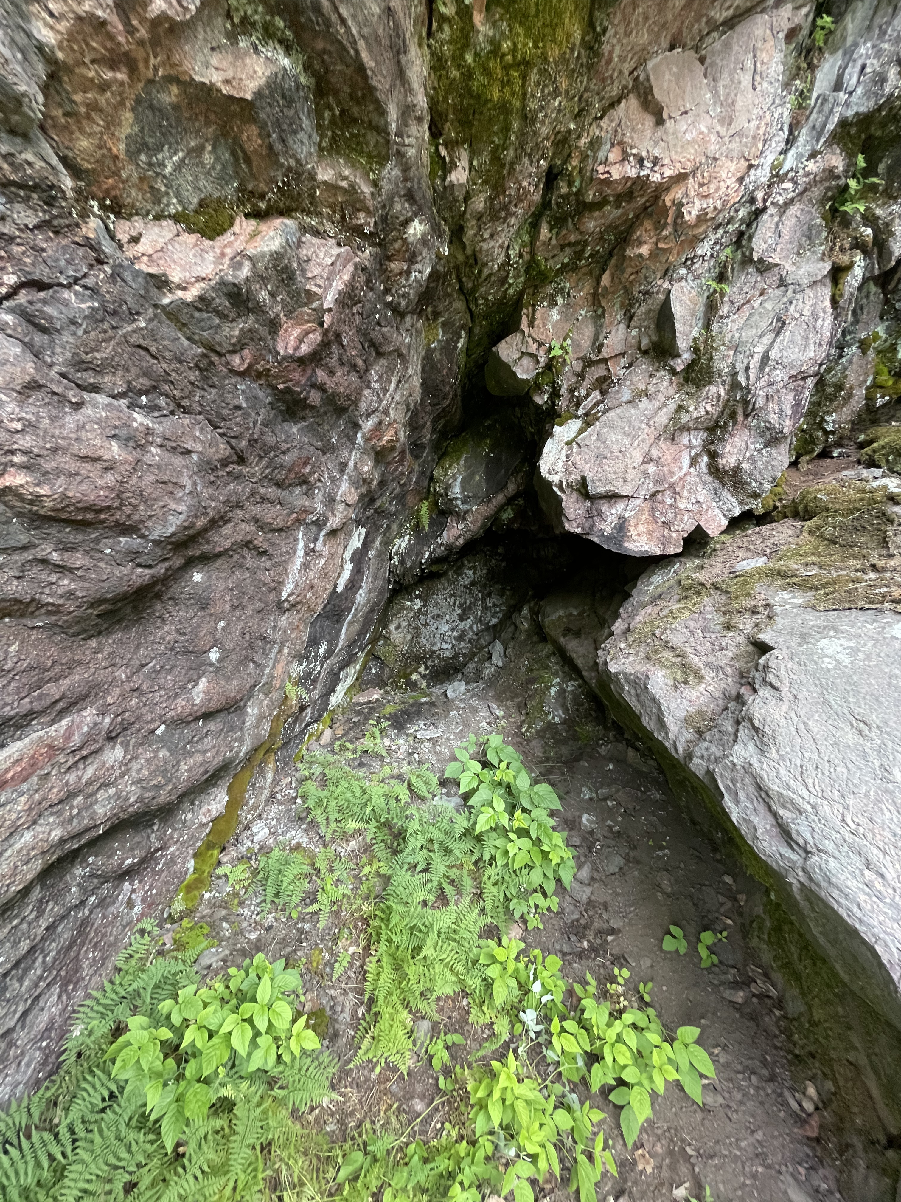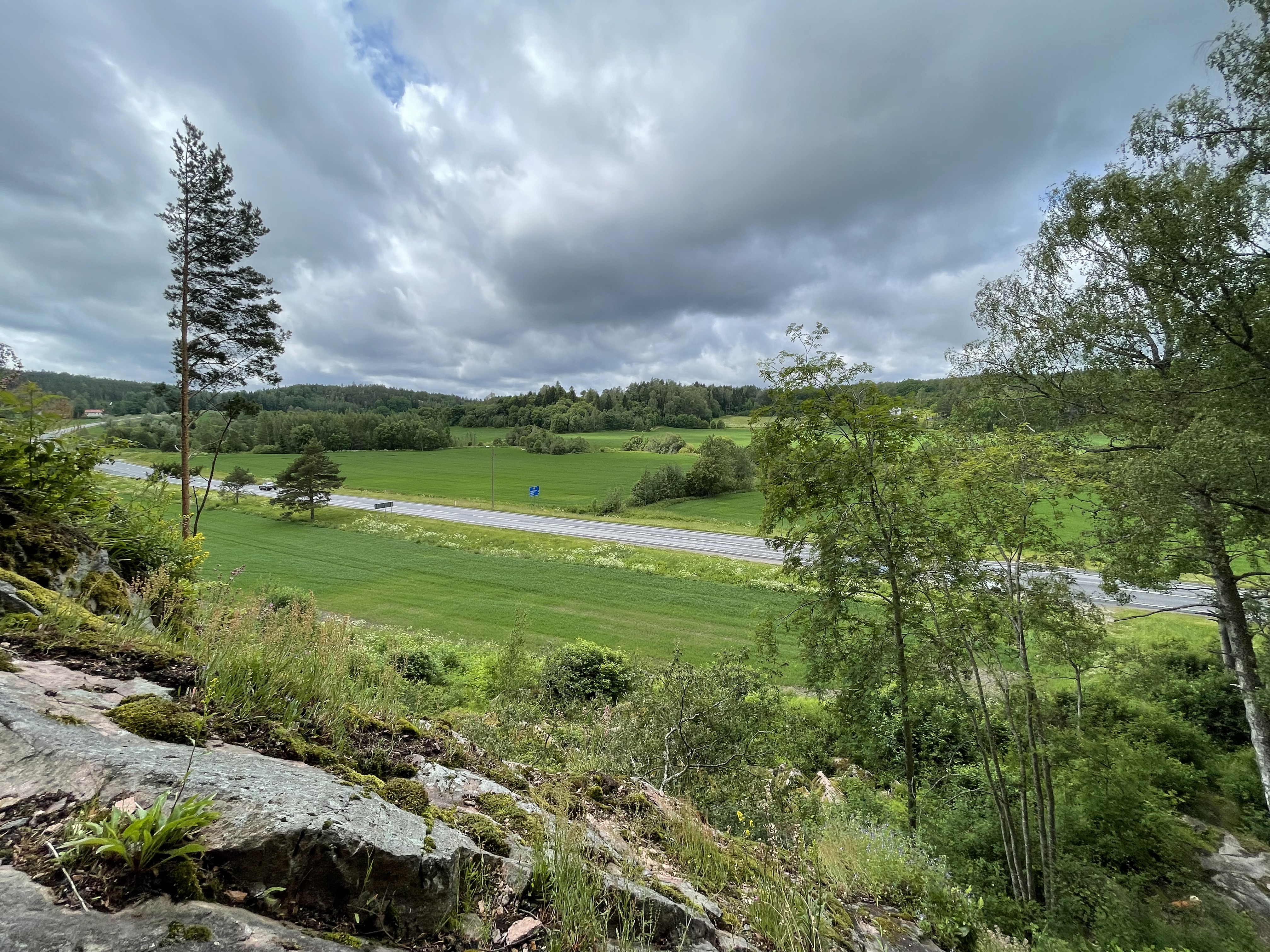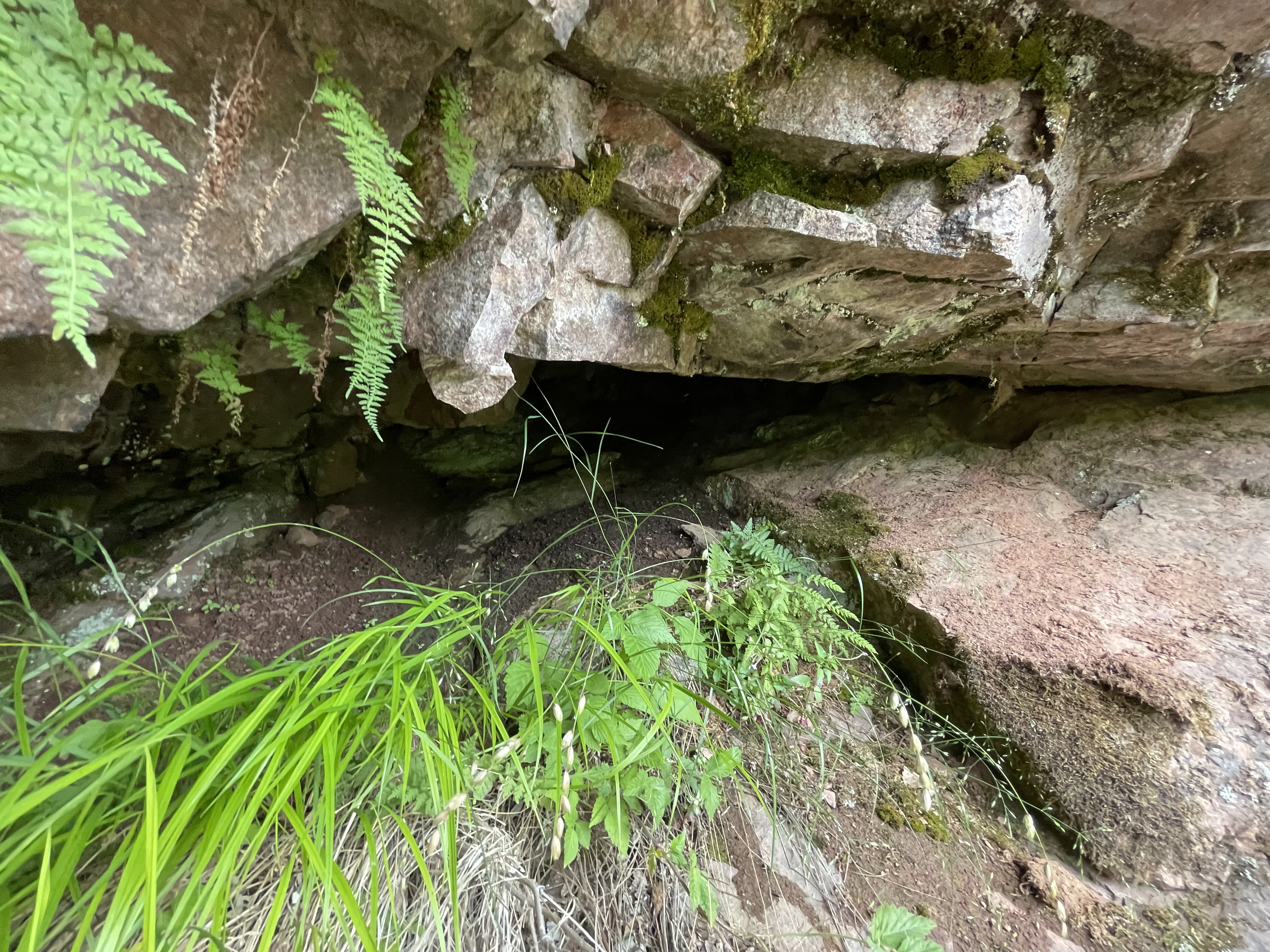 I was driving back from a very nice midsummer visit to a friend's cottage when I spotted a grand, 20+ meter cliff by the roadside. I had seen this before, but never had an opportunity to stop. But now I had to, because there was a hole on the middle of the wall, staring me in the eye :-) The question was though if I could get to it without climbing equipment. It turned out that a steep ledge was leading up to it, not great and not for wet weather, but still climbable carefully. So I got to the hole! It turned out to be a pretty small though, maybe 3 meters long. Still something, but as a too short cave I had to return it back to the nature :-)