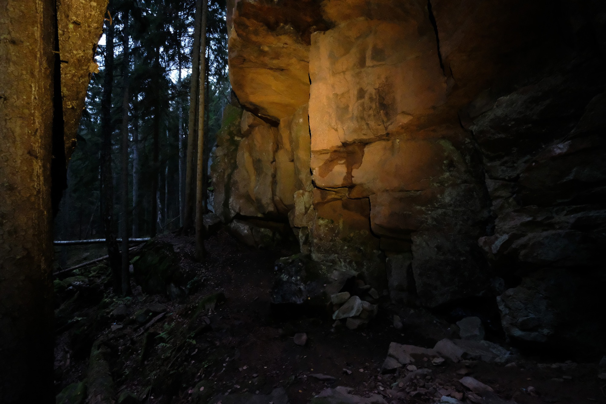 When approaching this cave, it is best to park in Laitamaa, and walk through the woods to the canyon area. There's also a very nice (and loud!) stream running nearby.