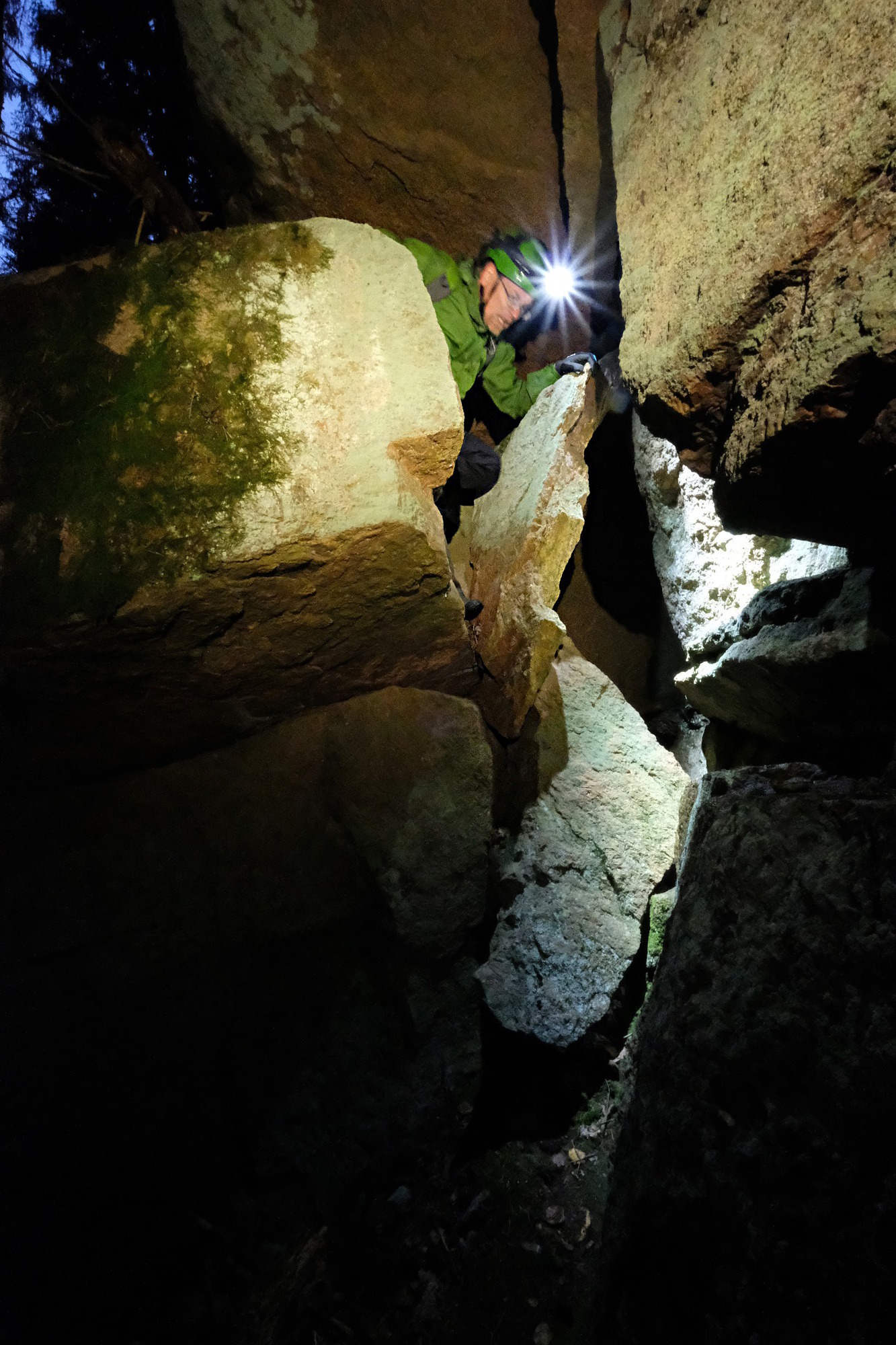 Apparently, we like caving so much that we're willing to search forests in darkness, with headlamps, to look for caves.