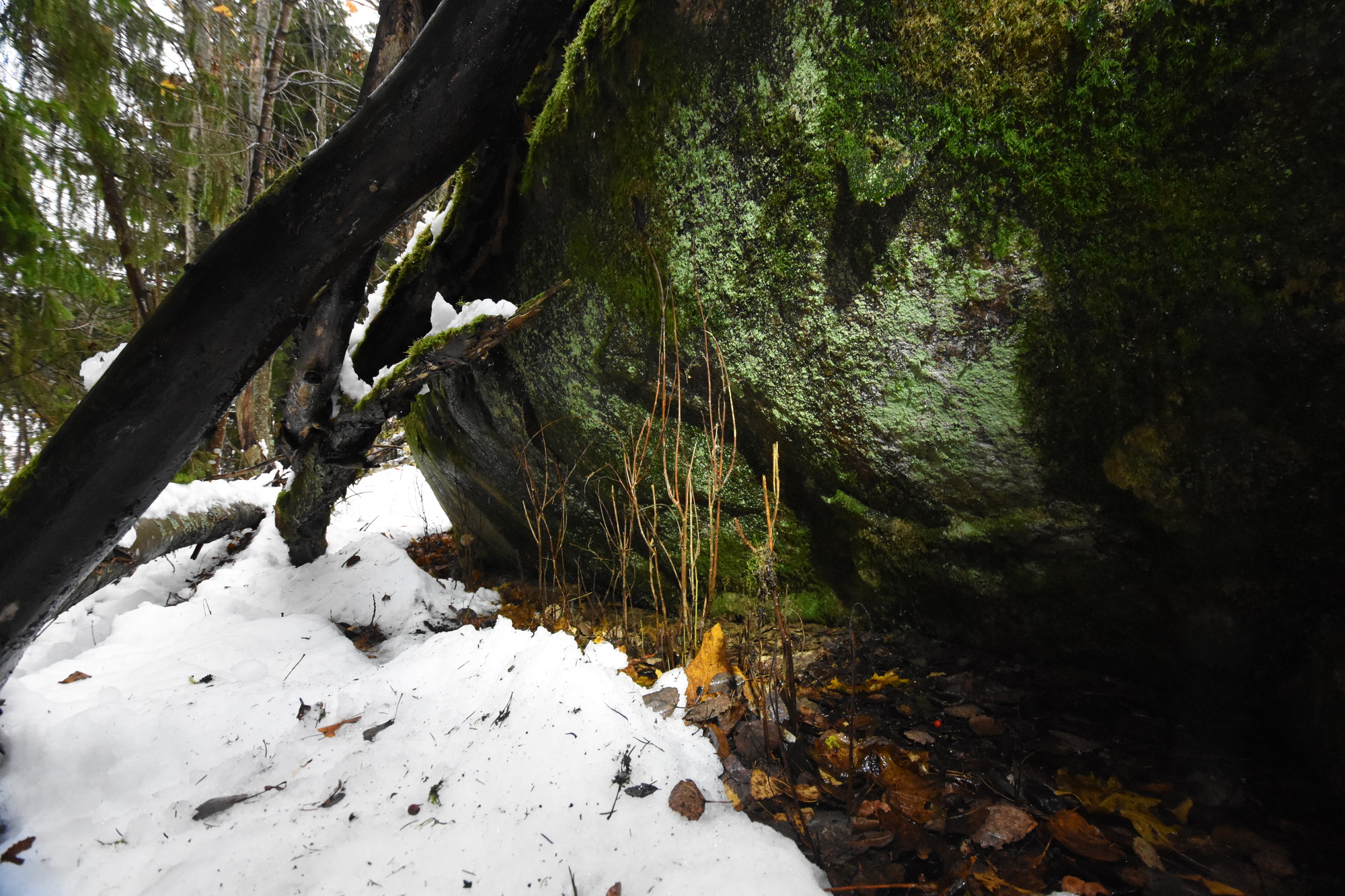 While searching for possible bunkers, we came across a tiny roof cave. Probably not enough to be classify as a cave, but now that I've seen it, I wanted to record its location.