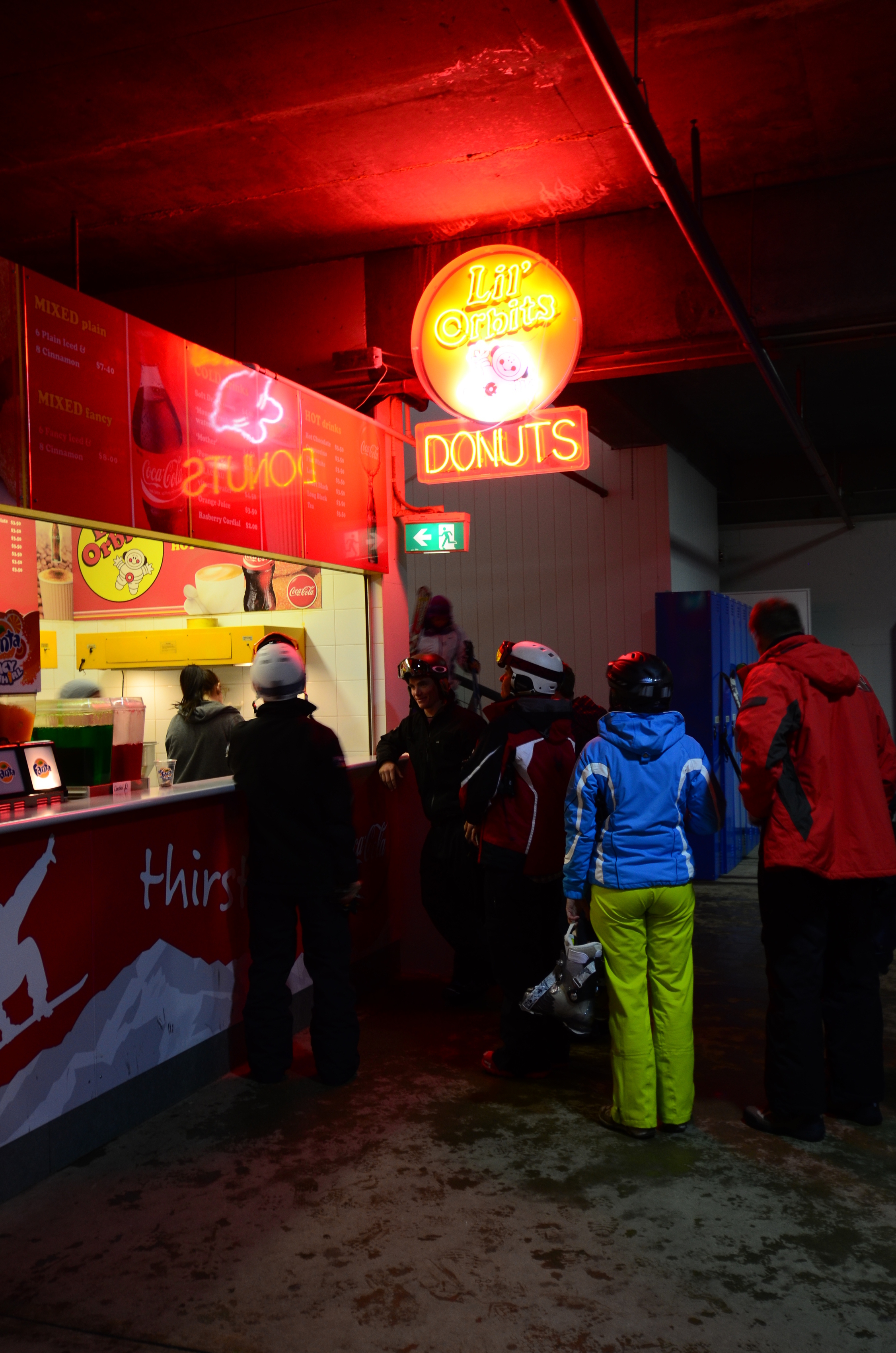 After-ski takes place either in Jindabyne or Thredbo. I found the Thredbo scene more interesting. Smirnoff Dome sits near the valley terminal (see the map), and is reportedly popular after the lifts have closed. When I checked it out at 9pm it was deserted, however. A colourful scene, however: