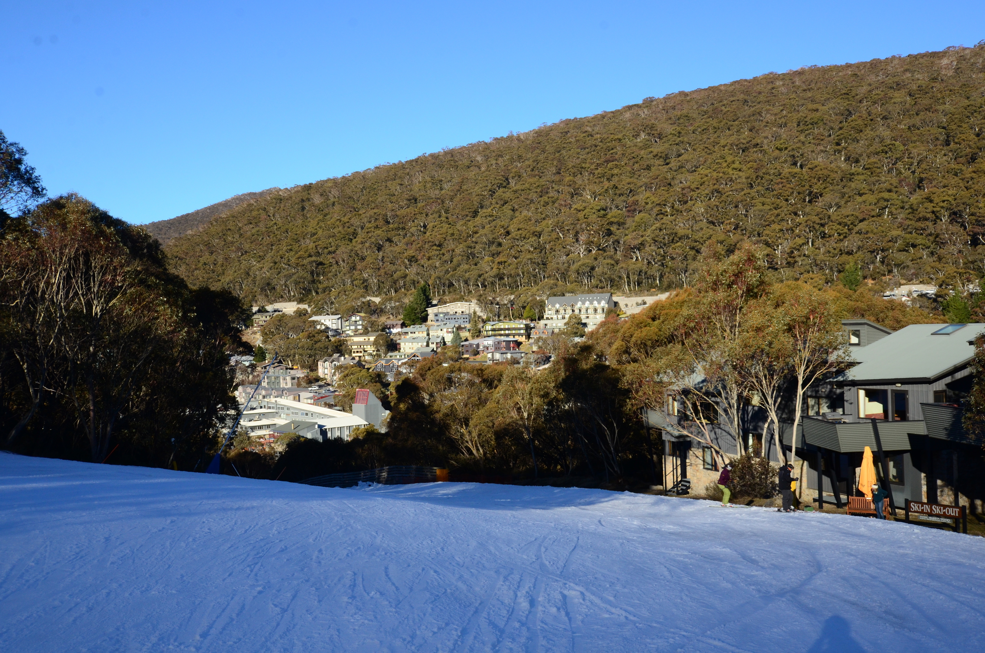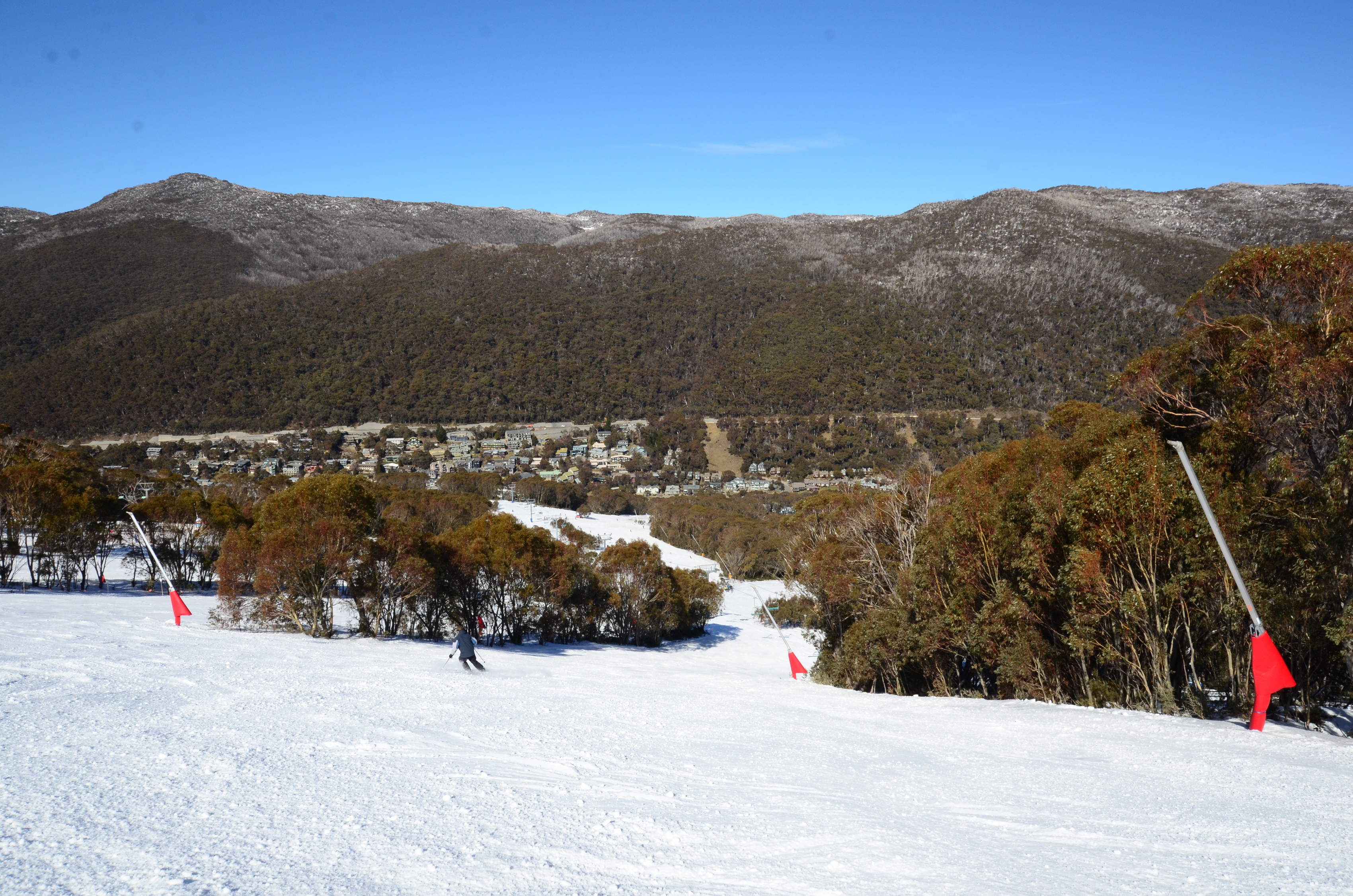 Here are some of ski slopes with the Thredbo village and Alpine Way behind: