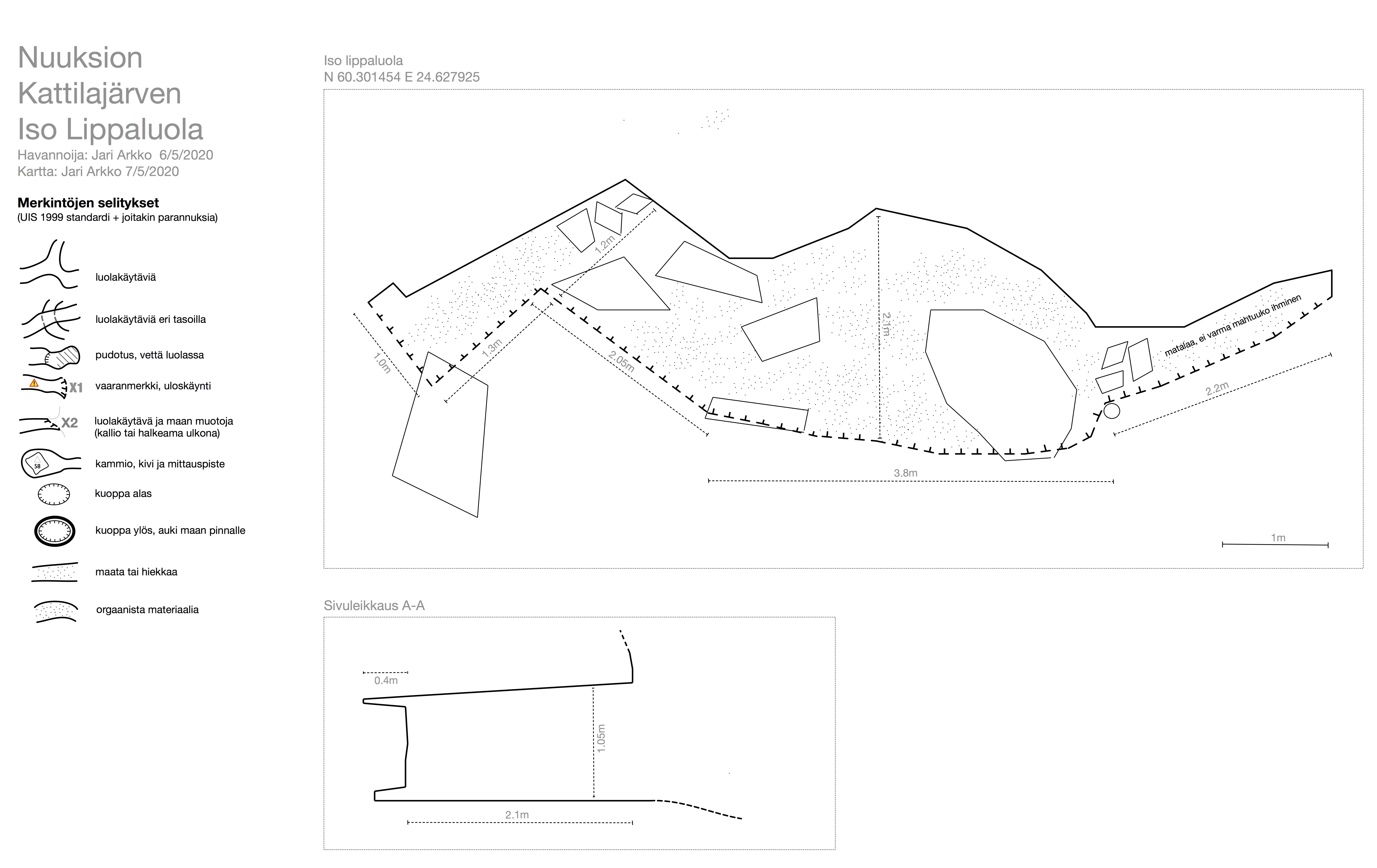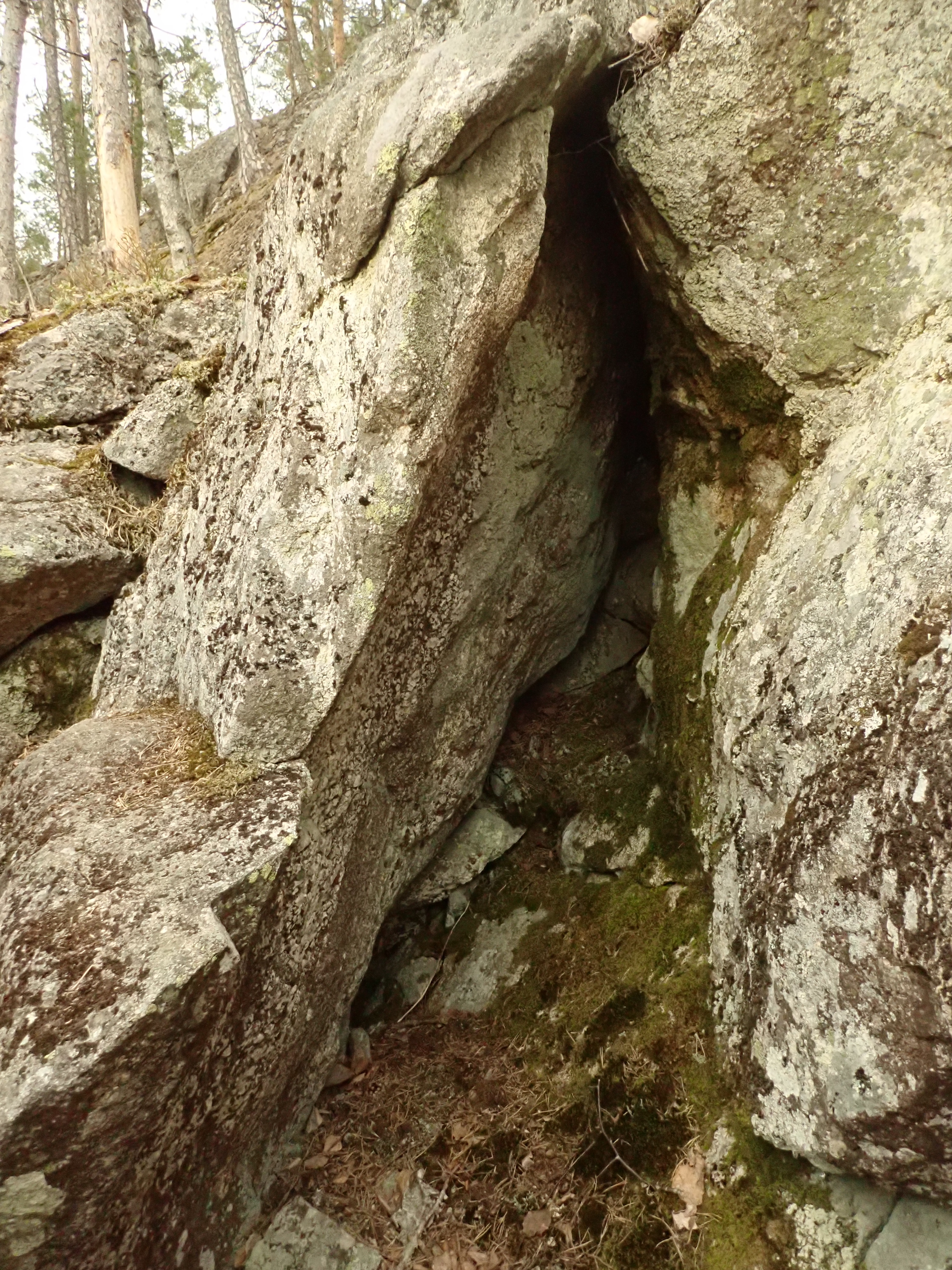 The triangular hole is about 1.3-1.6m deep and 1.5m high. Its coordinates are N 60.30030 E 24.62805. Picture: