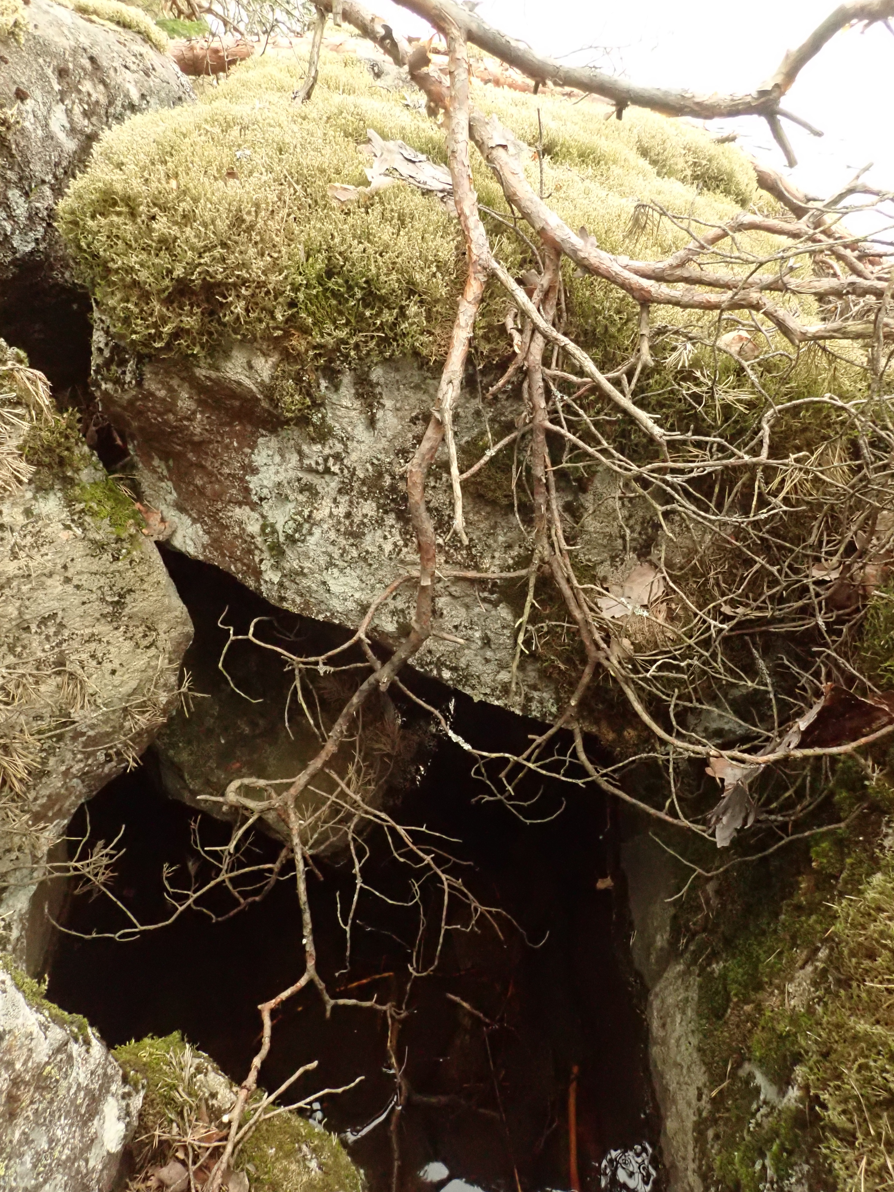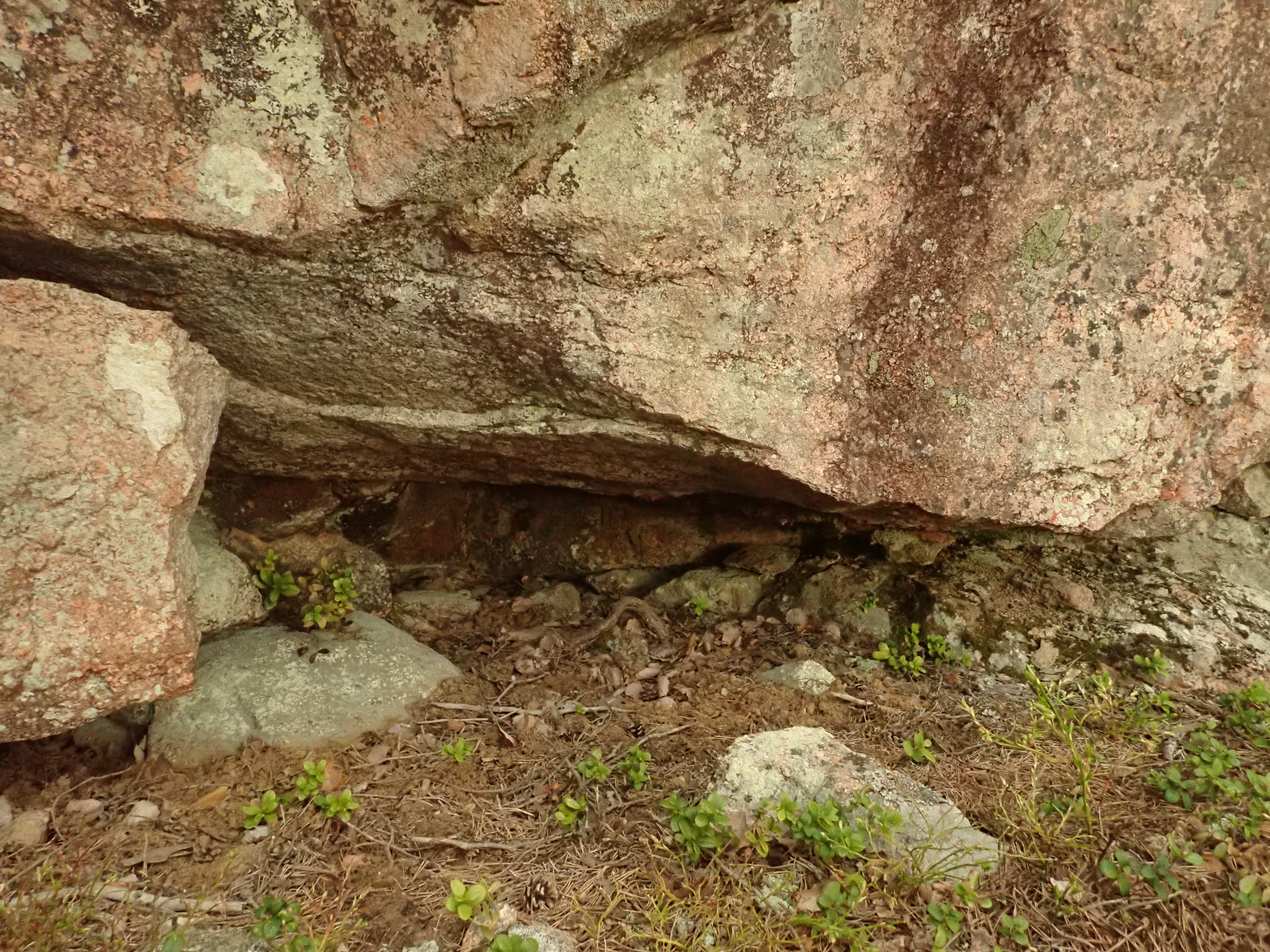 But the second cave was a real gem: a flat roof, 1-meter high long and over 2 meters deep roof cave. Again in red rock, this time surrounded by green moss. Very nice! Also reported in Retkipaikka.