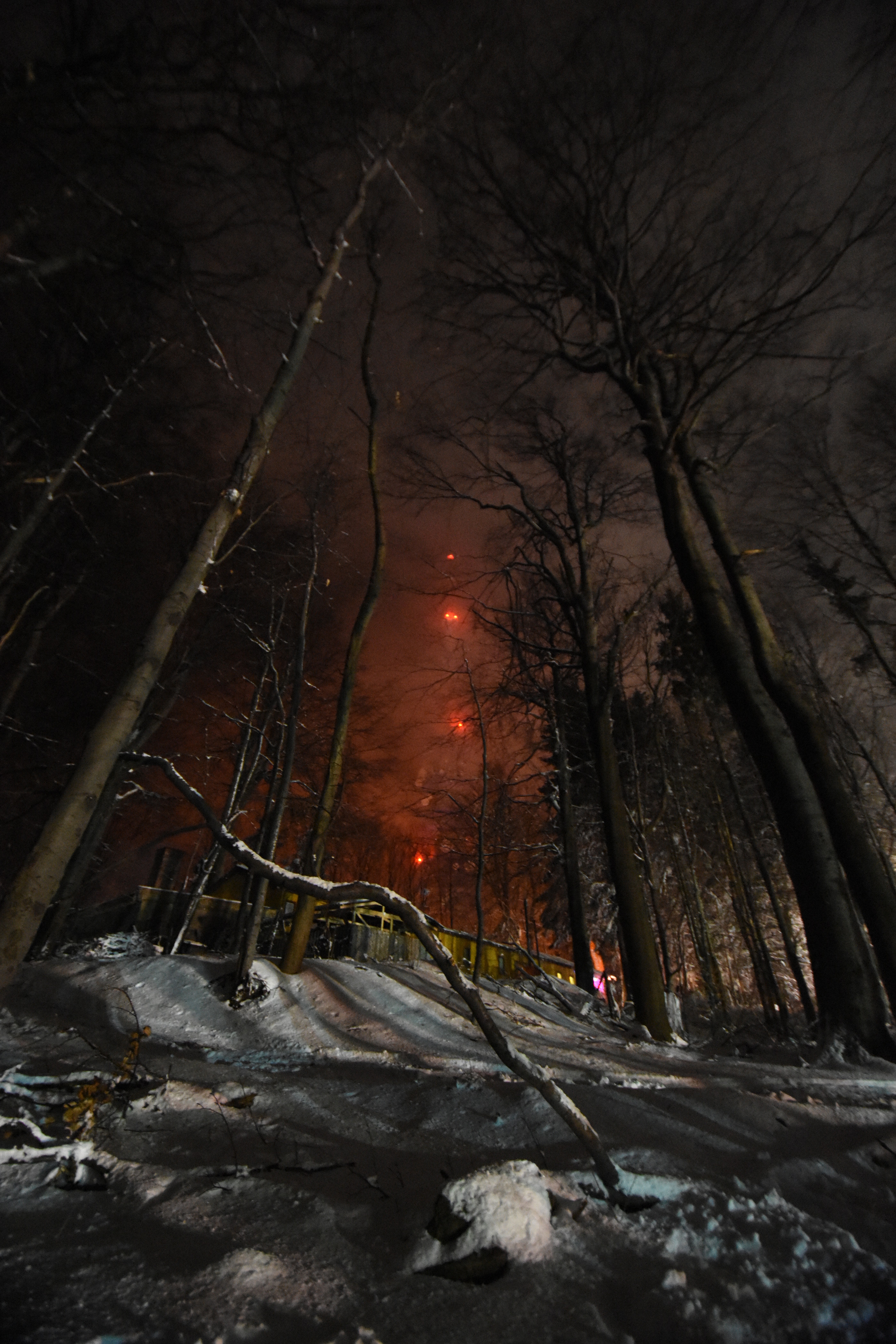 If you are skiing in the forest between the main slope and the abandoned/closed other shorter slope, some hiking is needed to start the skiing from near the TV tower at the top of the mountain. A better option may be to sneak past the side of the men's bathroom, as the forest starts right behind it.