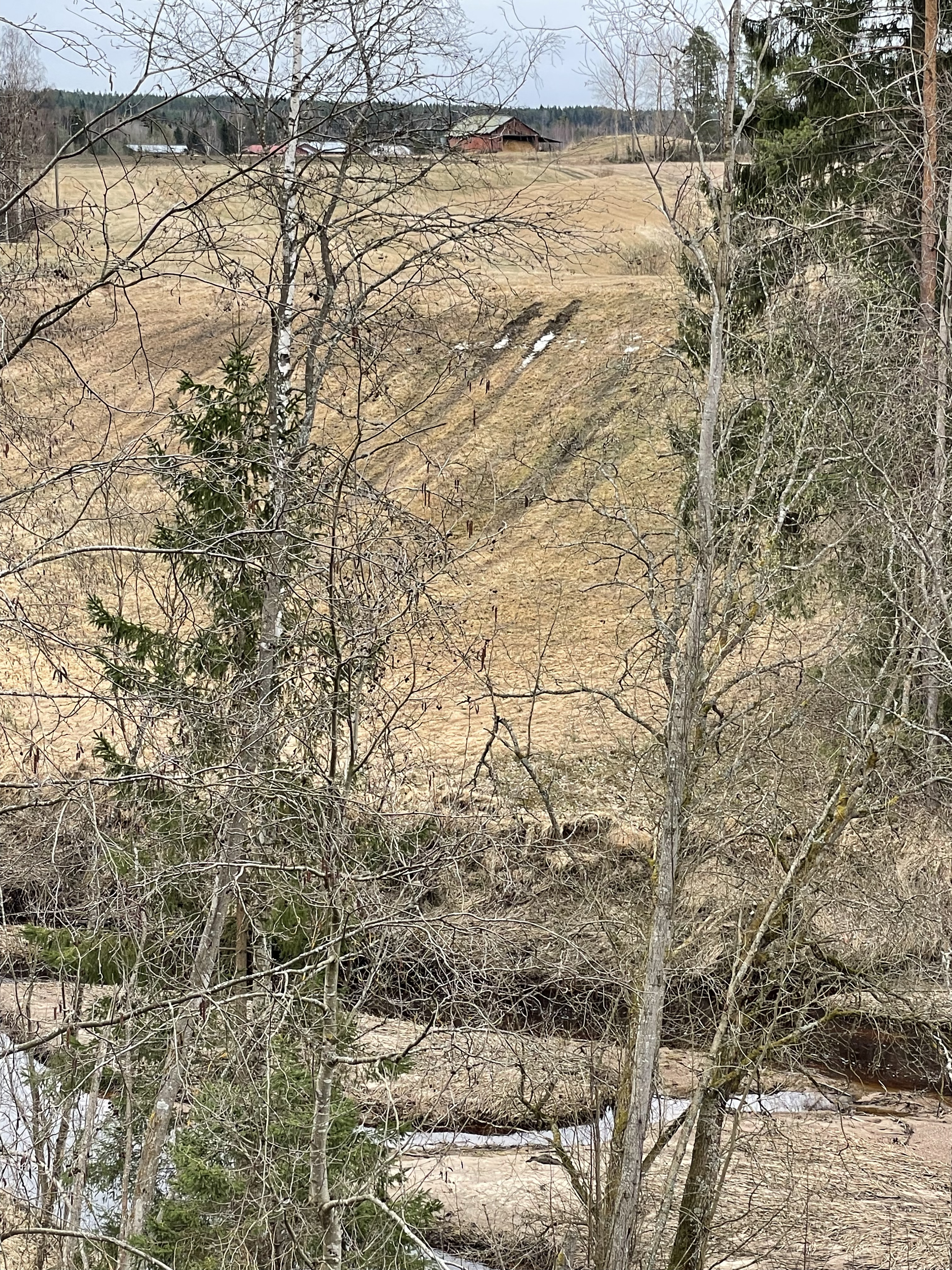 Kiuaskallio was actually only my third option to ski. Duncan had told me that there was a nearby slope on a river canyon that was well shaded and he had seen it covered by snow just a few days ago. Unfortunately, it turned out to be almost melted now: