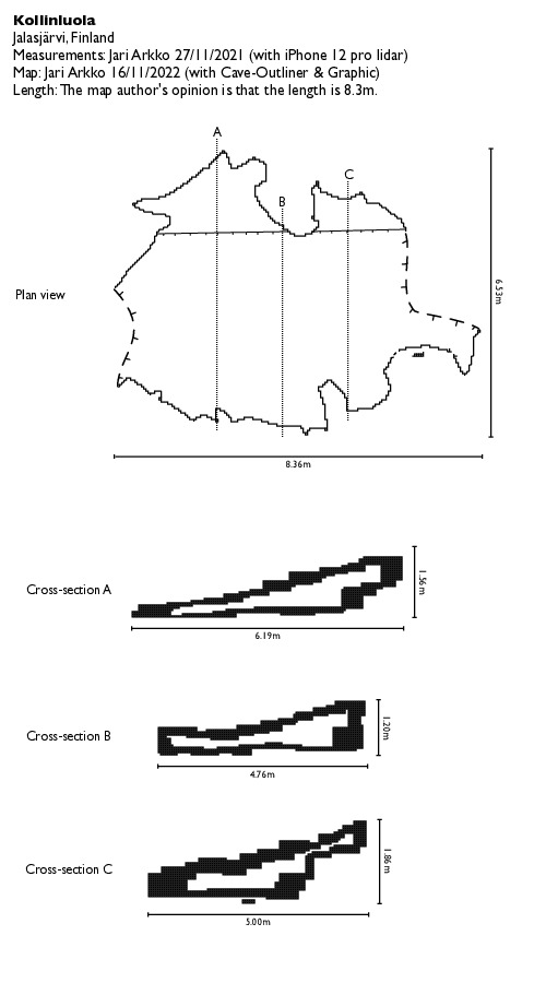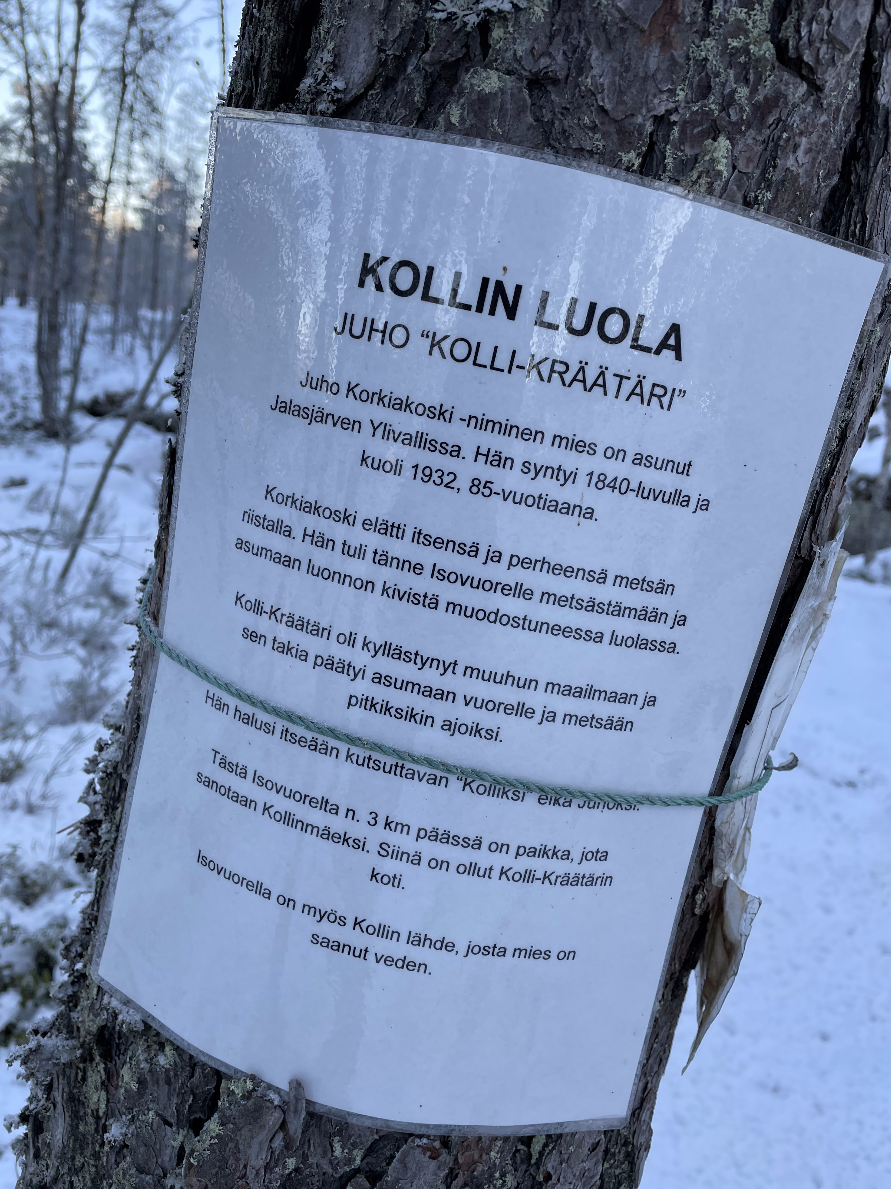 Just before the caver's pre-xmas party, I visited ' Kollinluola' - the cave of the tomcat. Or, the cave of Juho Korkiakoski who was also called Kolli. It is a small cave under rocks.