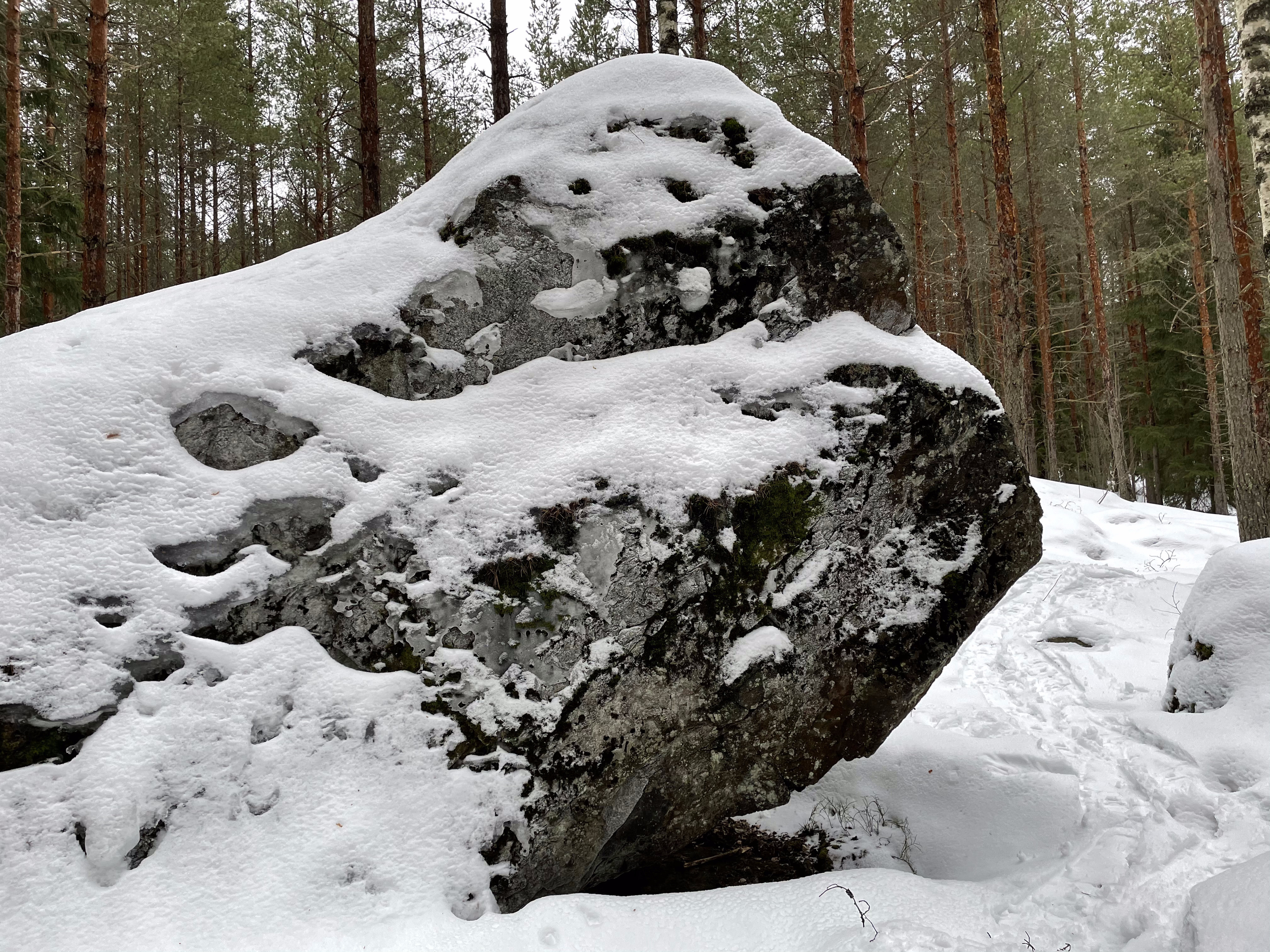 Korpikylä ("Remote Village") is a region in Hyrylä. I was stopping in Hyrylä for other reasons, and looked on the map for an interesting place to go snowshoeing in. Korpikylä fit the bill, and after some searching for a parking place I headed out for a two-hour nice hike in snowy forest.