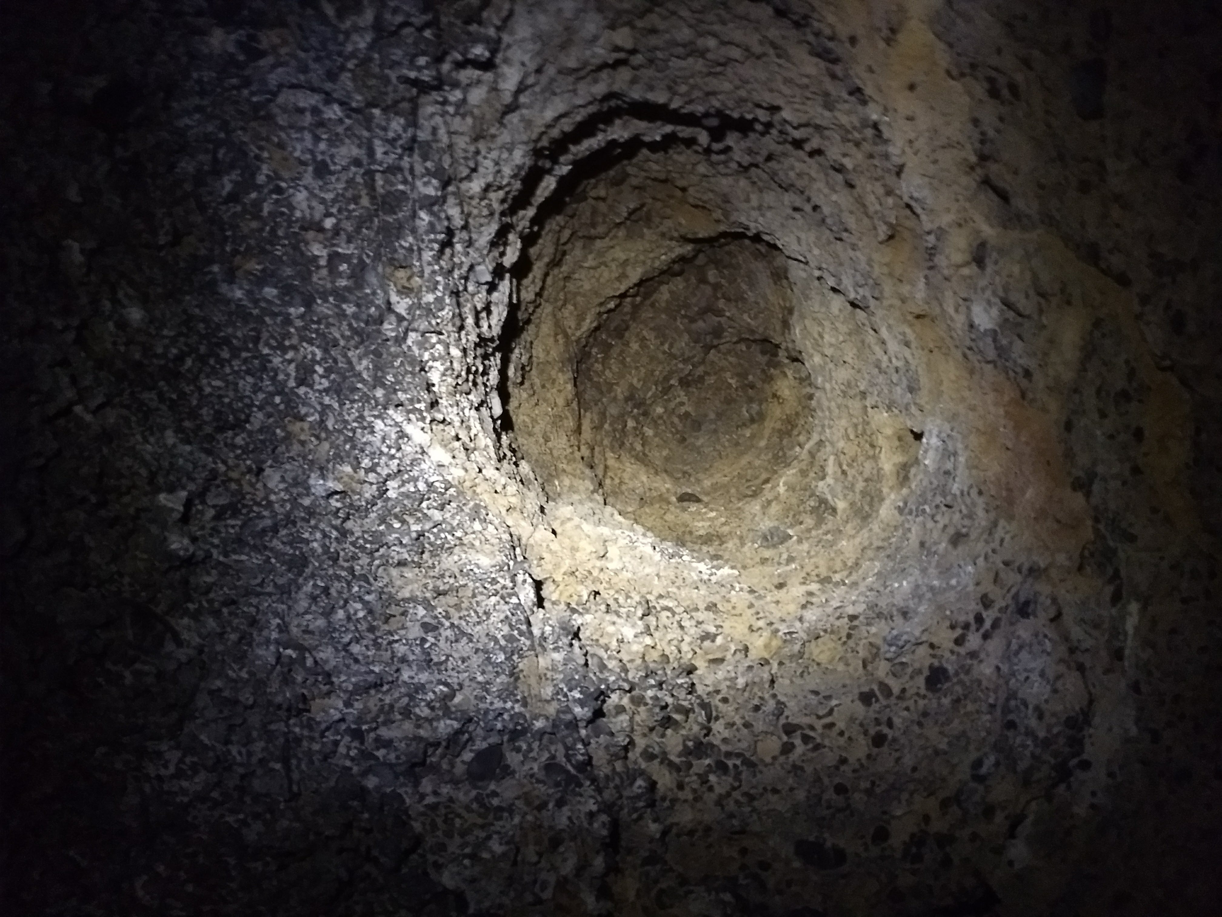 The cave was also an odd formation, kind of like a cathedral, and I don't actually know how it was formed. It is full of steep holes reaching towards the top, but then those holes simply stop. What formed them? Water? From where?