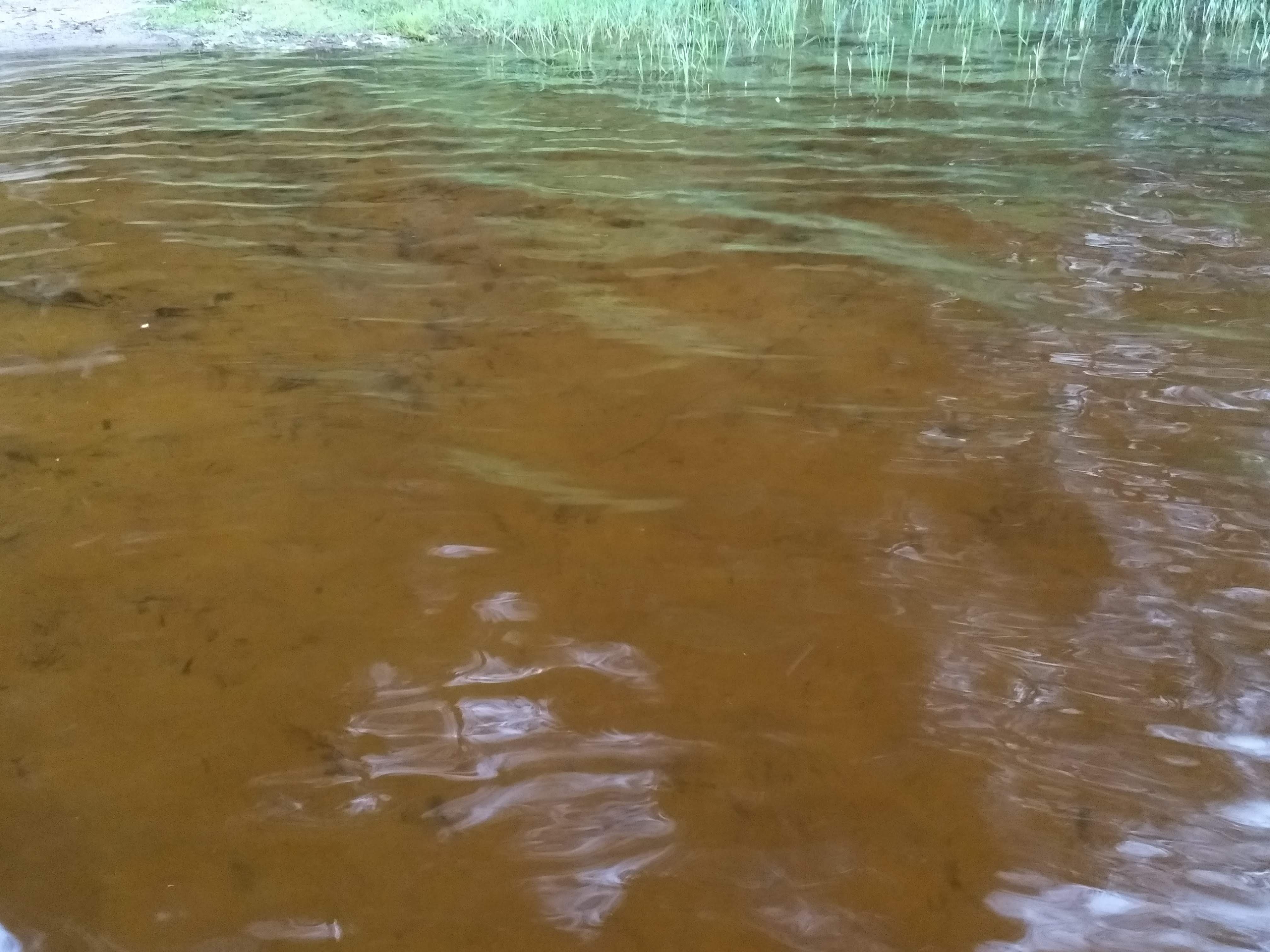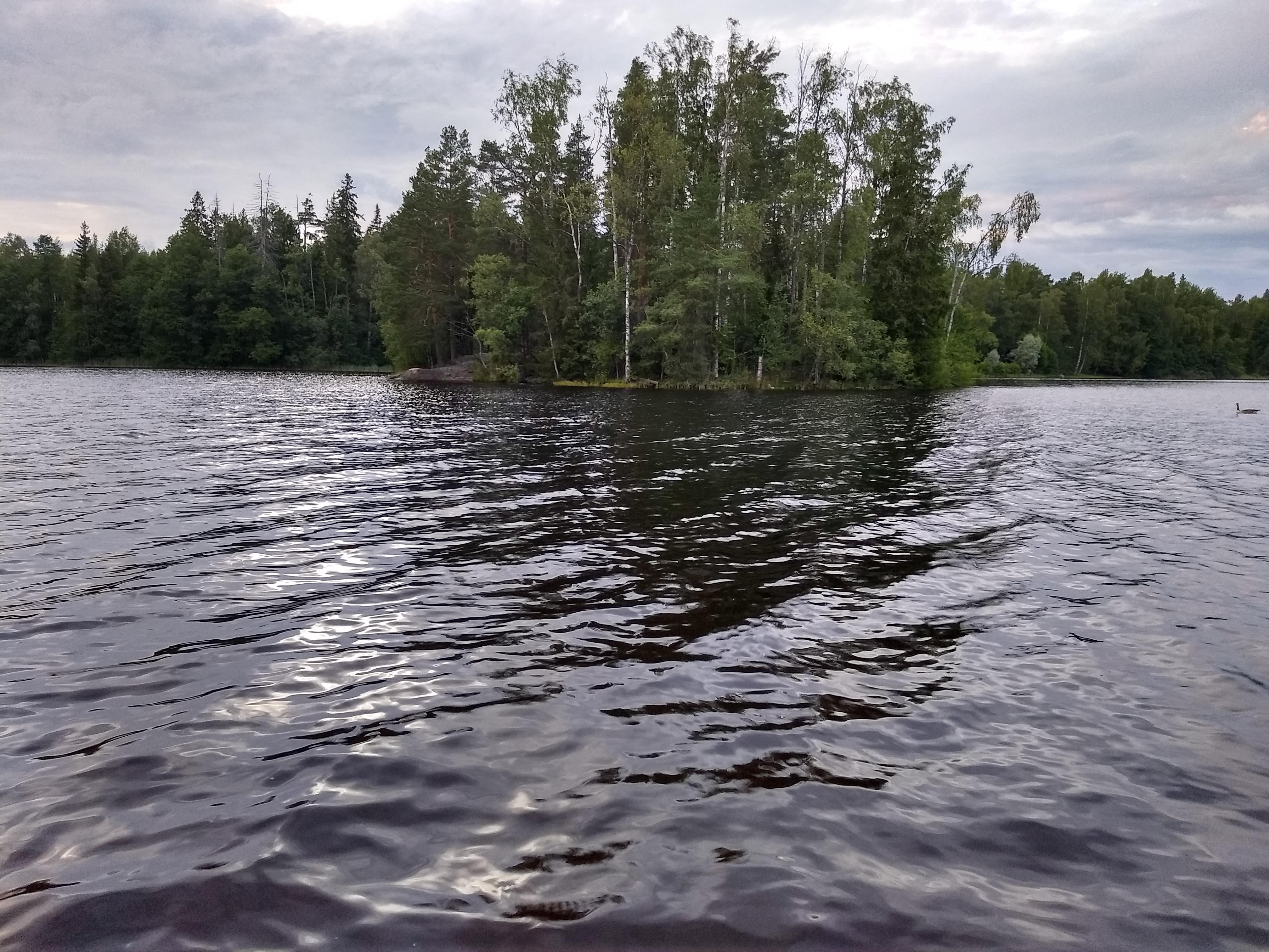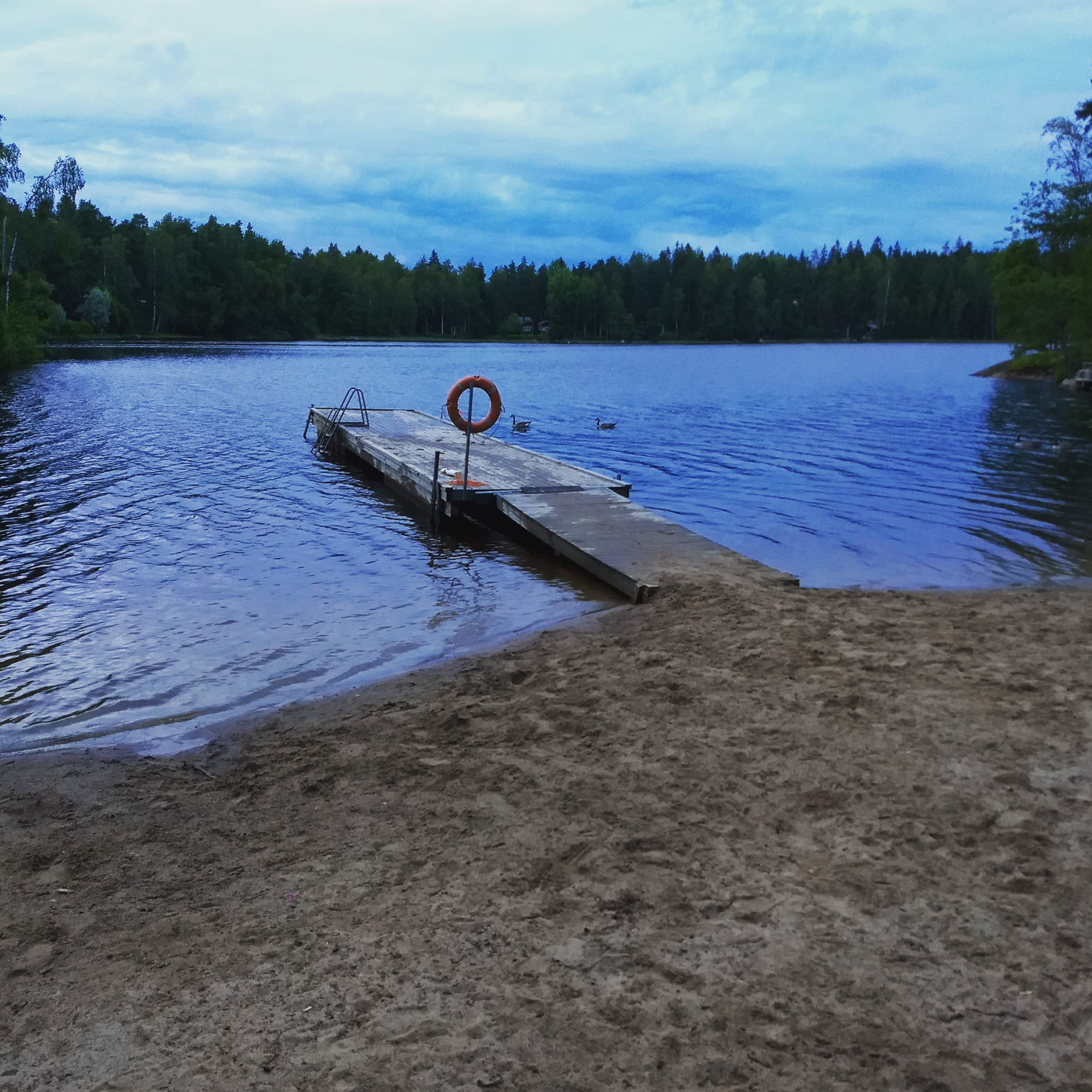 Such a nice lake, too. The water is typical of these smaller, deep forest lakes: pretty brown. But it feels good on your skin, soft, nature water. And just the right temperature, too. Not too warm, but not cold either.
