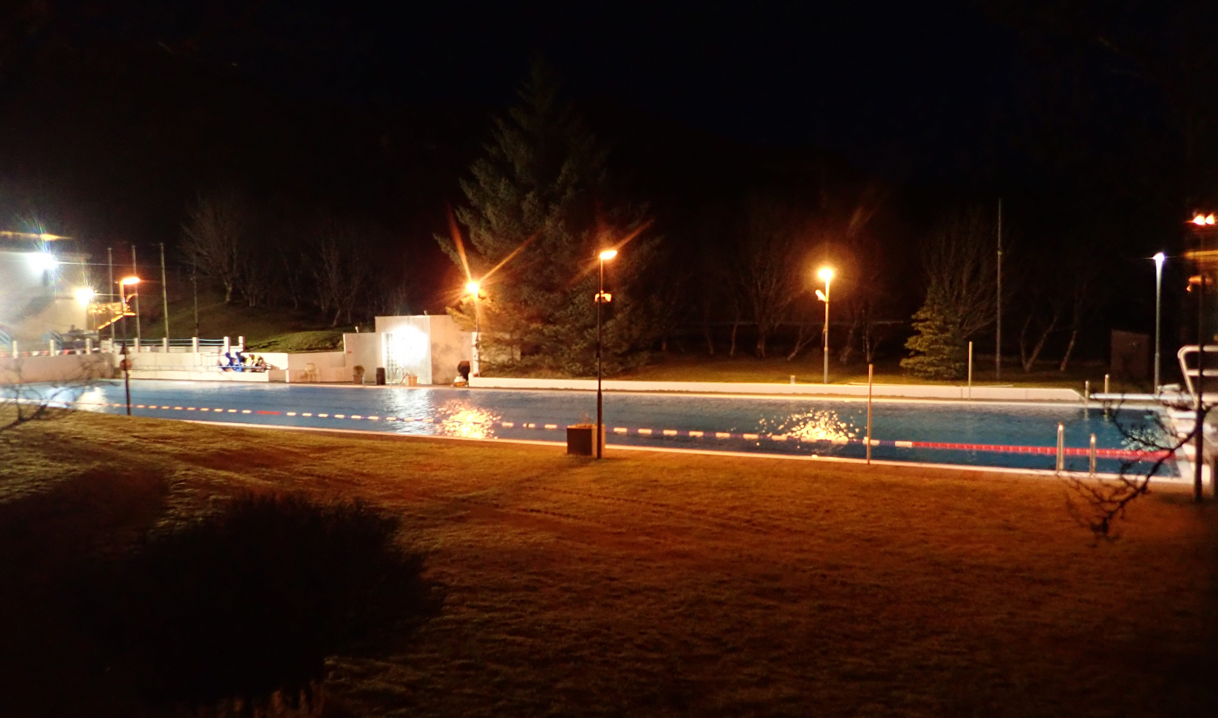 Amazing! The Laugaskard swimming pool is a community-run, swimming pool, gym, and sauna facility. What a wonderful, hot swim outside in the cold weather.