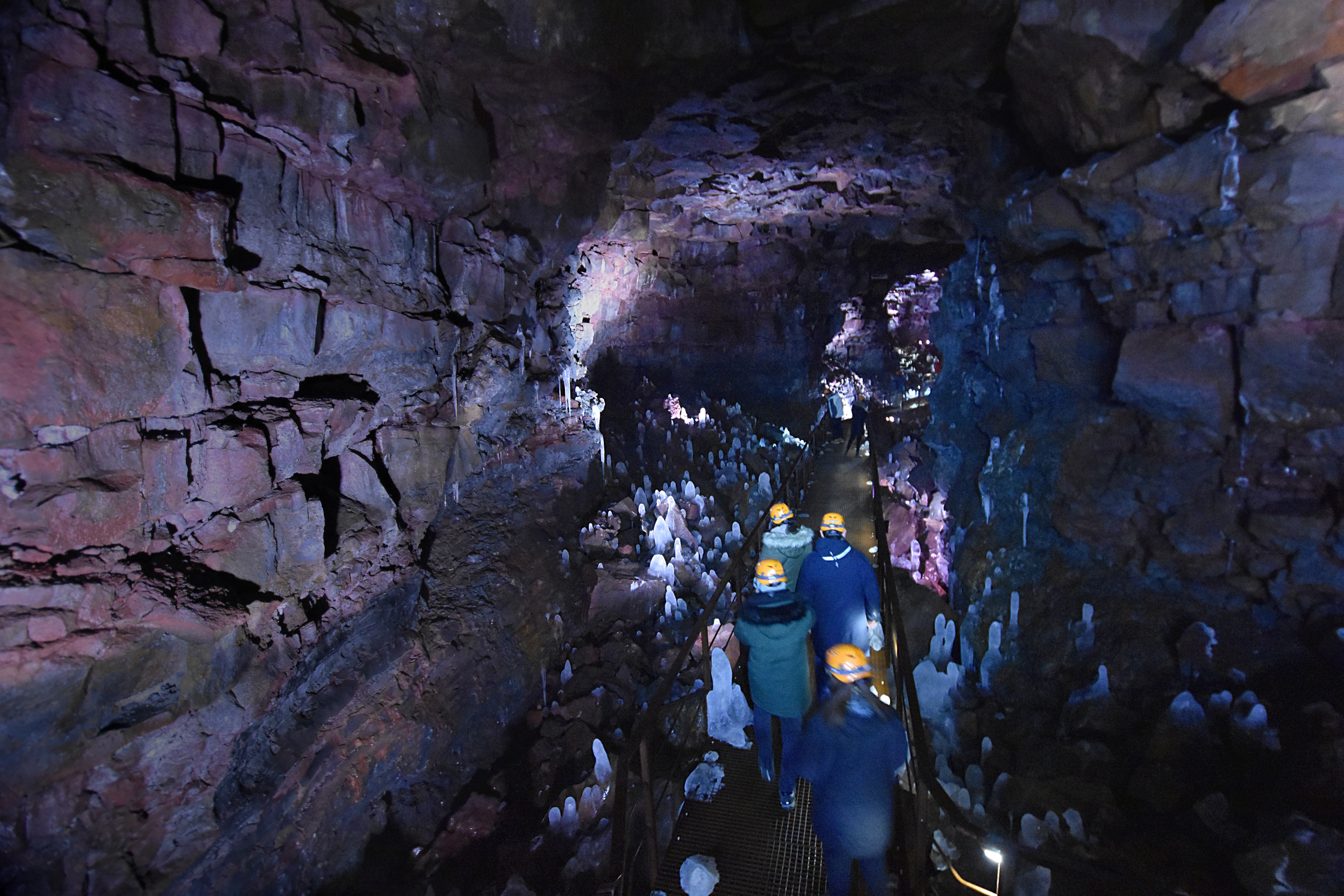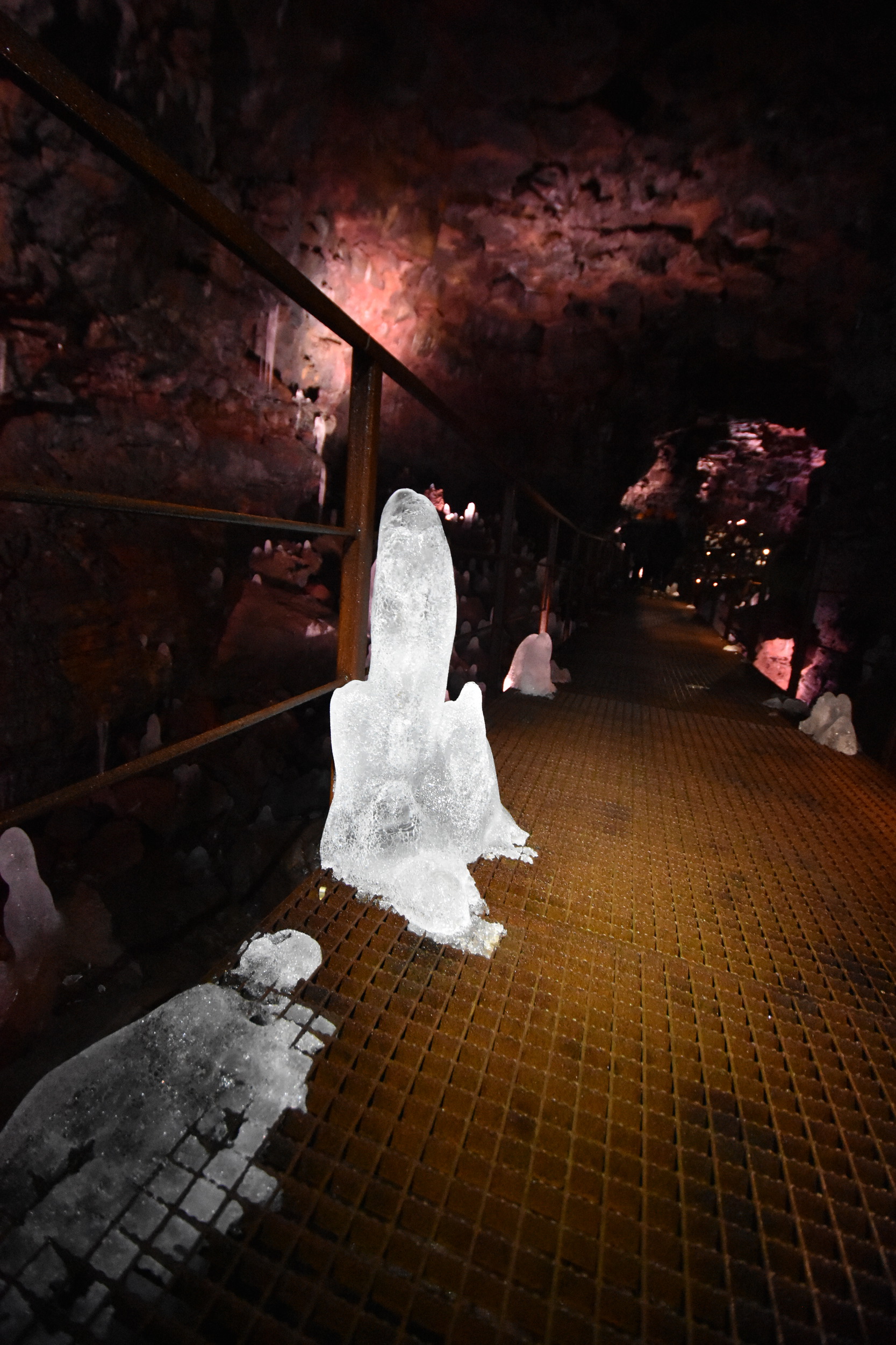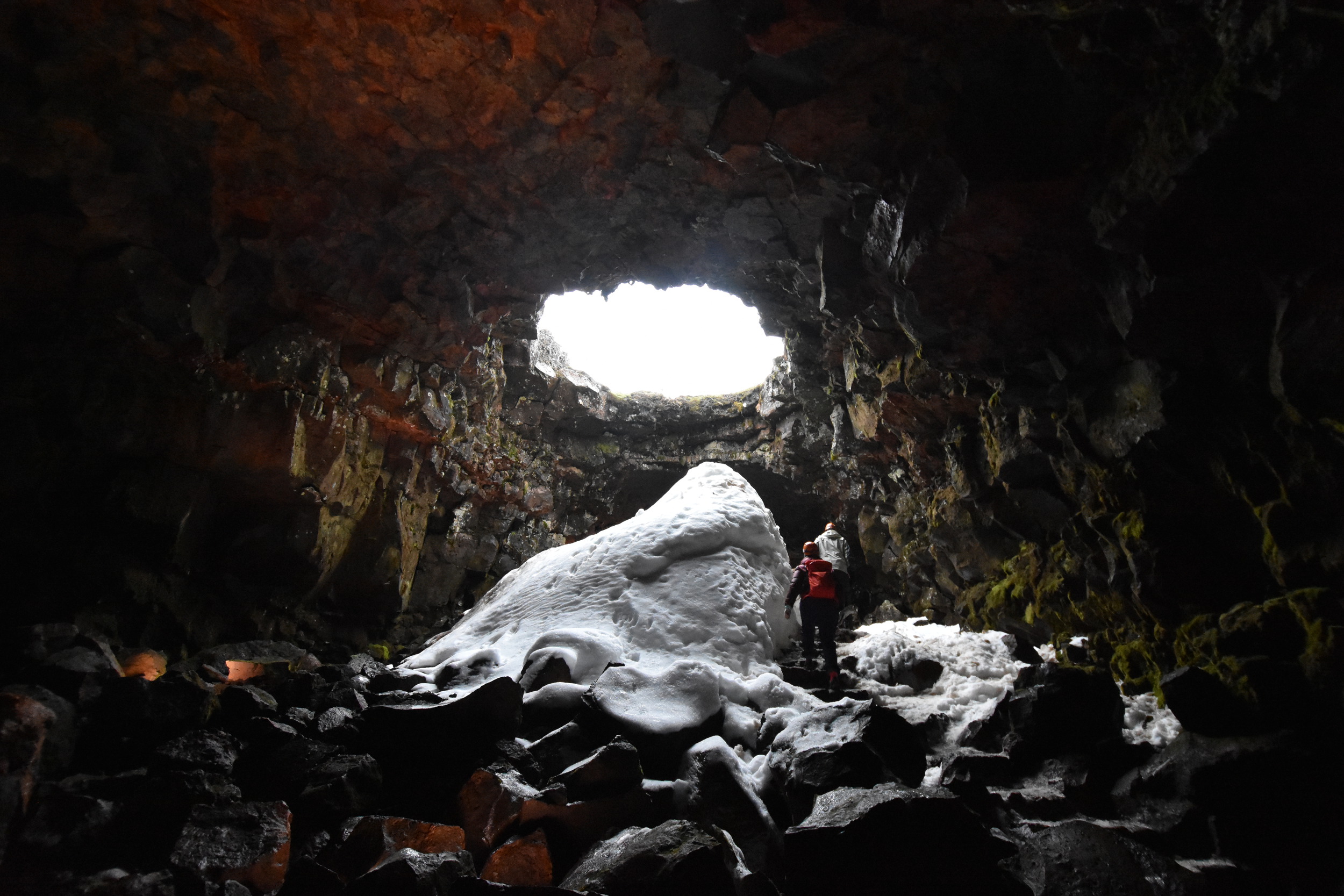 The most interesting part was the sinkholes viewed from underneath, with snow falling down to the cave. And the colors and dripping lava forms. Like this: