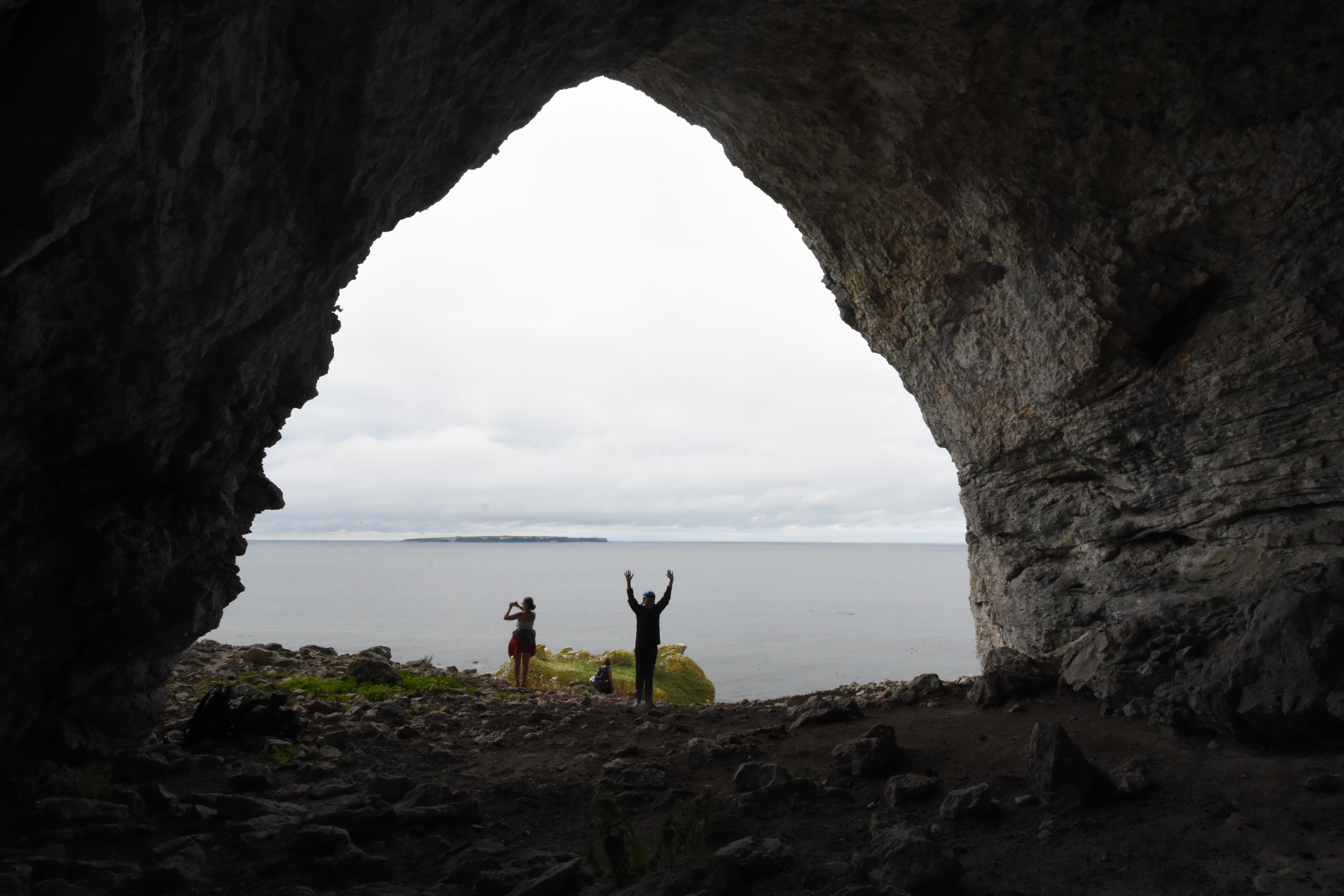 The biggest cave is the Suder Vaghus (south trolley depot), a massive hole in the cliff walls. The cave is not that long, but it is massive! Norra Vagnhus is smaller, but kind of similar. Finally, the third cave we visited, Kuren, was small hole but with character.