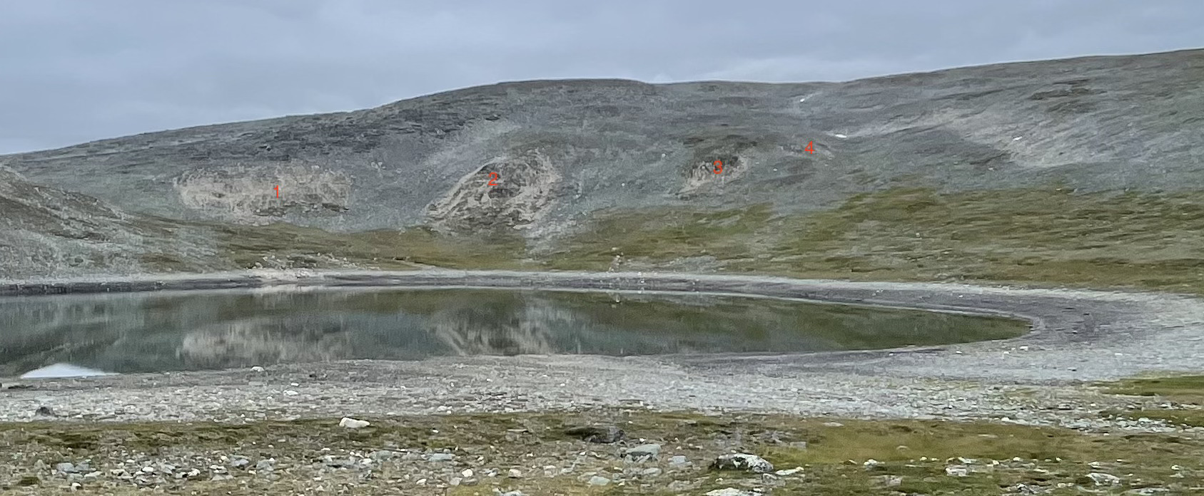 Here you can see the location of outcrop 3 above lake Njiellalanjávri: