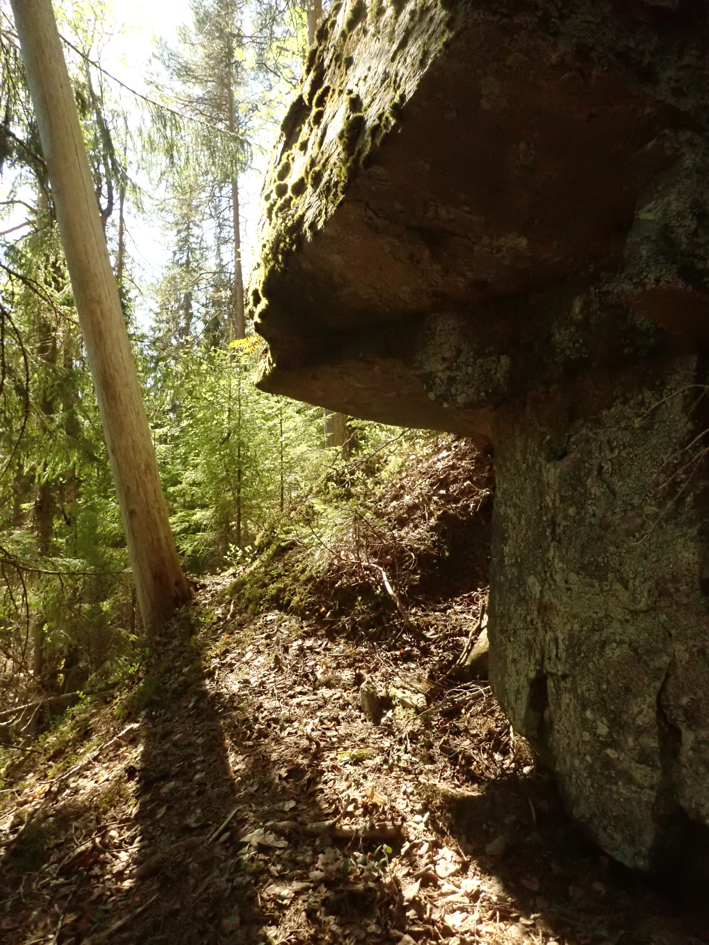 I did not find anything significant, but I did find one medium-sized crawable roof cavelet, one hole where one person can get inside, and one high but quite open roof cavelet. And in addition, there was a couple of other small spaces under cliff lids, i.e., tiny roof cavelets.