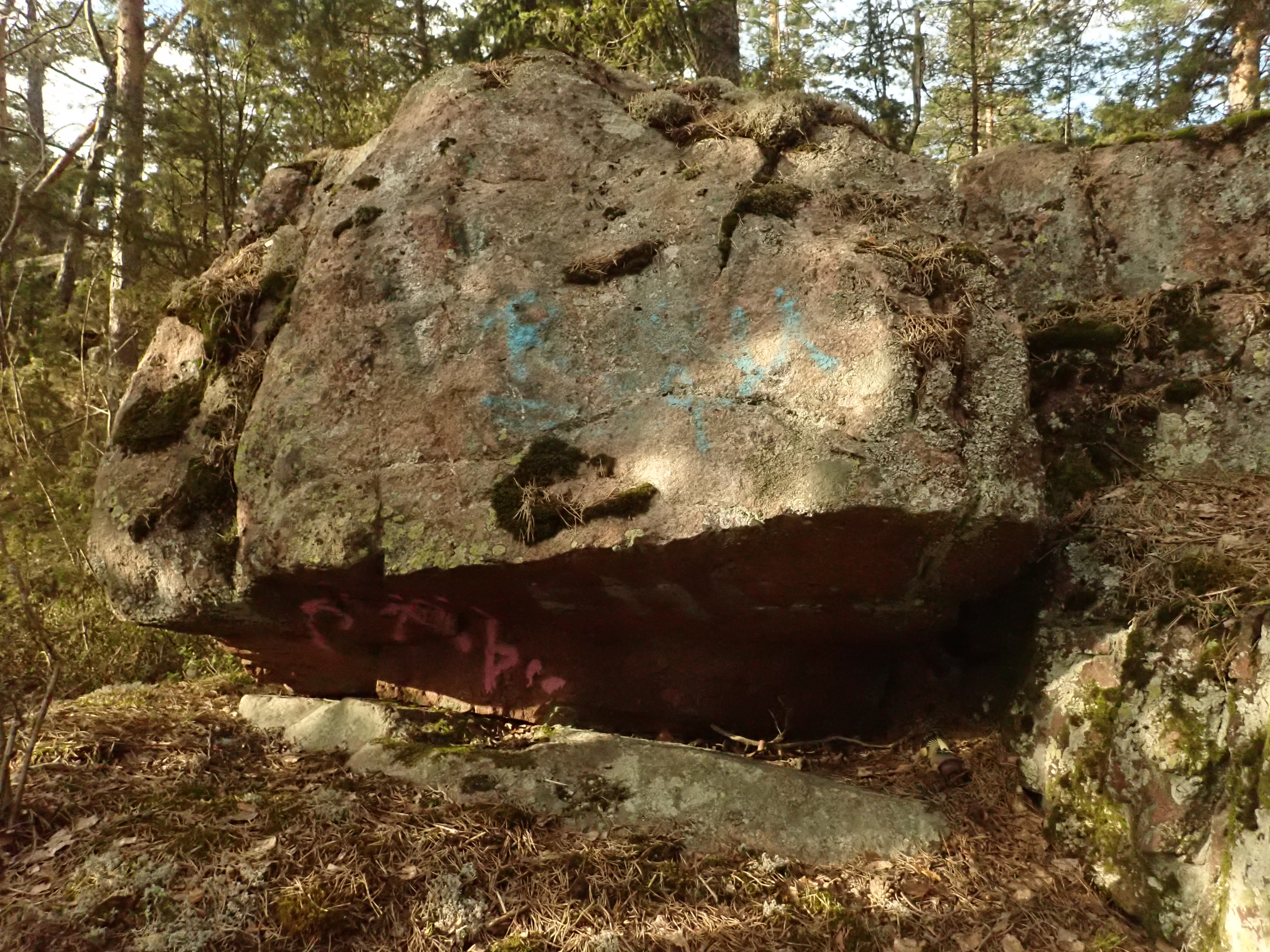What I found was sort of a mini-cave at N 60.18373 E 24.75250, and given the limited caves in Espoo, maybe this is something to be noted at least in some directory.