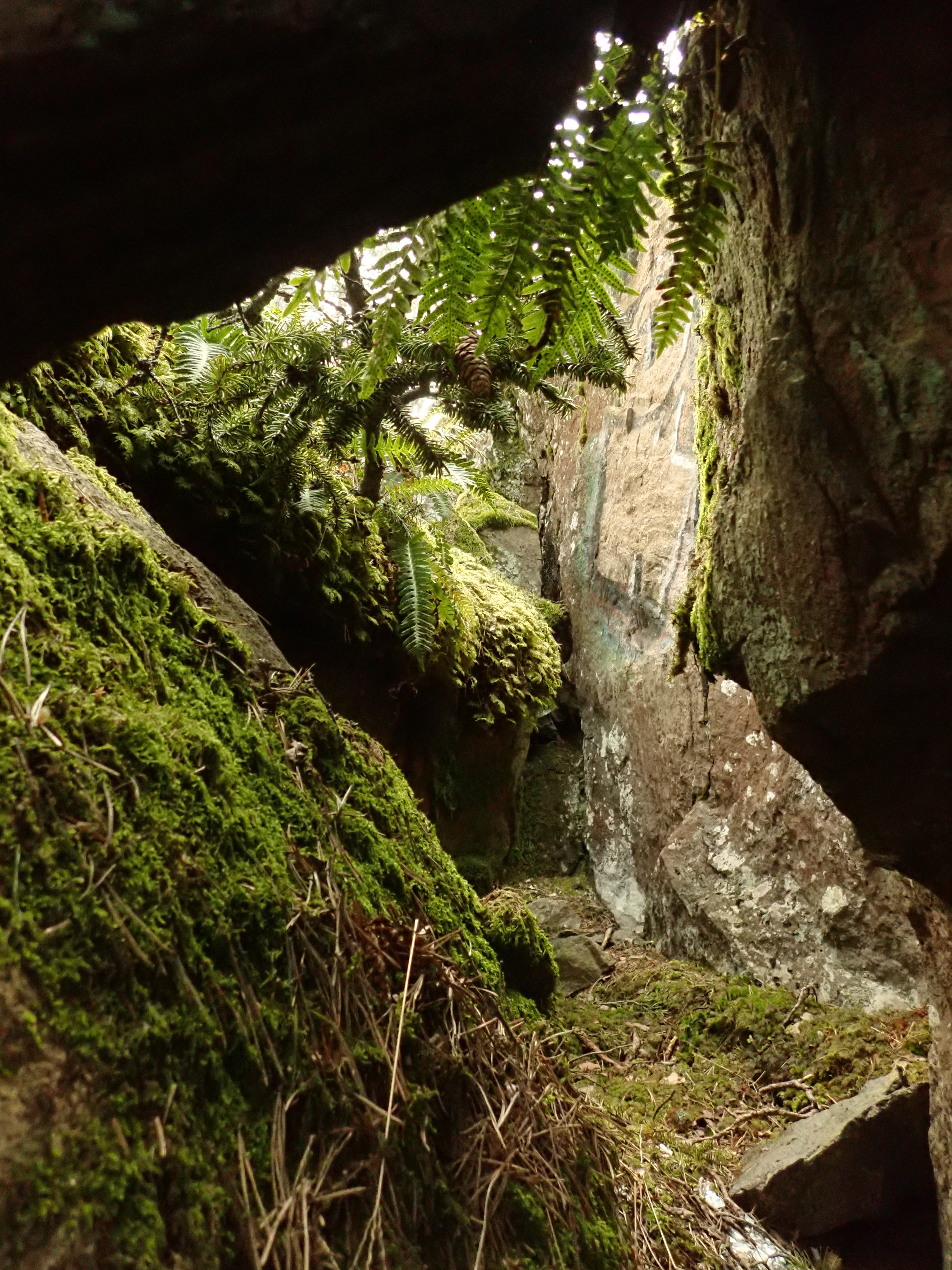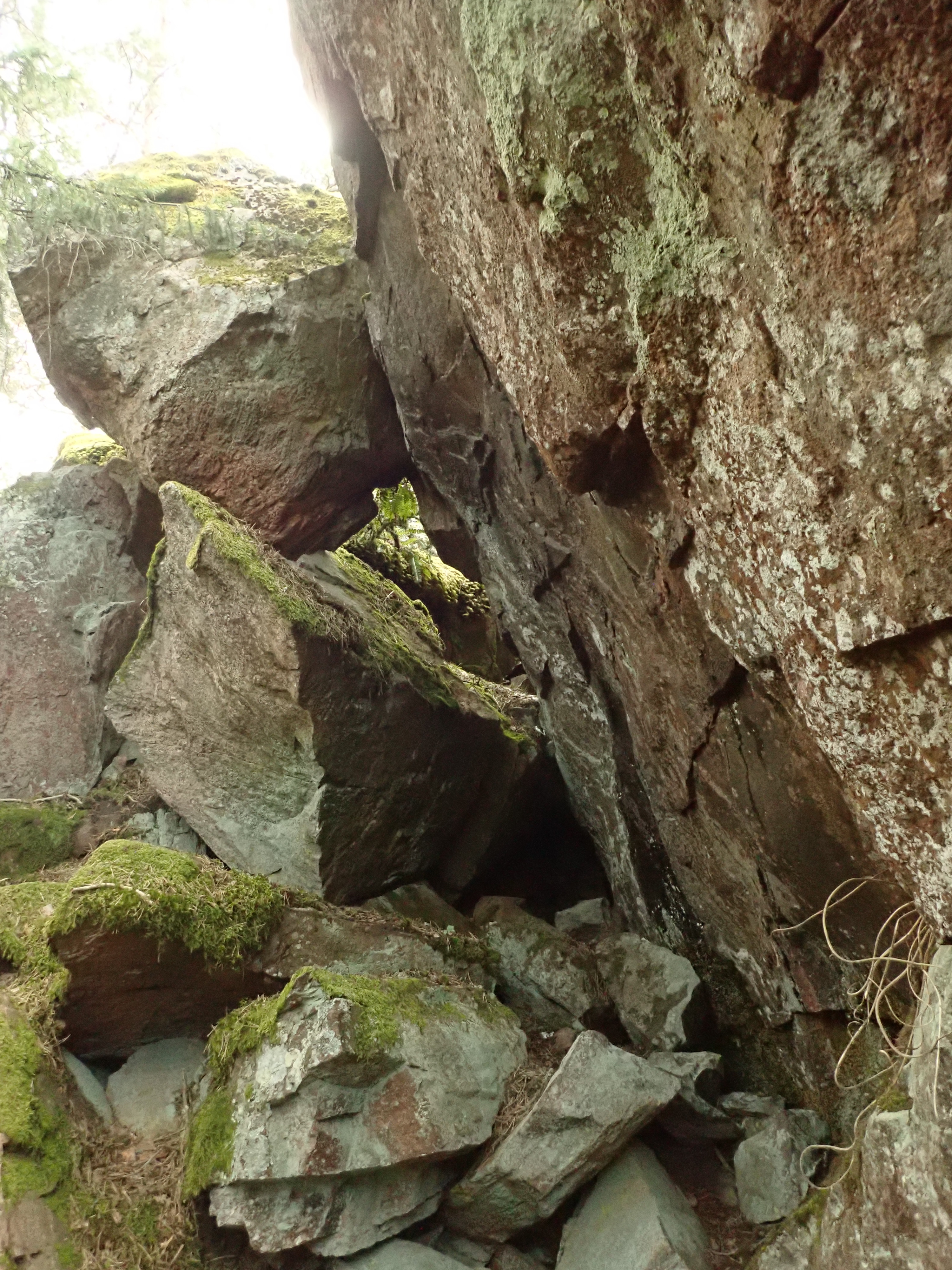 The area of the crack above the main cave, with boulders and holes underneath, but maybe not passable for a human: