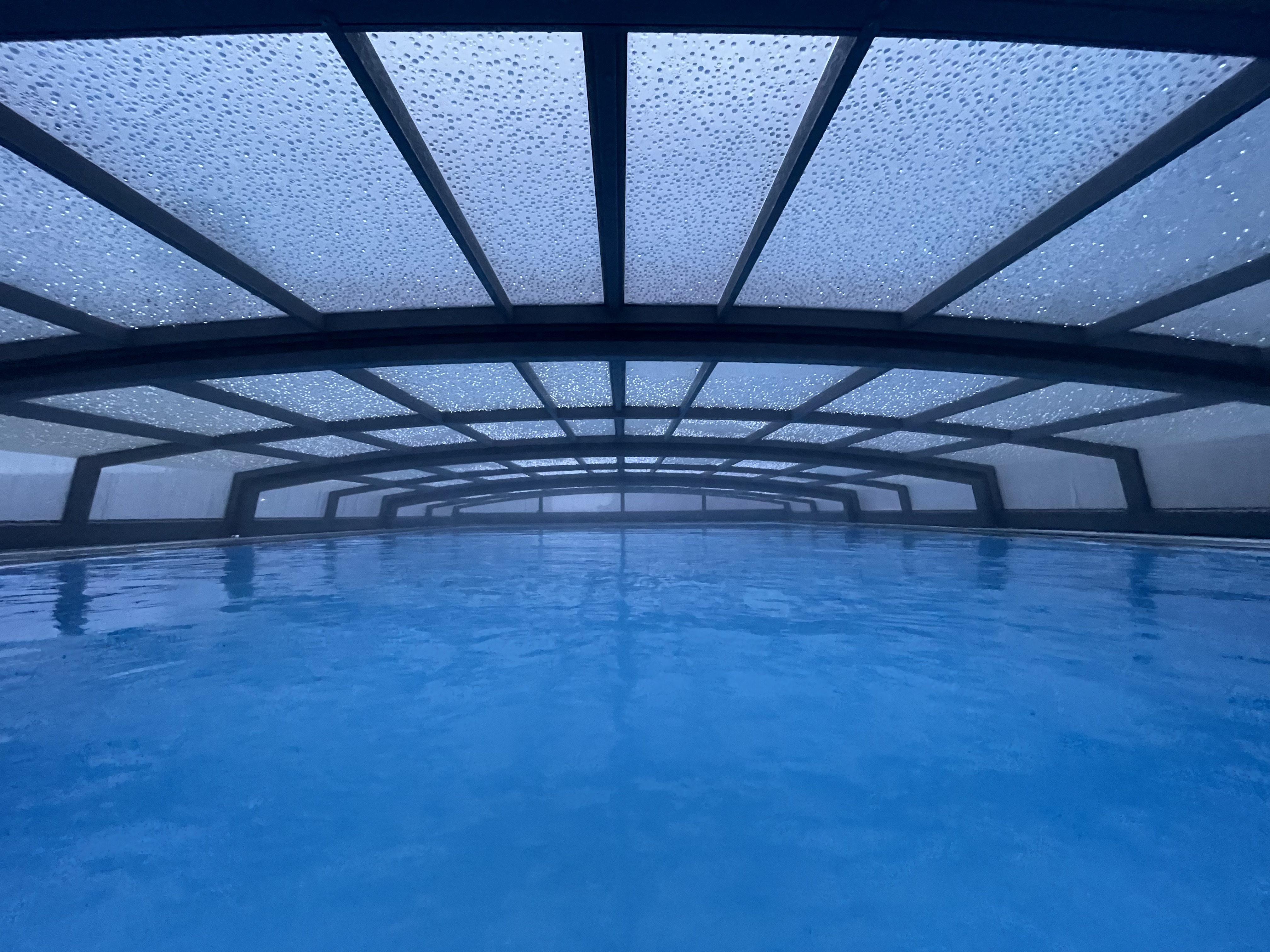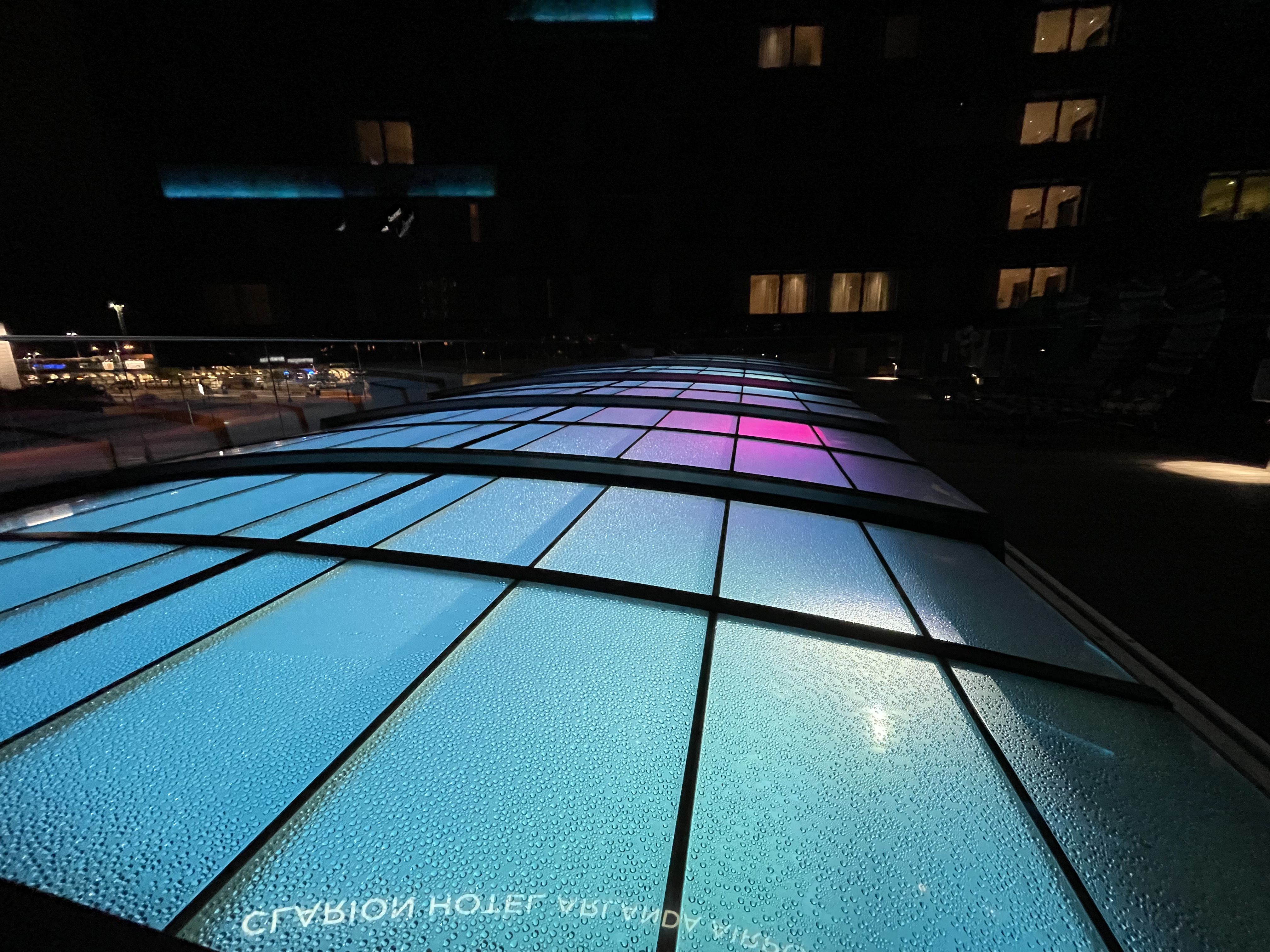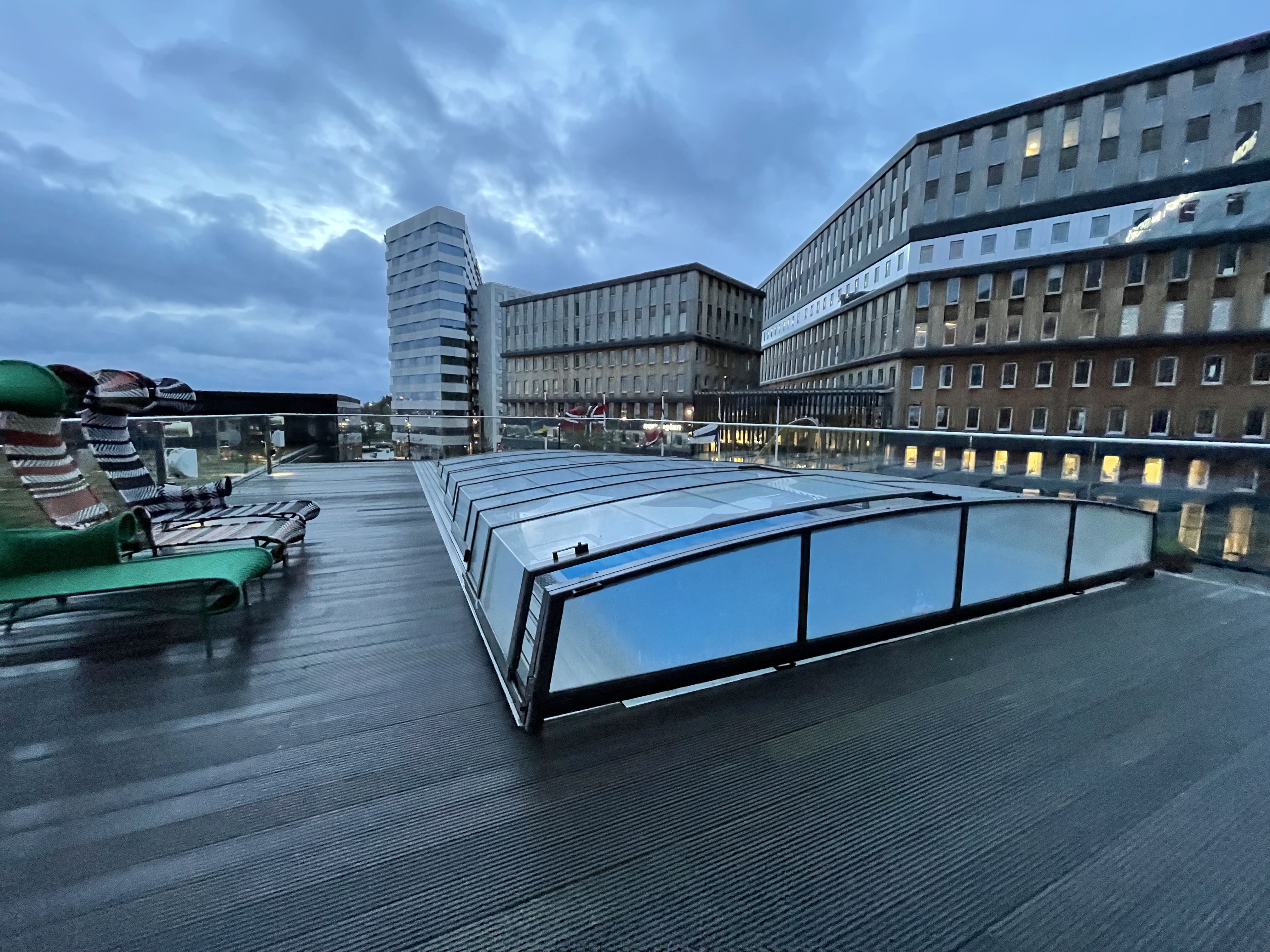 I was in a conference at the Arland airport this week, in the " Clarion Hotel Arlanda Airport Terminal" as they like to call it :-) It is directly connected to the shopping and restaurant space of the airport, one does not have to walk outside to get here. But the really cool thing is their rooftop pool. One can enjoy a warm outdoor pool while breathing fresh air mixed with some kerosine smell. Love it! Particularly in the mornings!