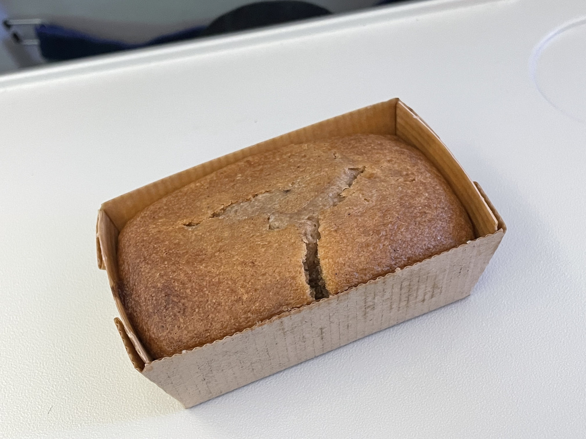 Had the Lufthansa 3.90€ banana bread today. It was ok, but really no comparison to Finnair's massive - and heated - cinnamon rolls that they nowadays serve in business class instead of champagne.