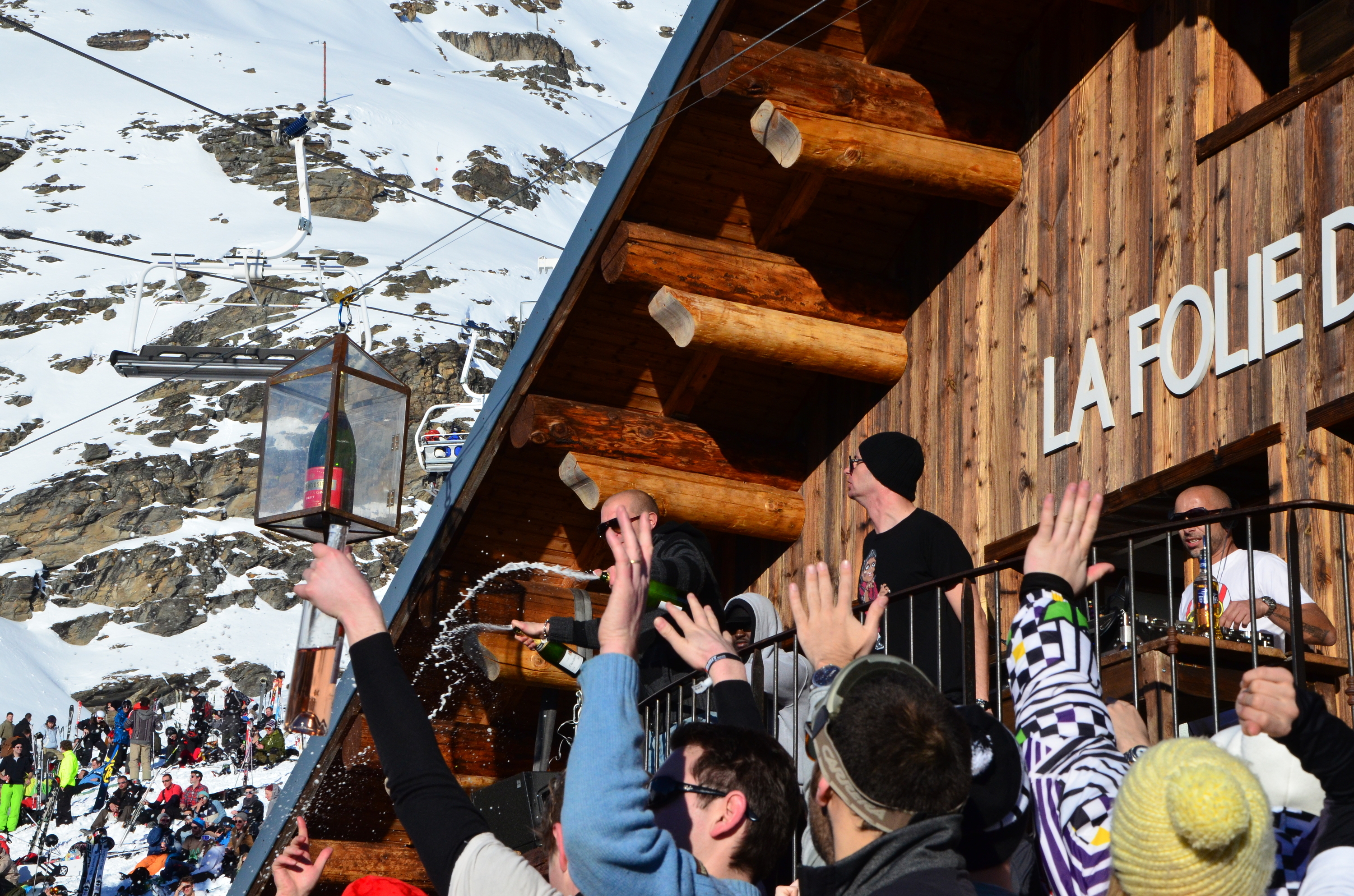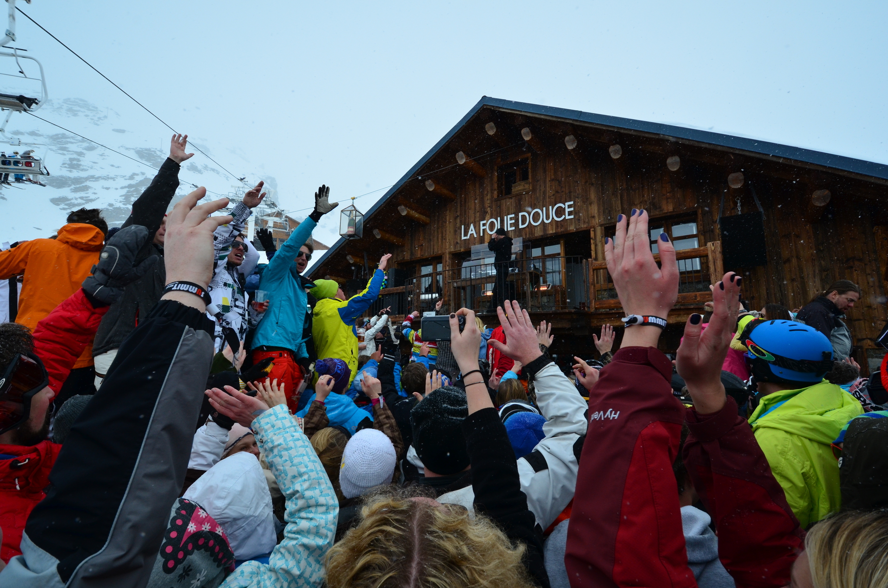 Except in La Folie Douce, situated a lift ride above Val Thorens at 2600 meters. This bar boasts to have the dance floor on top of the world. There are higher dance floors elsewhere, but not with this kind of action and intensity, or with the crowds. Even on a mid week bad weather day in off-season, their large terrace is packed. On a better day even the nearby hills fill up with people who want to join the party and listen to the music show.